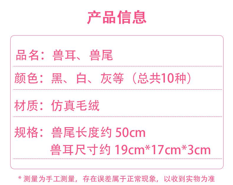 Procesando disfraz de cola de bestia de orejas de bestia de simulación personalizada, cola de zorro de peluche de simulación, Halloween cos diadema de orejas de gato para el cabello