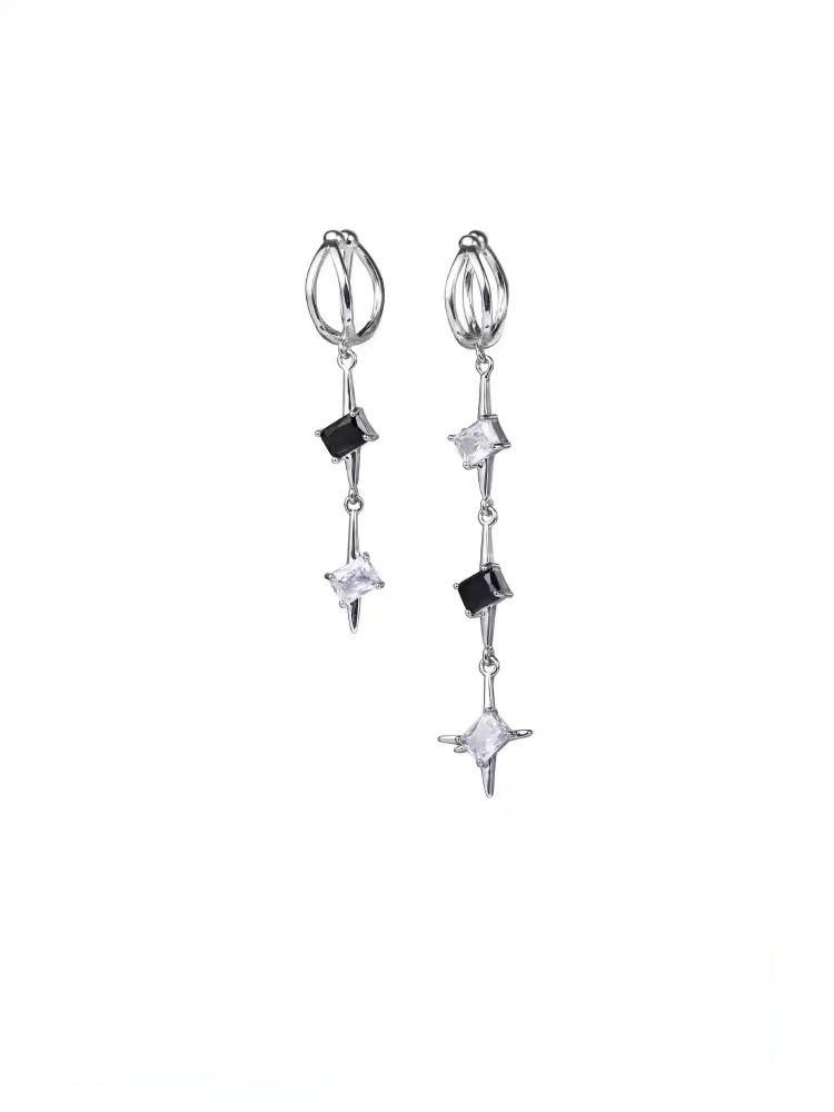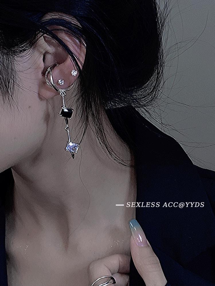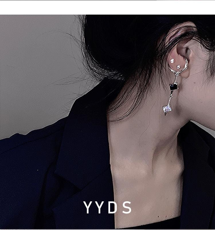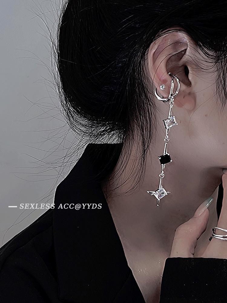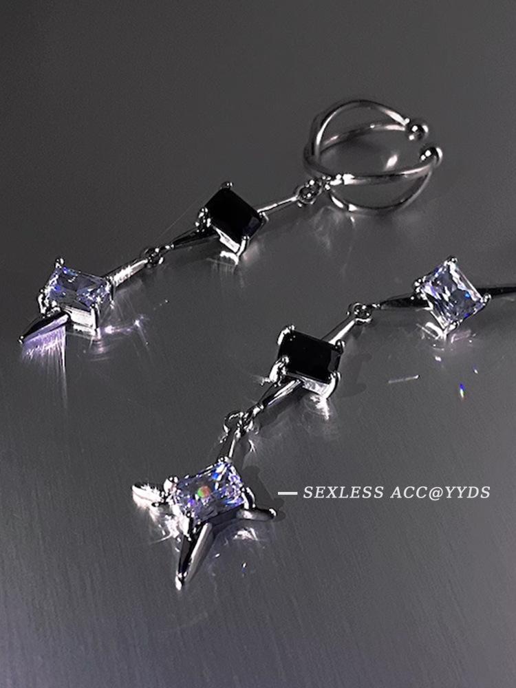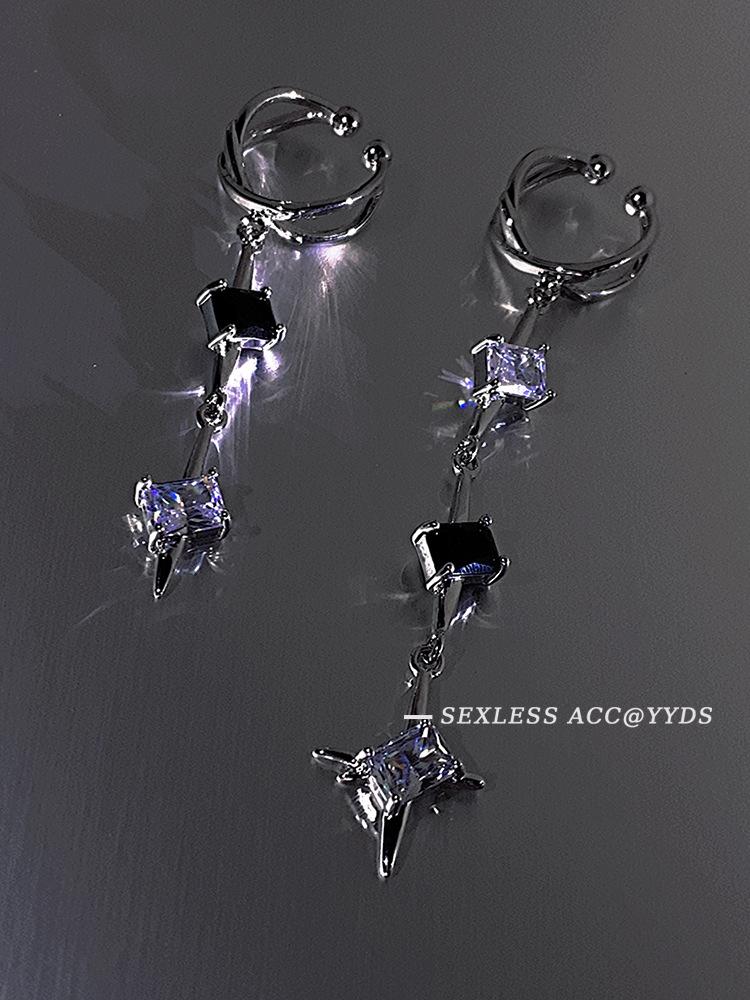 Estilo Dulce y Cool Cadena de Diamantes Brillantes Clip para Hueso de la Oreja Clip para la Oreja para Mujeres Sin Perforaciones Aretes Asimétricos de Estrella Aretes de Lujo Accesible de Alta Gama