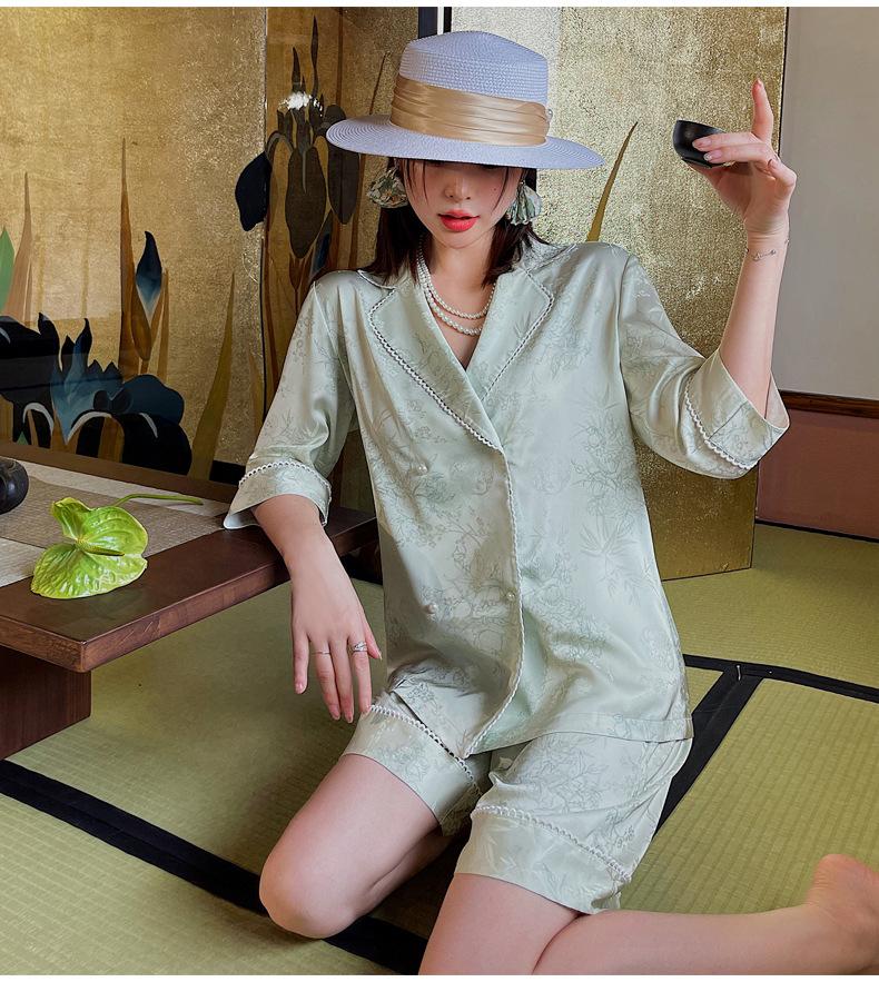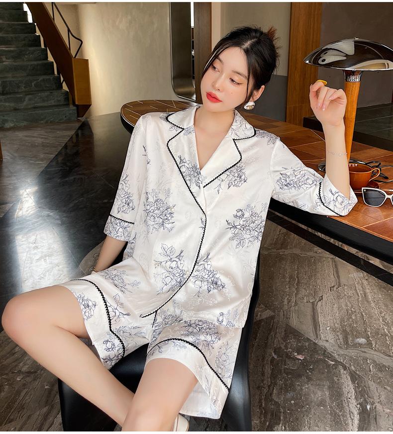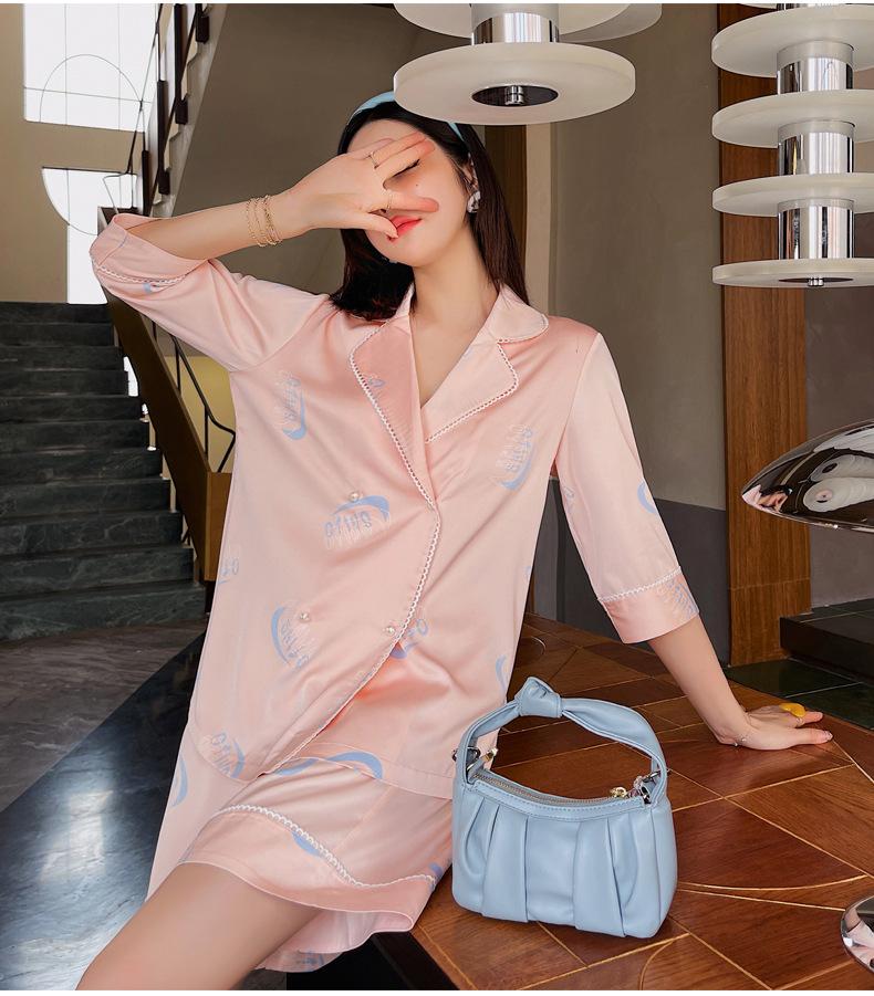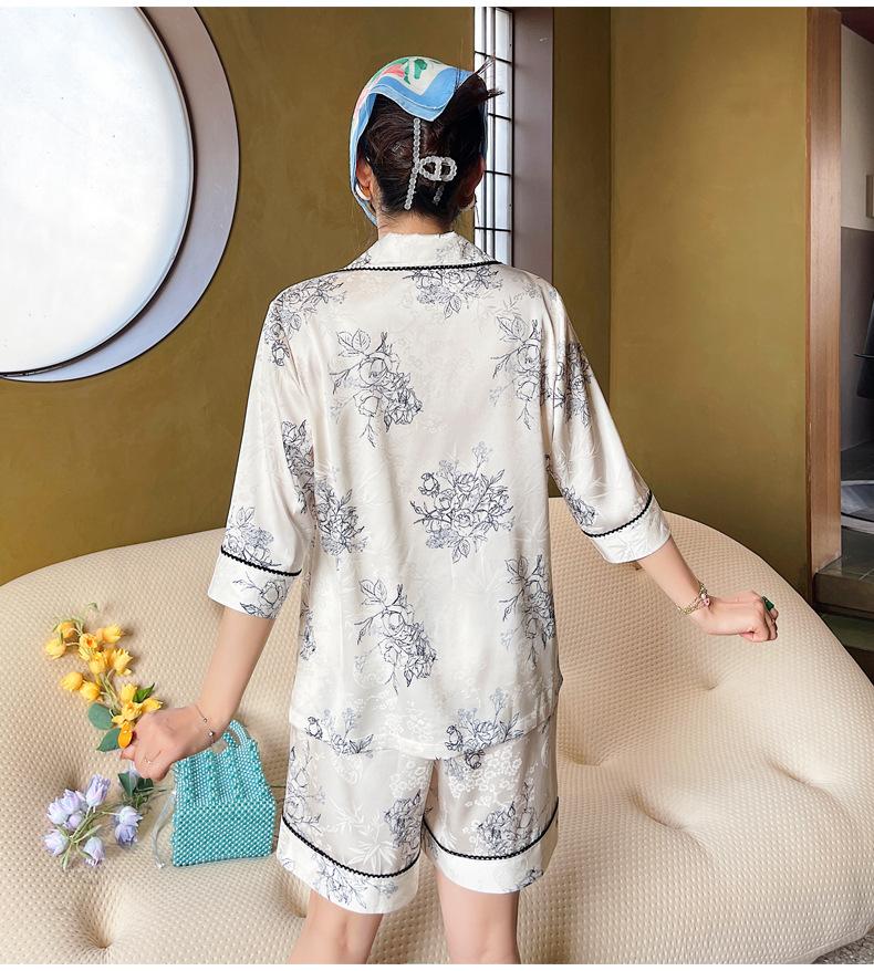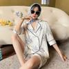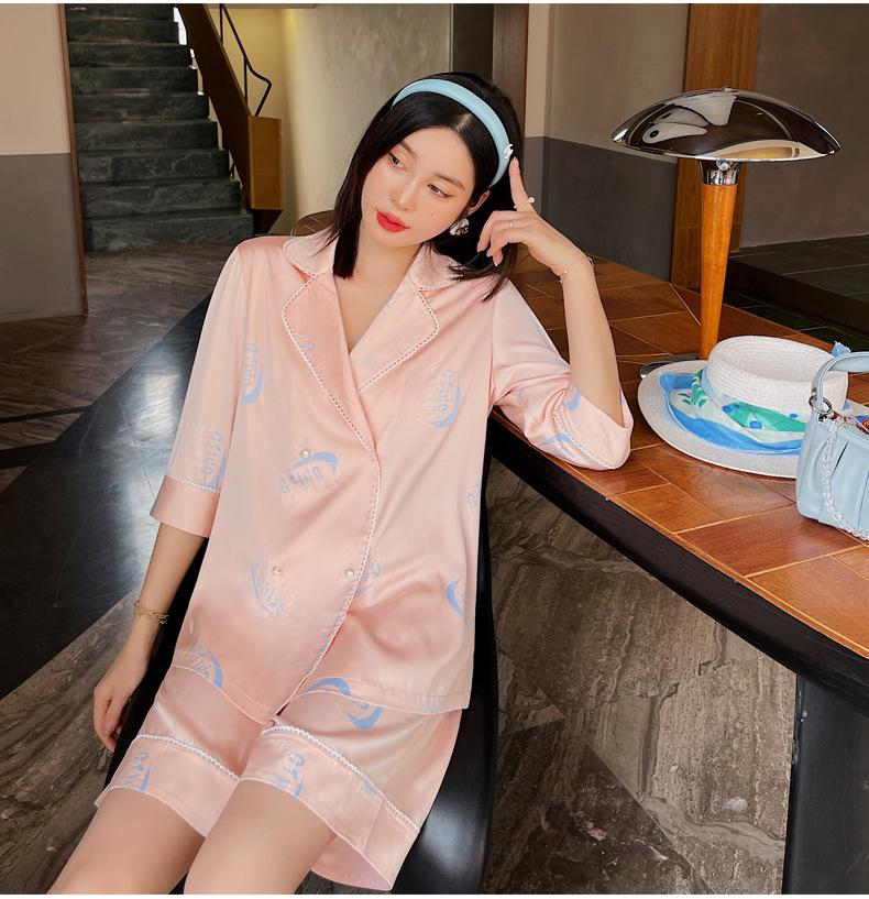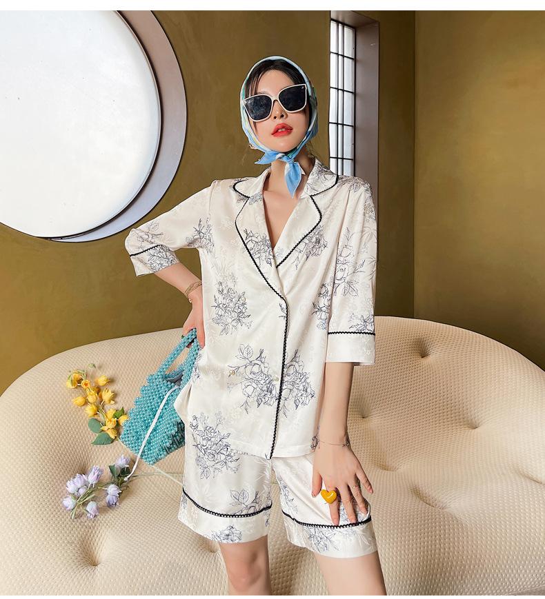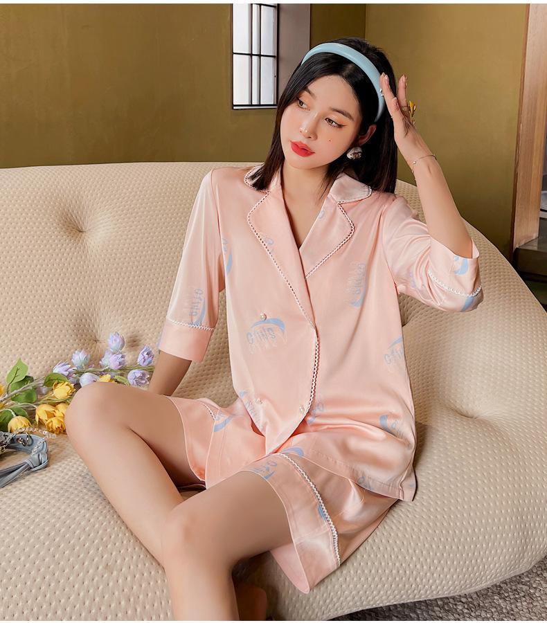 2022 nuevos pijamas de verano para mujer, conjunto de pantalones cortos de manga corta, pijamas de encaje de seda de hielo, ropa para el hogar para mujer, venta al por mayor en vivo