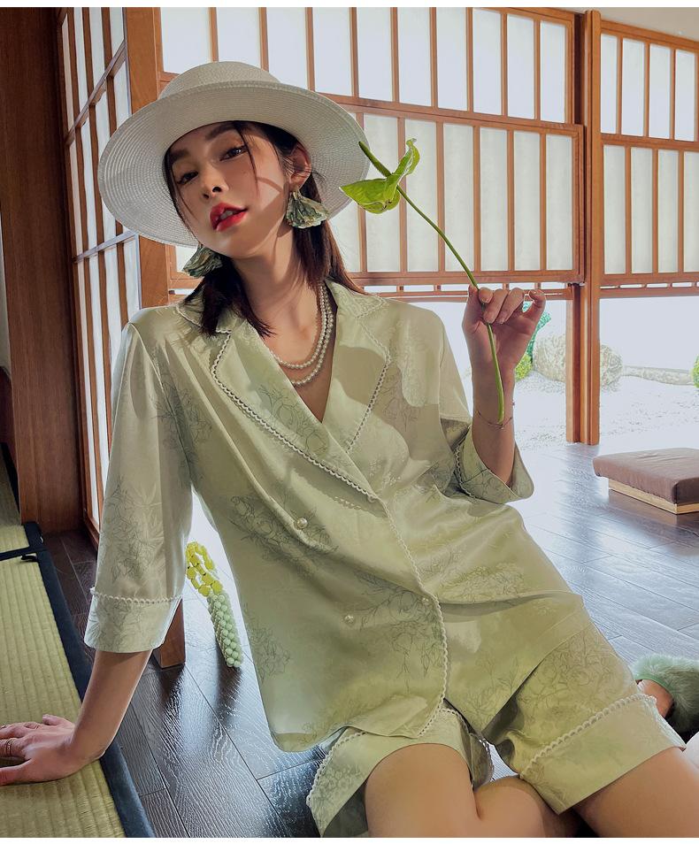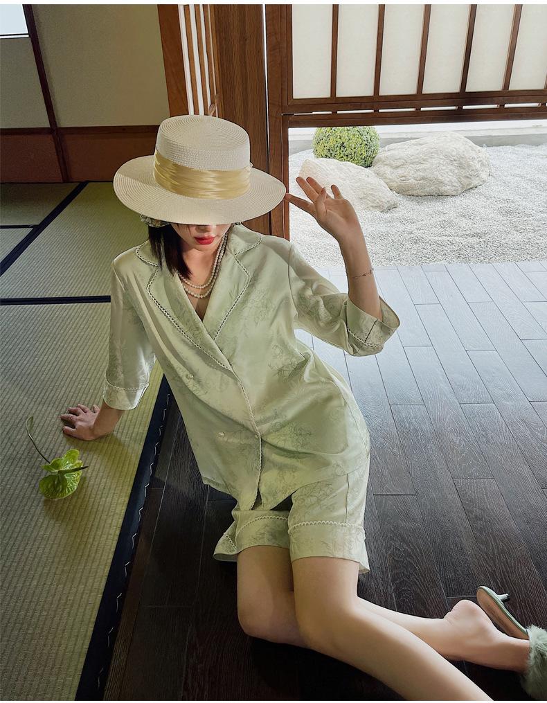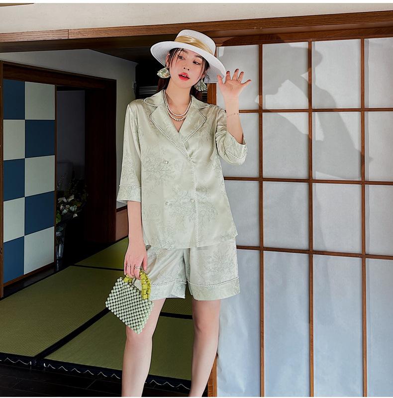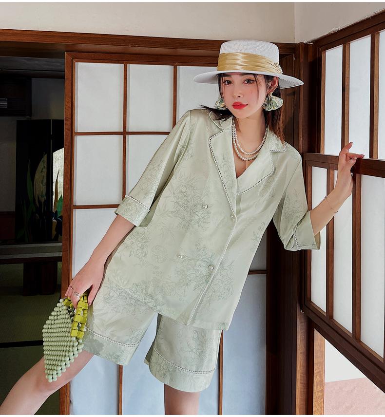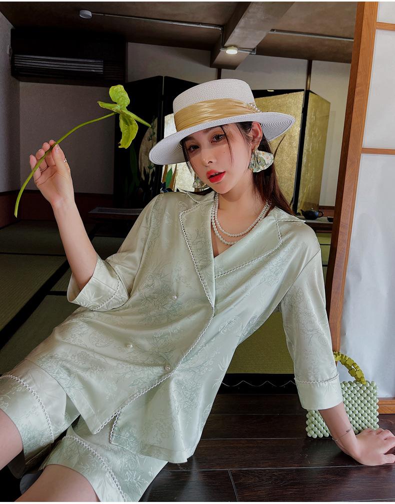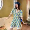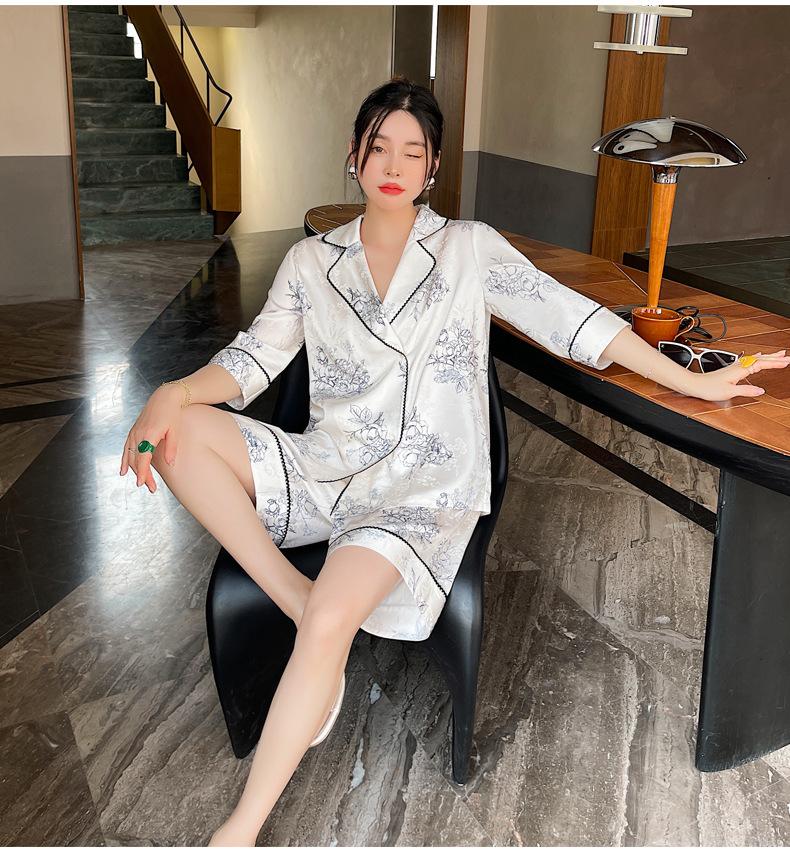 2022 nuevos pijamas de verano para mujer, conjunto de pantalones cortos de manga corta, pijamas de encaje de seda de hielo, ropa para el hogar para mujer, venta al por mayor en vivo