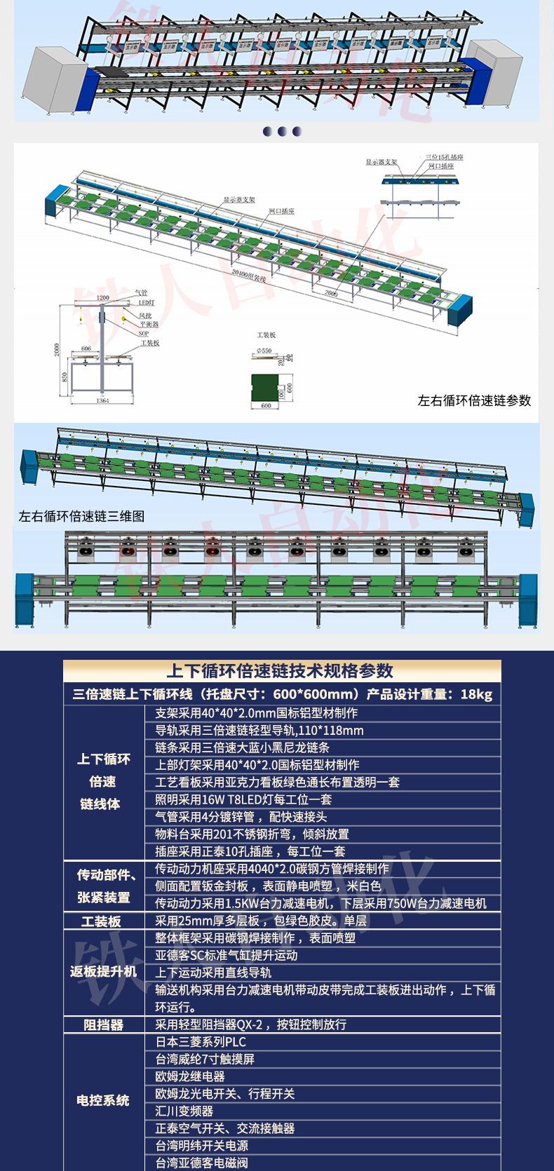 Línea de montaje de cadena de doble velocidad Línea de producción de pilotes eléctricos con pistola de carga Línea de montaje de UAV Línea de montaje de cadena de doble velocidad