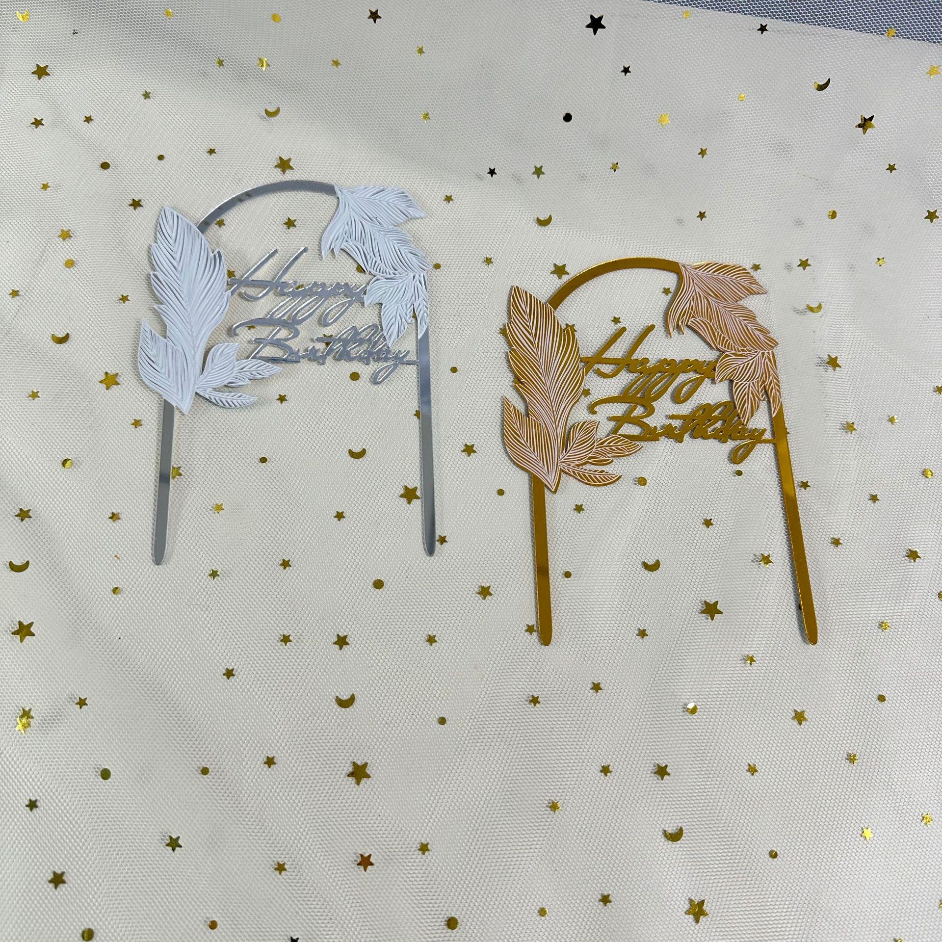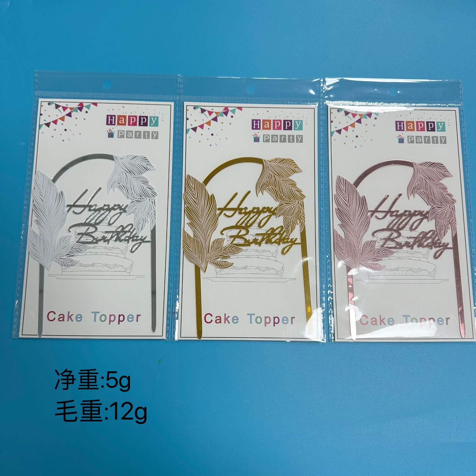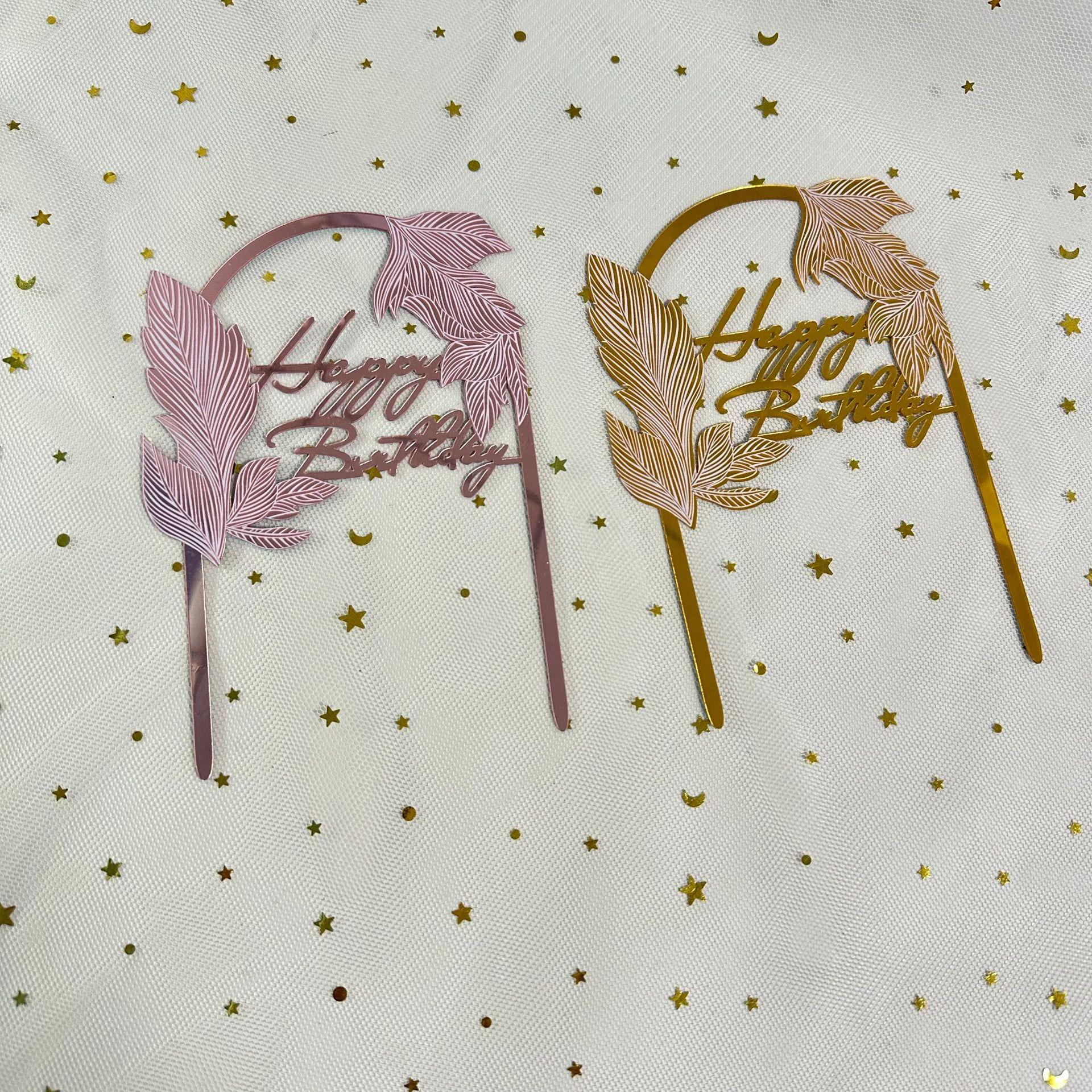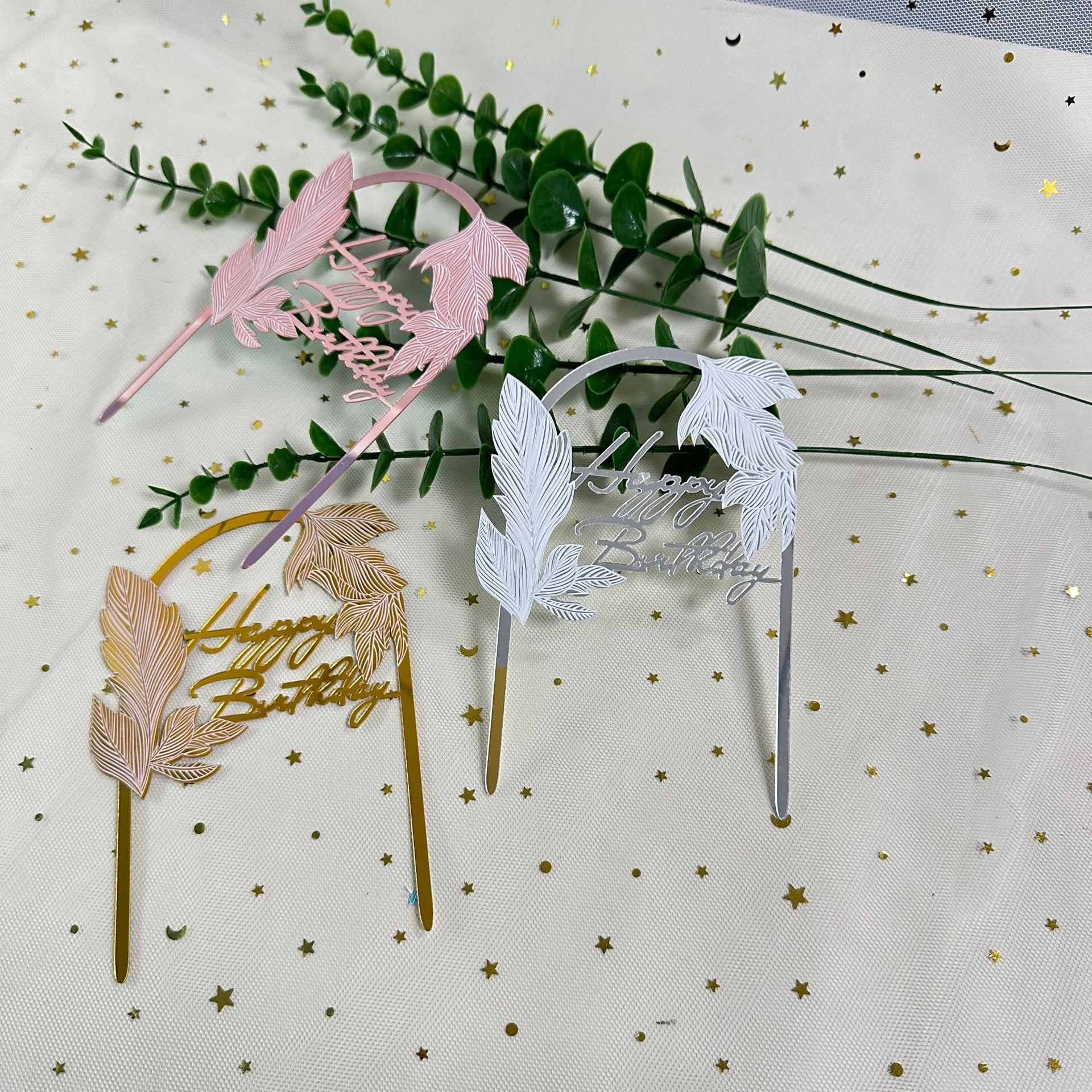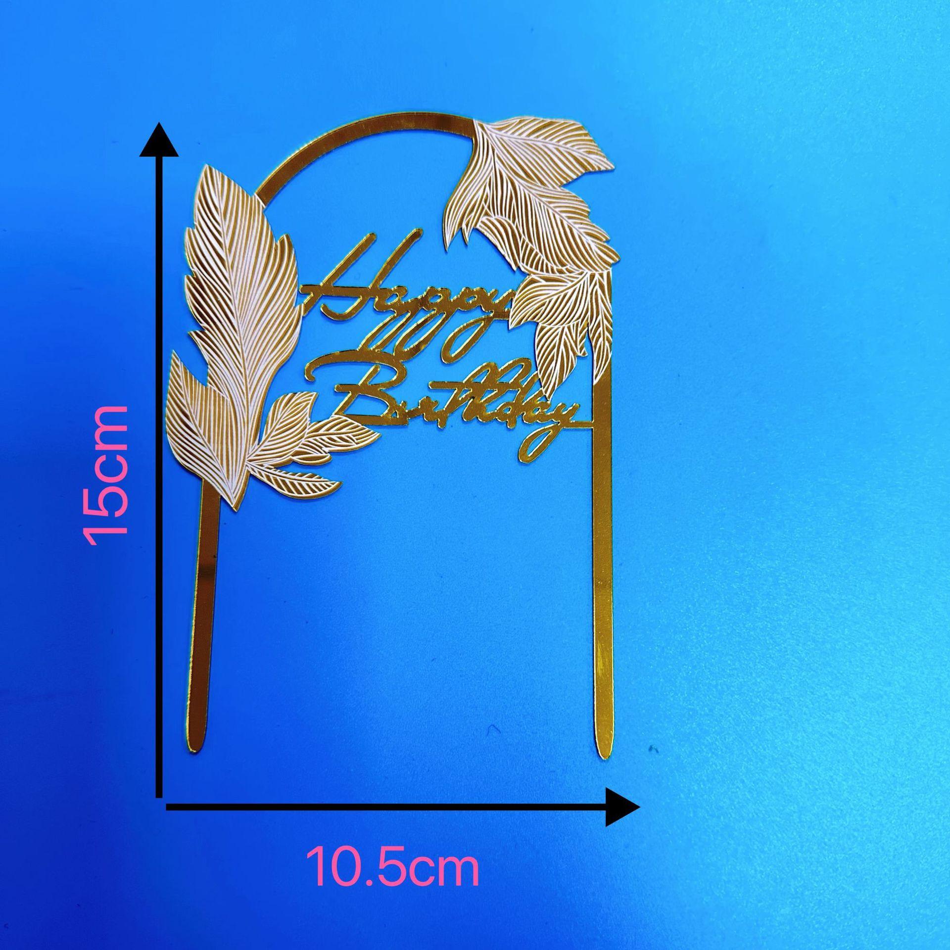 Decoración de pasteles de cumpleaños con marcado láser acrílico transfronterizo, estilo arco de hojas, tarjeta de fábrica