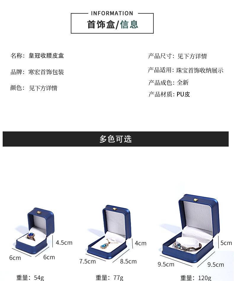 Caja de Joyería de Cuero PU Corona Caja para Colgante Pulsera Anillo Caja de Embalaje para Joyería de Cintura Caja para Collar de Joyería al Mayoreo
