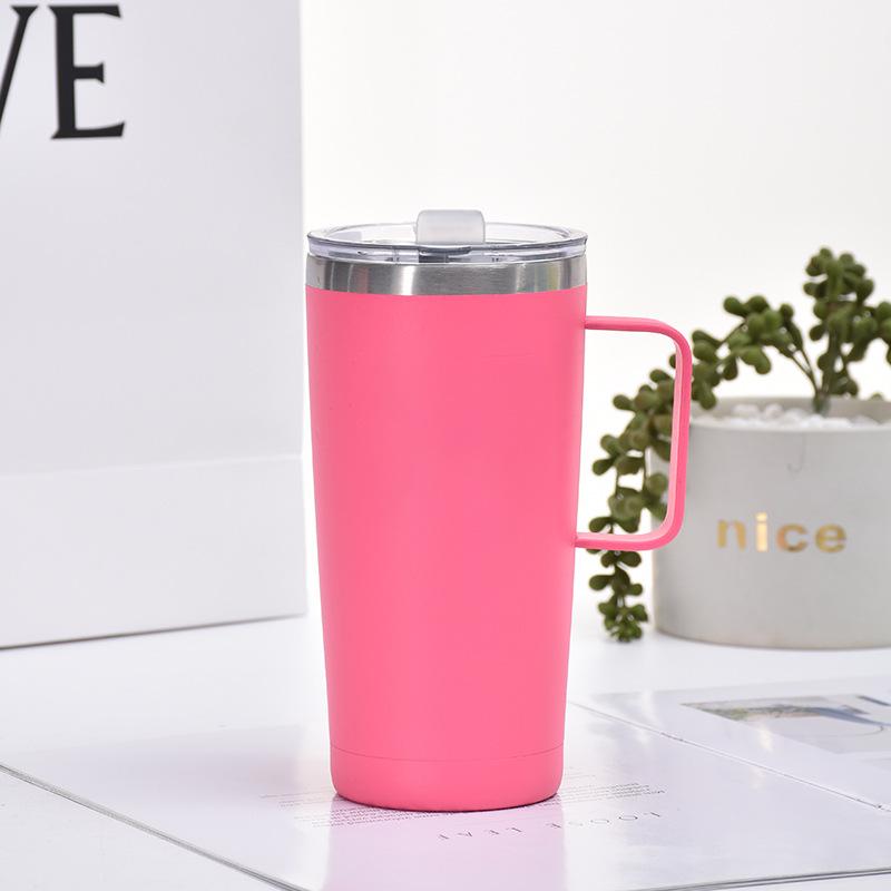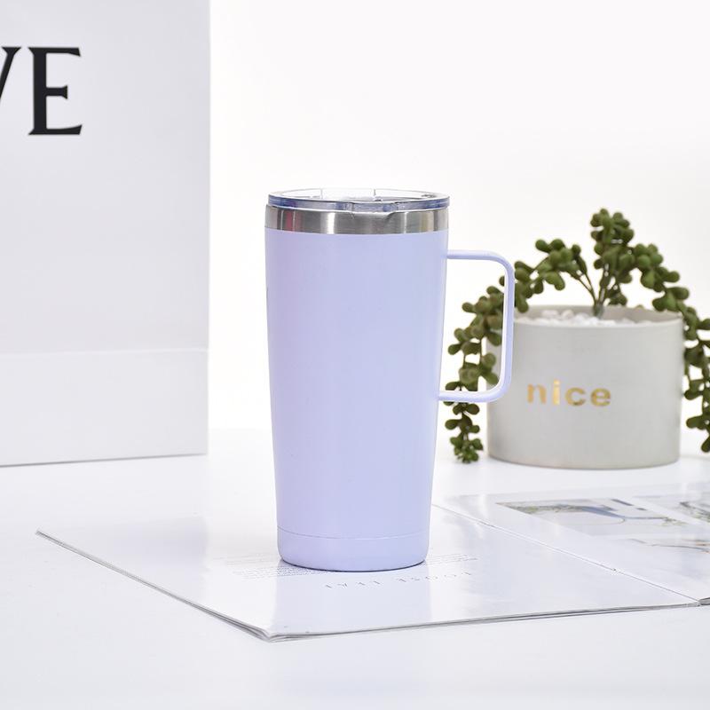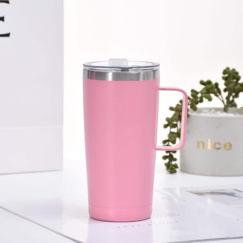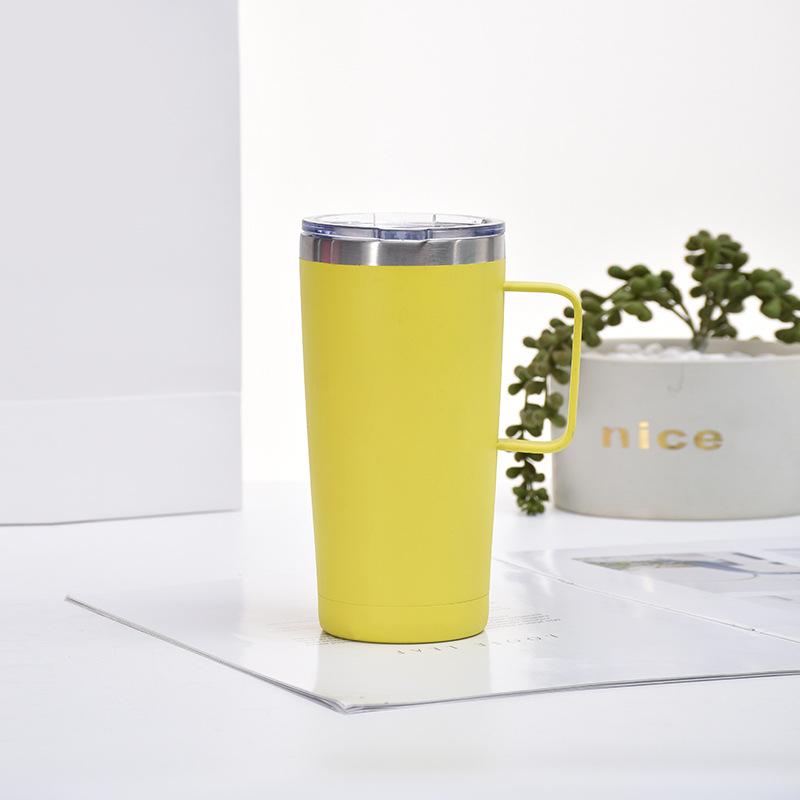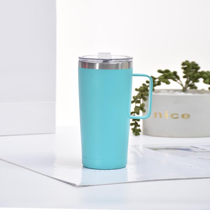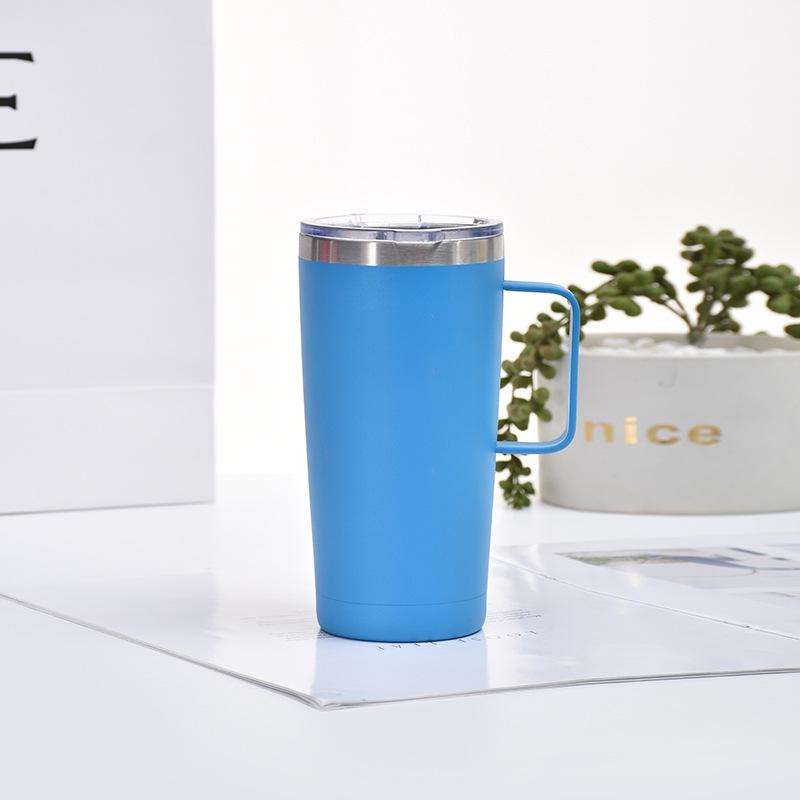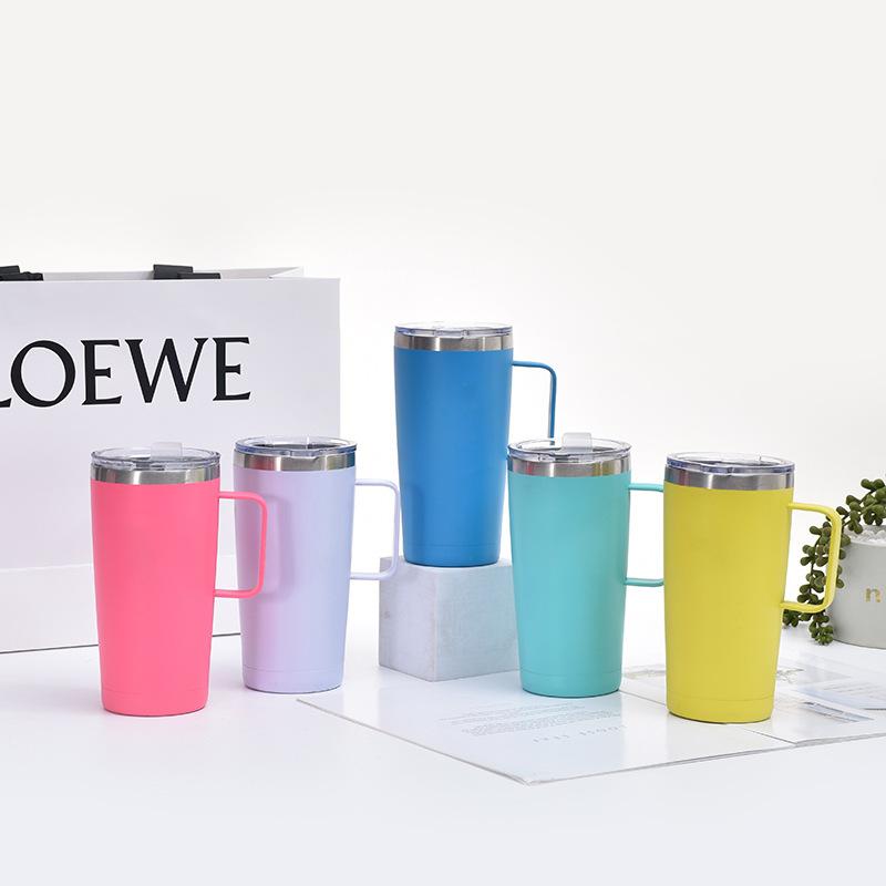 Taza de acero inoxidable de doble capa al vacío personalizada de 20 oz con asa, termo portátil, taza de café de oficina con aislamiento frío