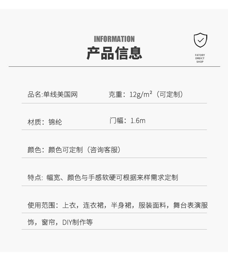 Tela de malla americana de una sola línea ropa infantil tutú malla suave pantalones de playa forro de tela malla forro de ropa tela de vestido de falda