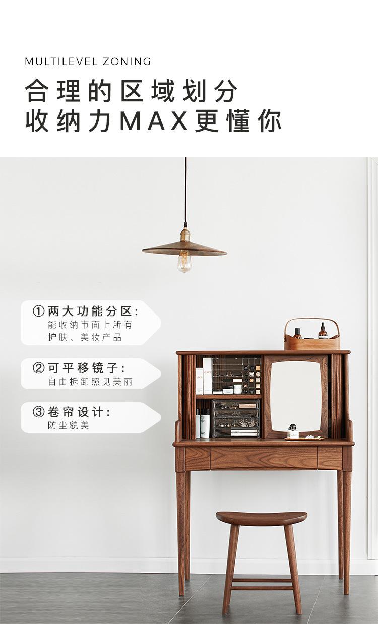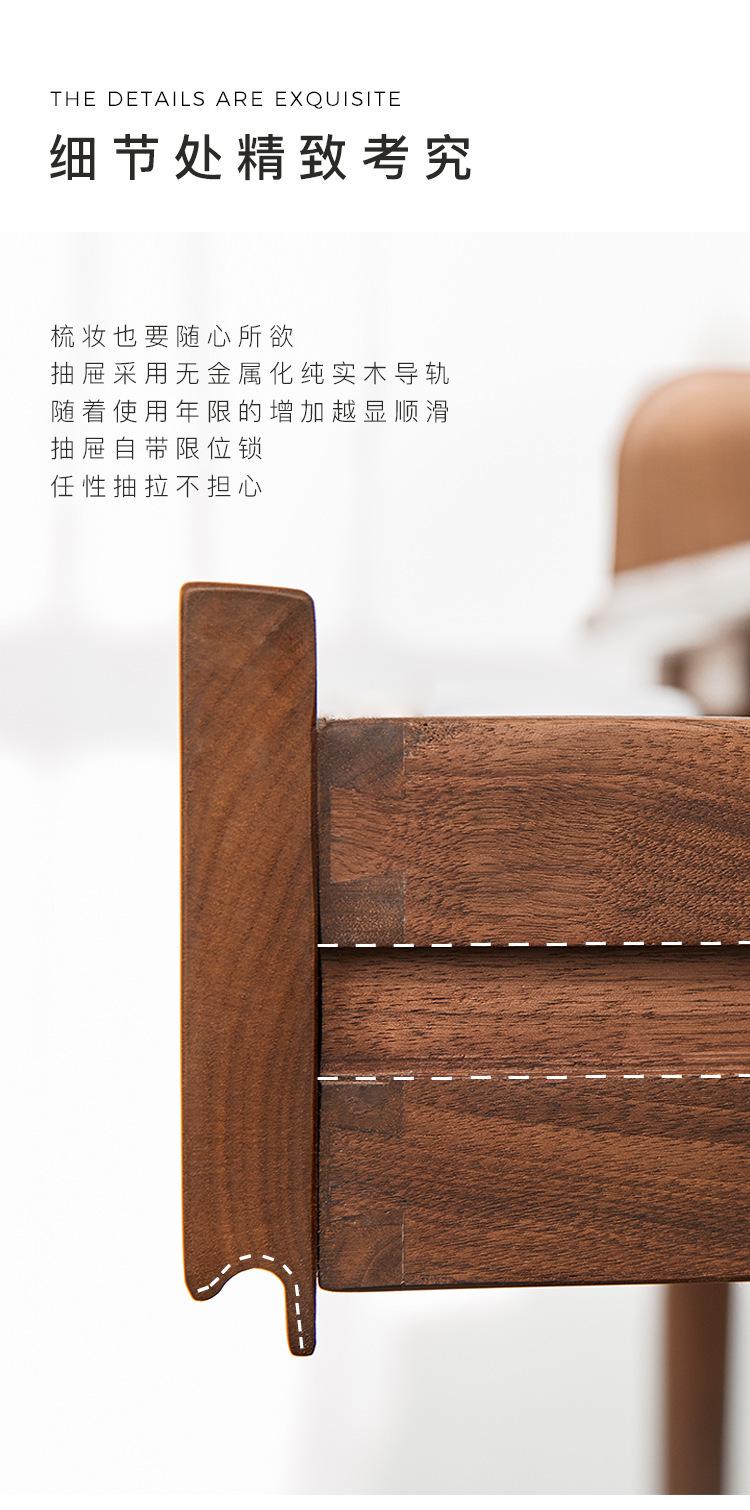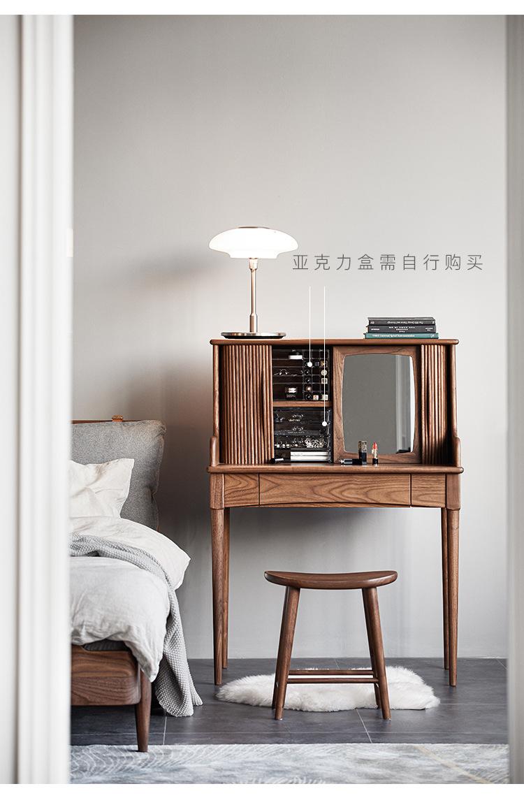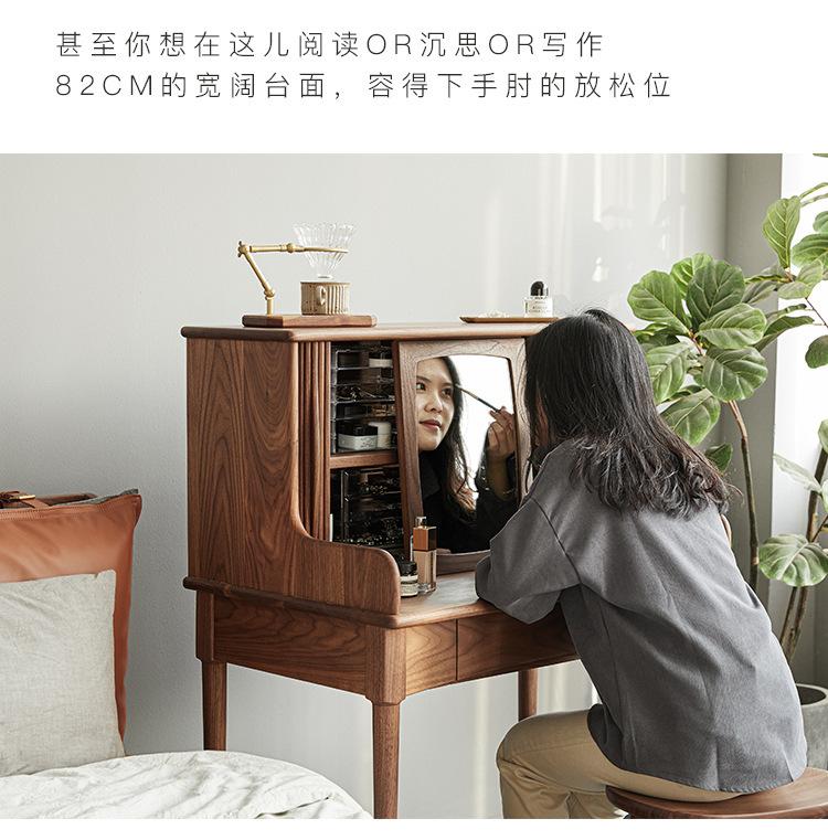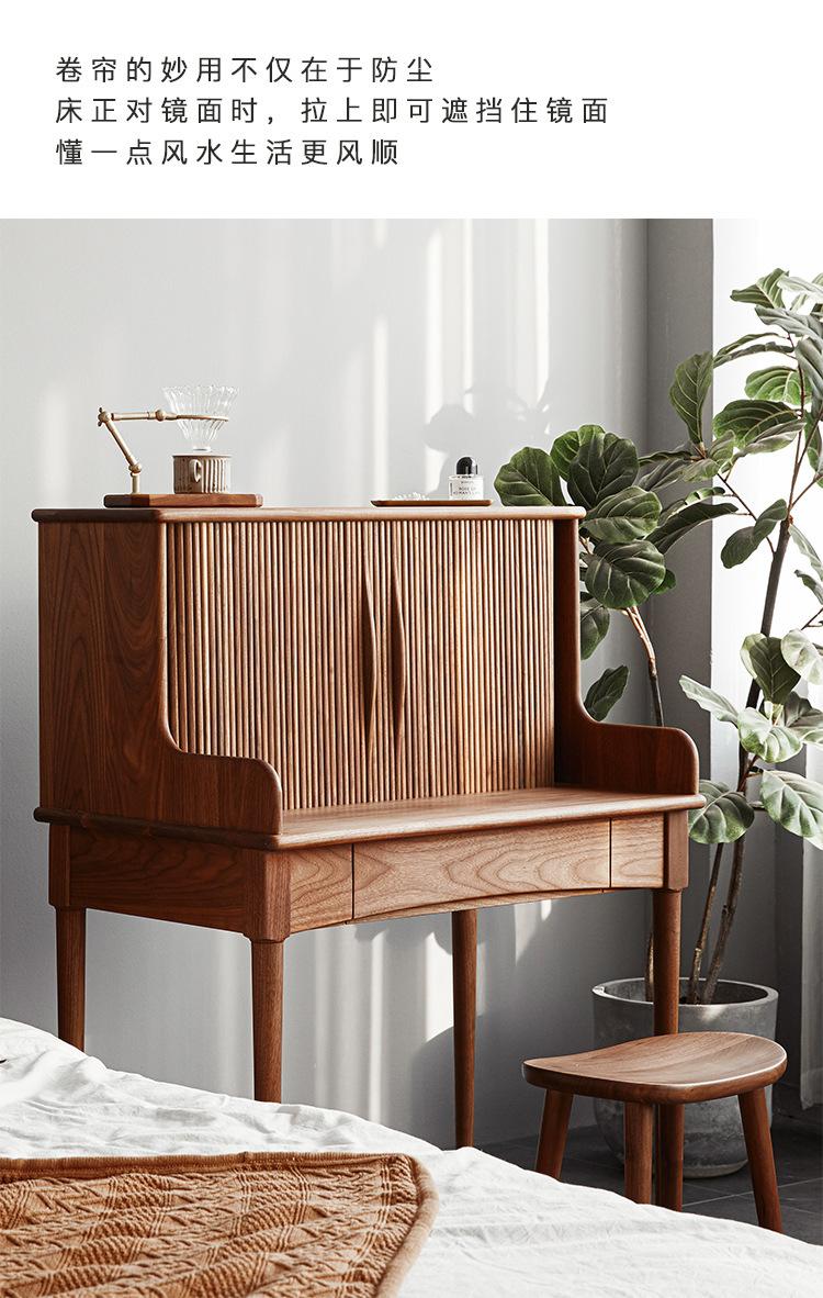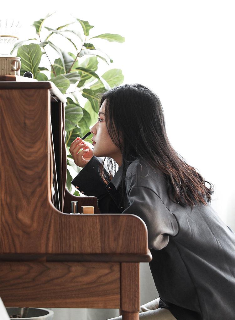 Tocador de madera maciza de nogal negro nórdico para el hogar, apartamento pequeño, dormitorio moderno minimalista, mesa de maquillaje retro de roble blanco