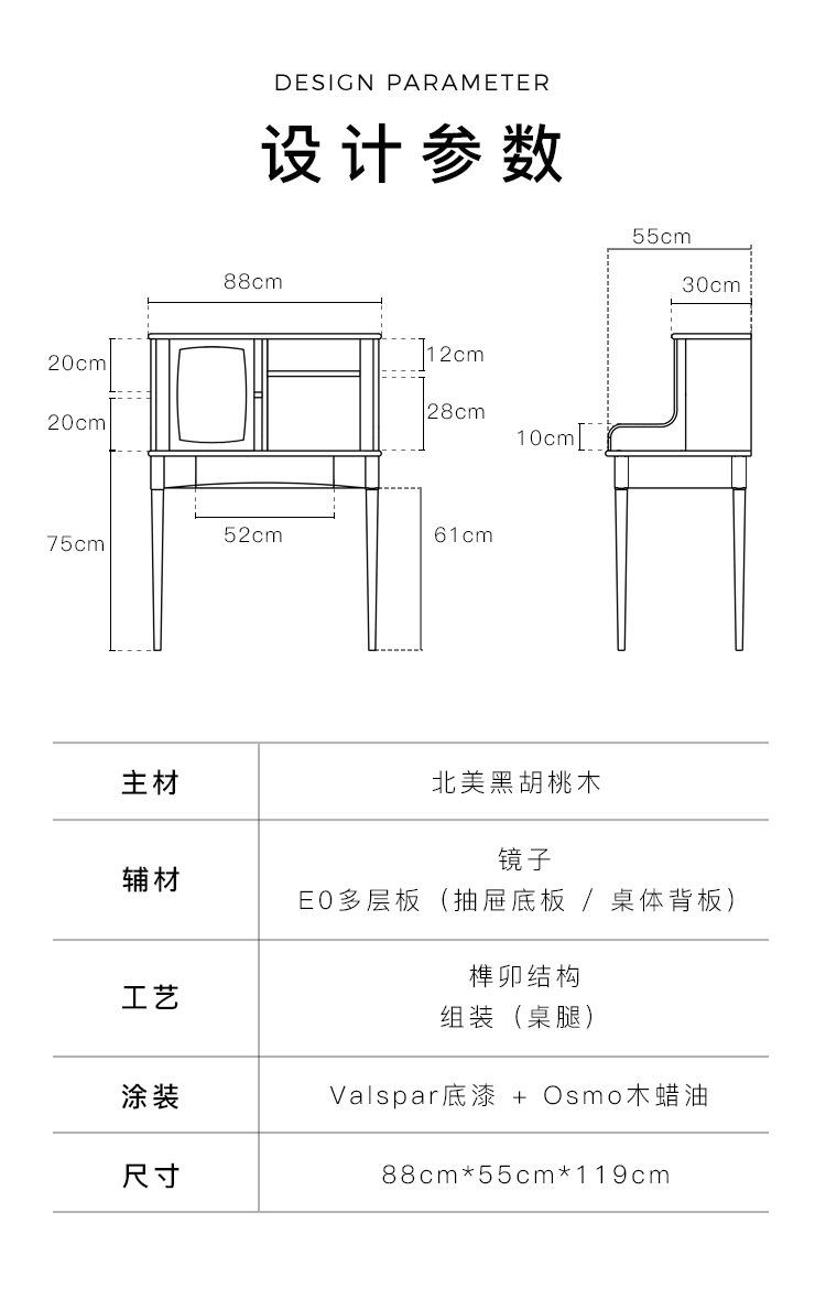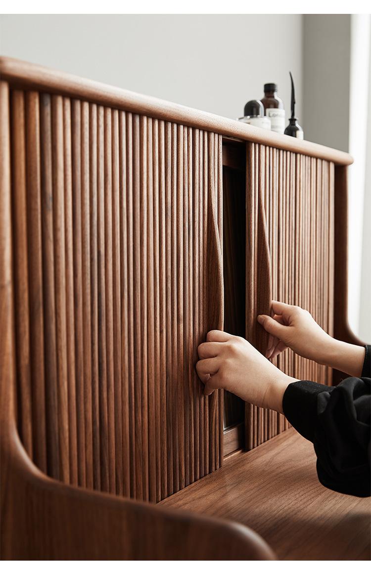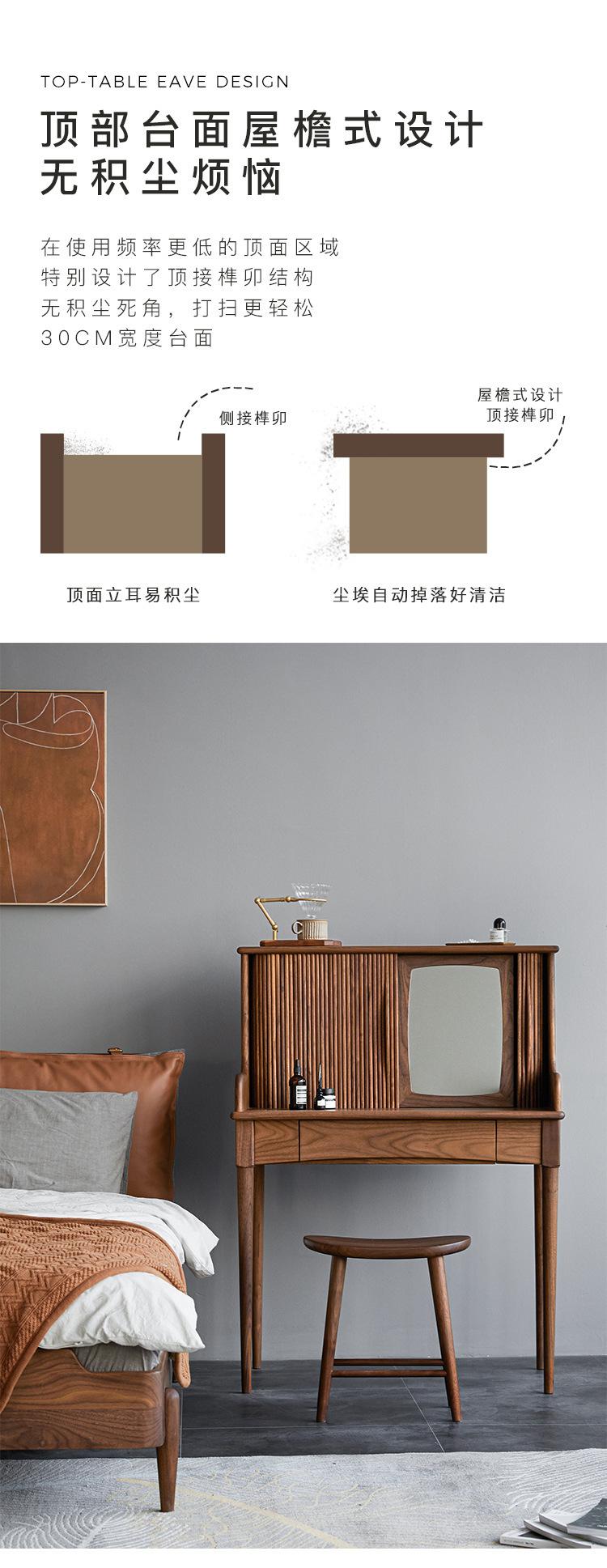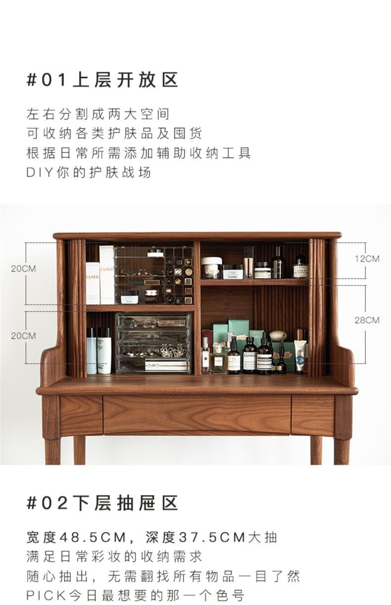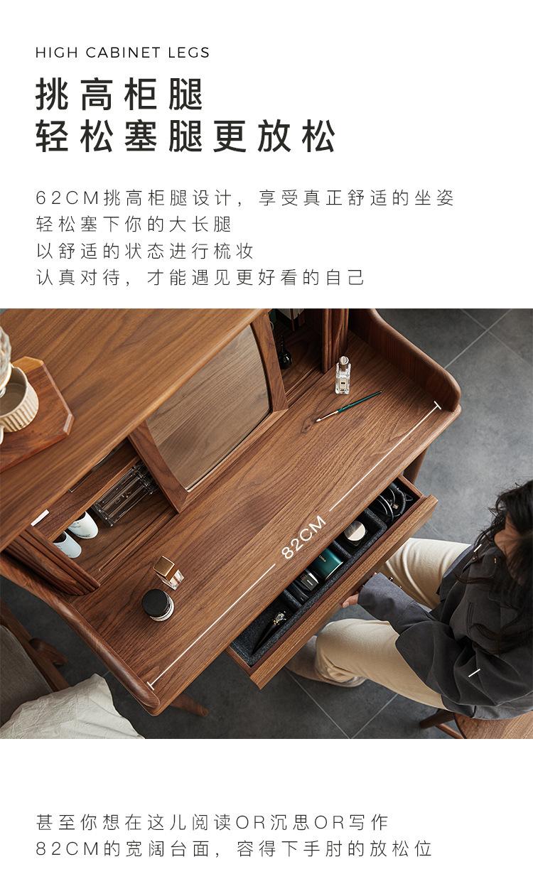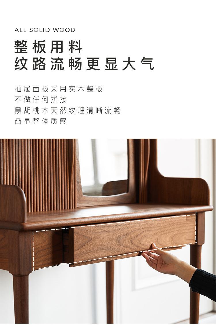 Tocador de madera maciza de nogal negro nórdico para el hogar, apartamento pequeño, dormitorio moderno minimalista, mesa de maquillaje retro de roble blanco
