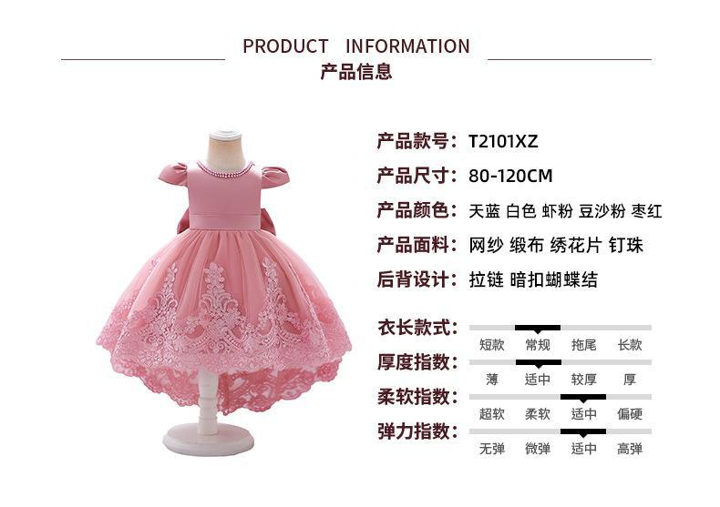 Vestido Formal para Niños Vestido Formal para Niños Vestido de Princesa Vestido Formal de Pasarela para Niñas Vestido de Actuación de Piano para Niñas Vestido con Cola