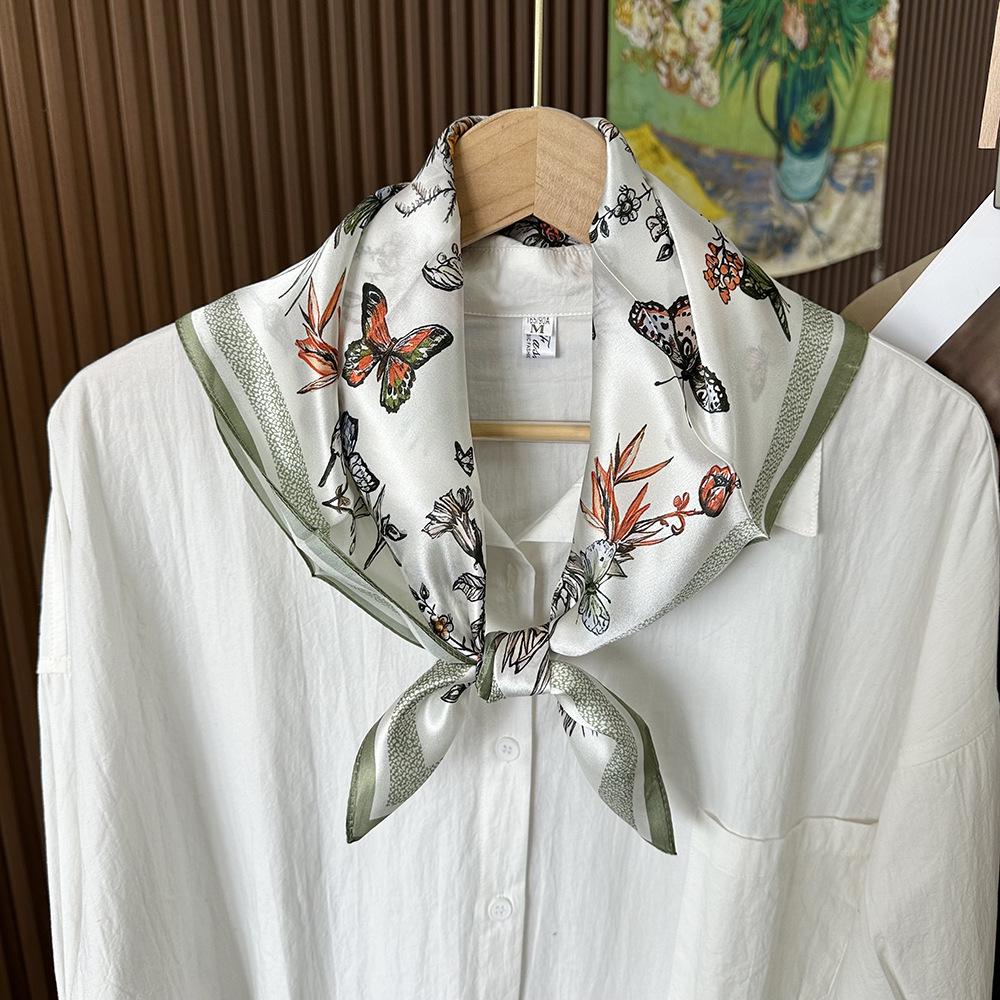 Nueva bufanda cuadrada con estampado de moda de 70 cm, bufanda versátil de temperamento para mujer, chal de seda, bufanda pequeña y fresca, venta al por mayor