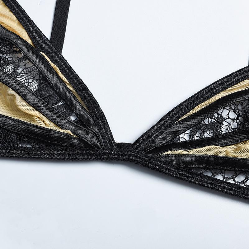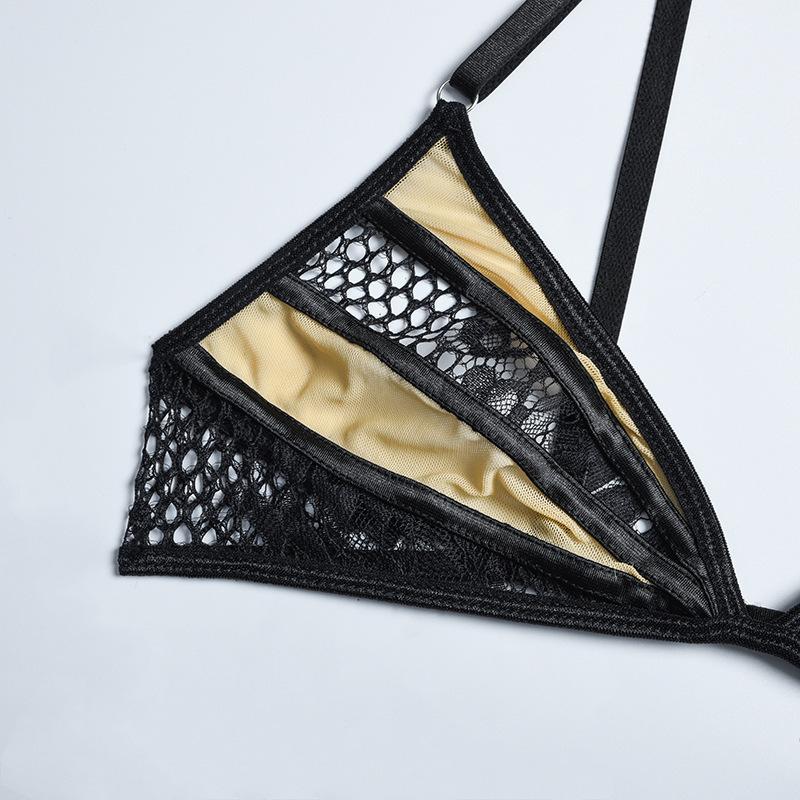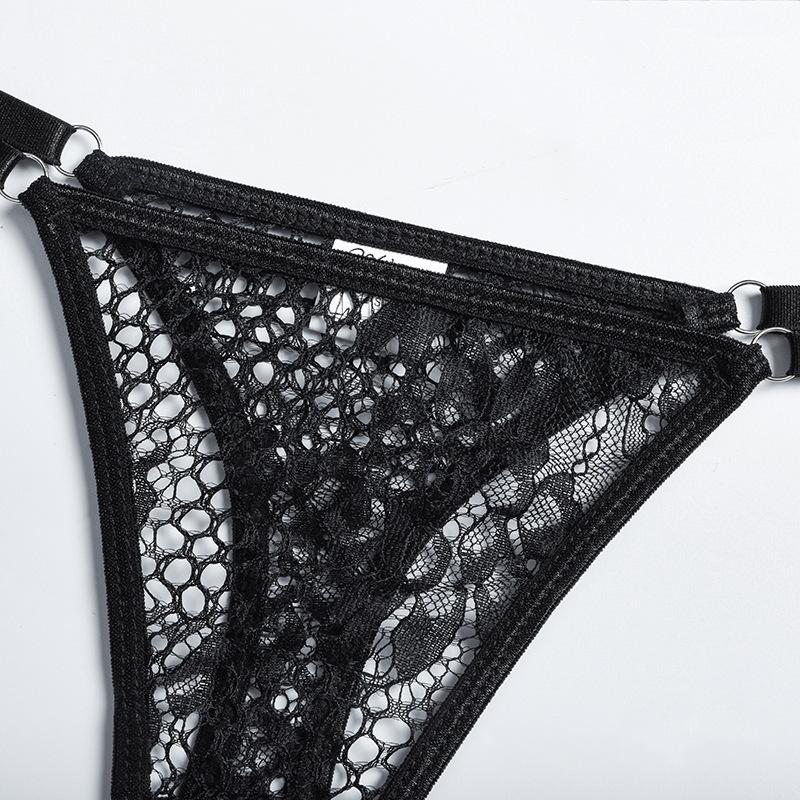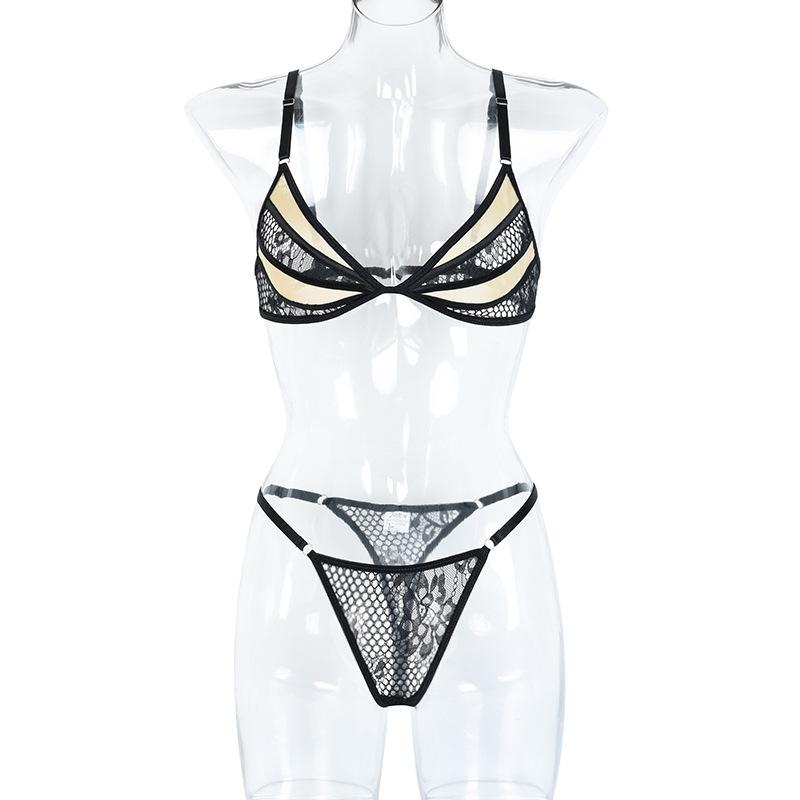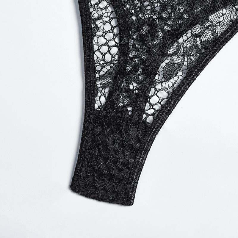 Conjunto de Lencería Sexy Europea y Americana de Encaje con Costuras de Rejilla Perspectiva Slim Tirantes al Hombro