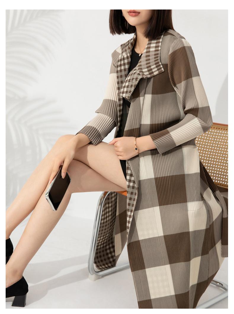 Gabardina para mujer de largo medio color marrón Maillard otoño e invierno 2023 Nueva Moda elegante holgada con cinturón