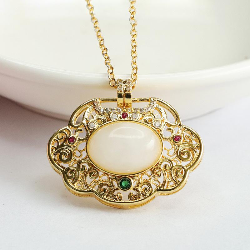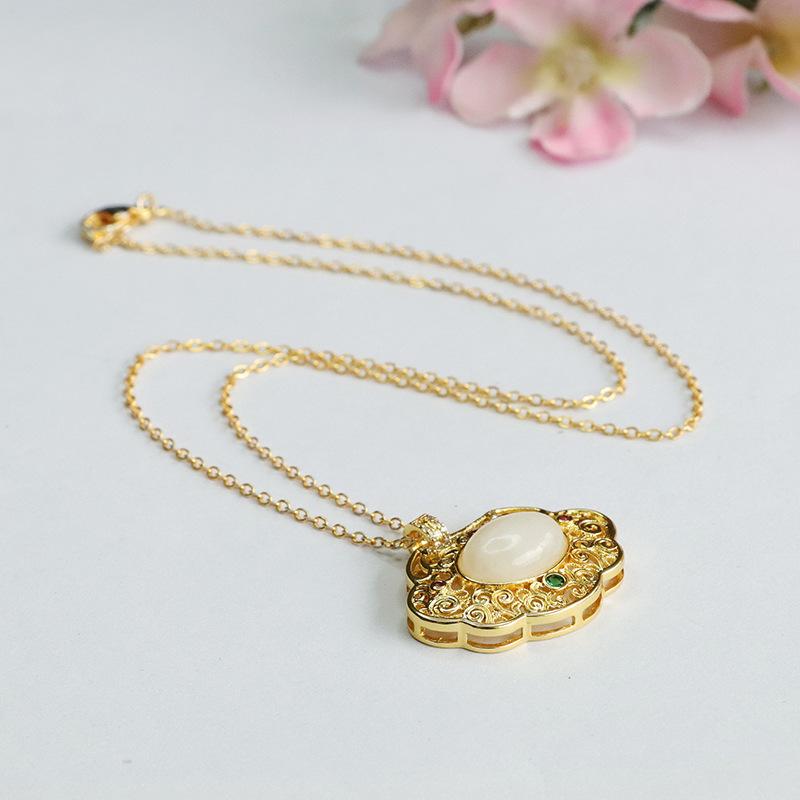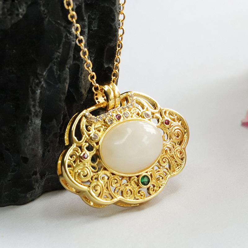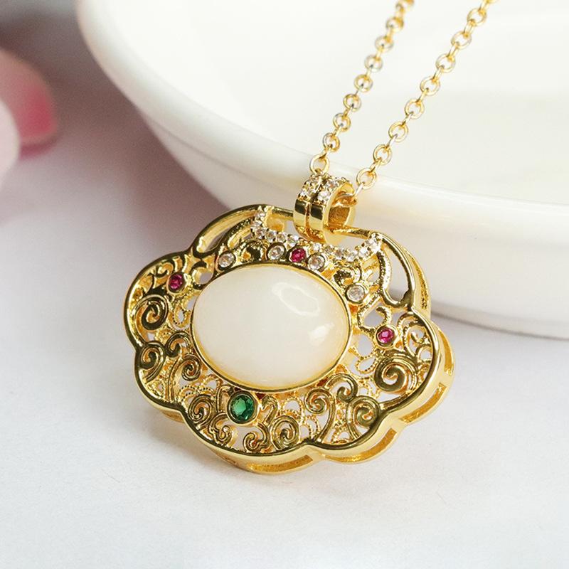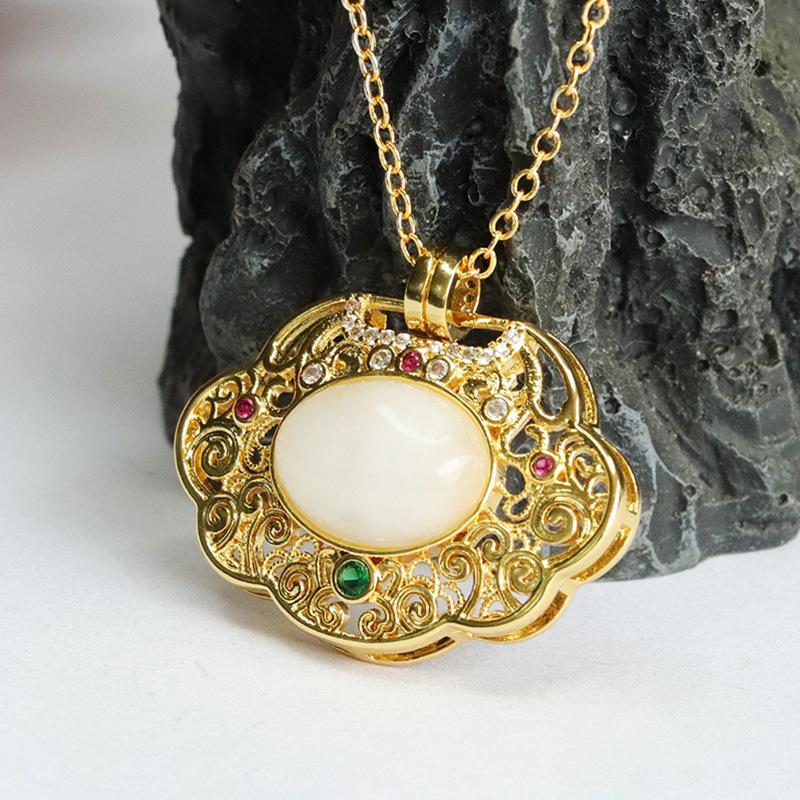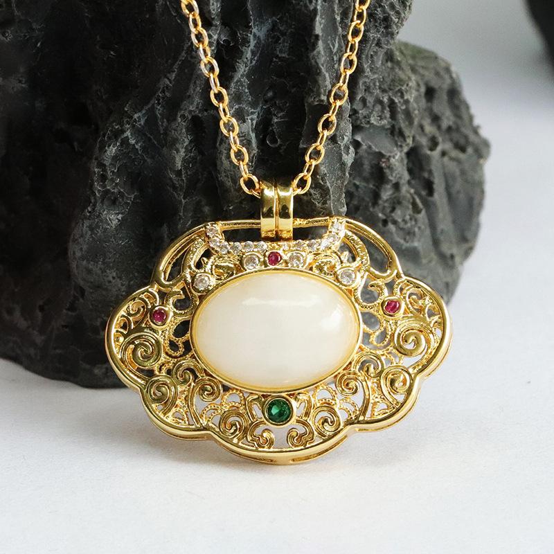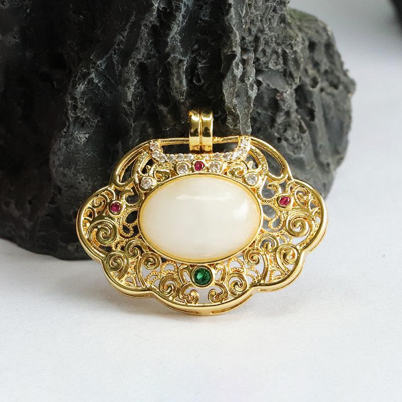 Hetian jade white jade ruyi hollow pendant
