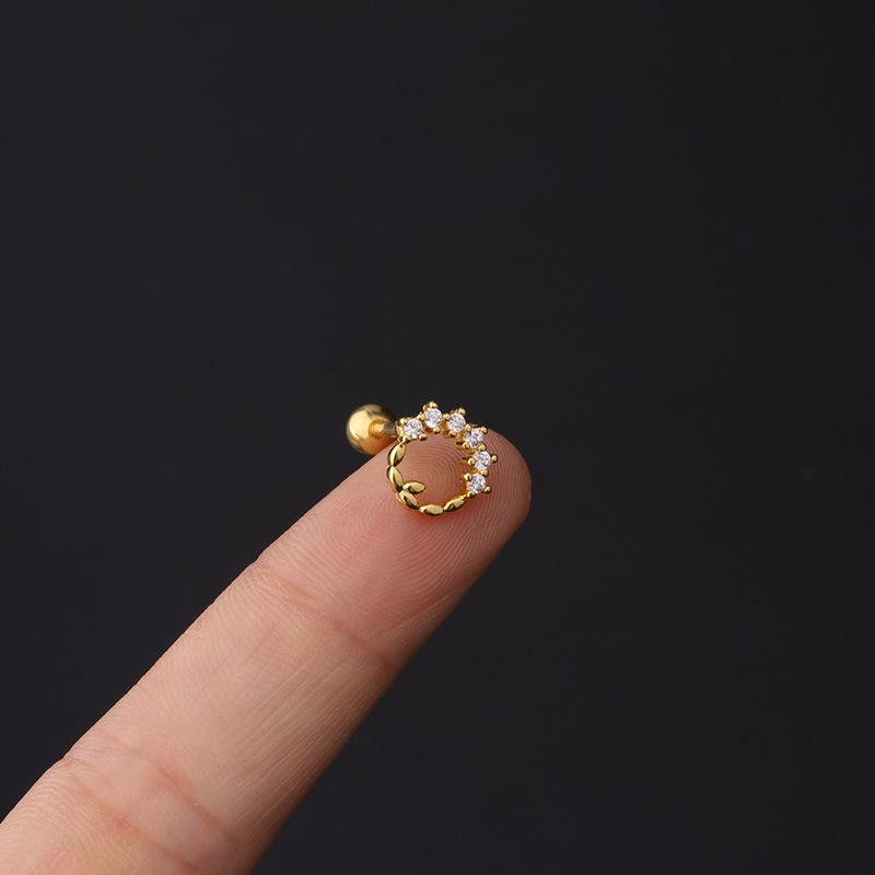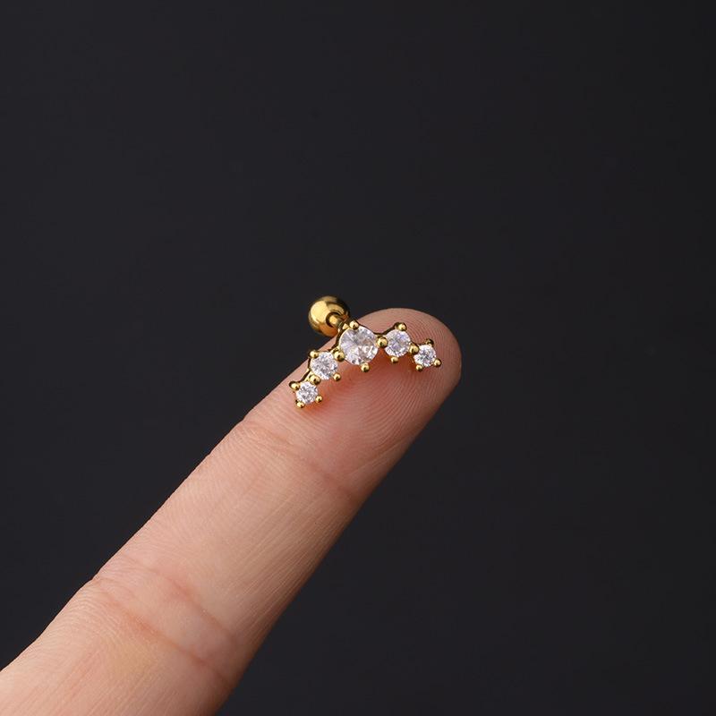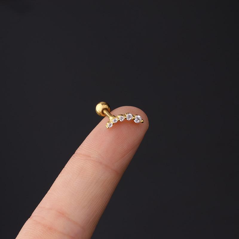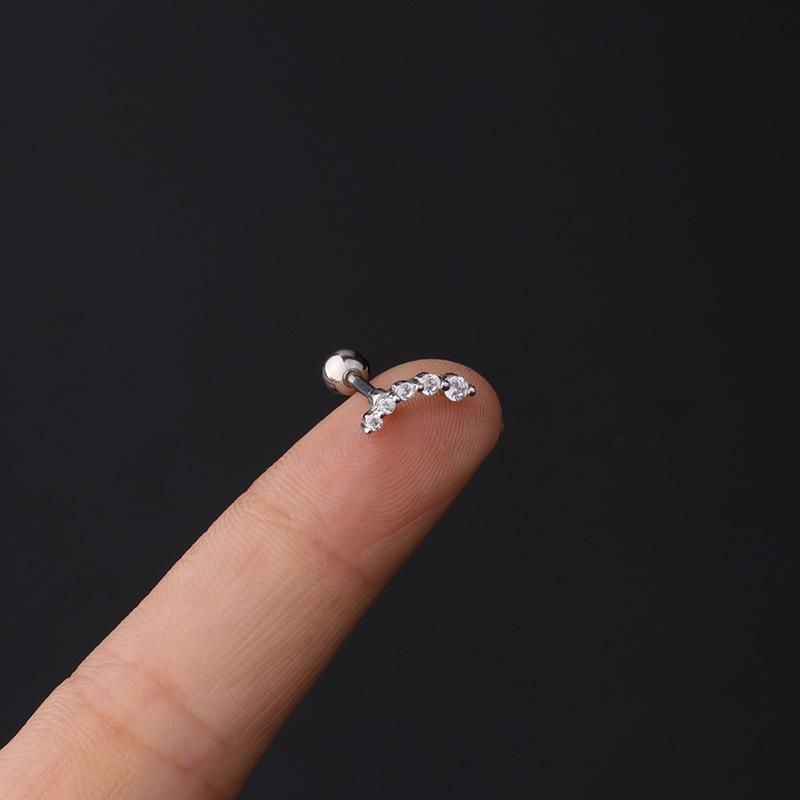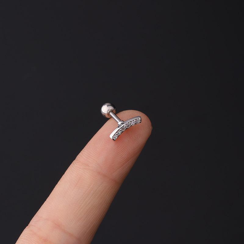 | nombre del producto | Pendientes de perforación de acero inoxidable con varilla gruesa de 16 g, con circonitas en forma de hueso para la oreja, populares en Europa y América, con forma de bola de rosca, joyería de moda. |