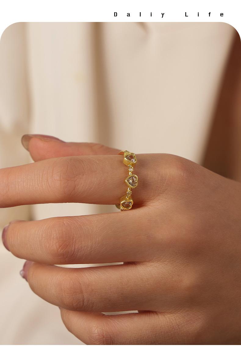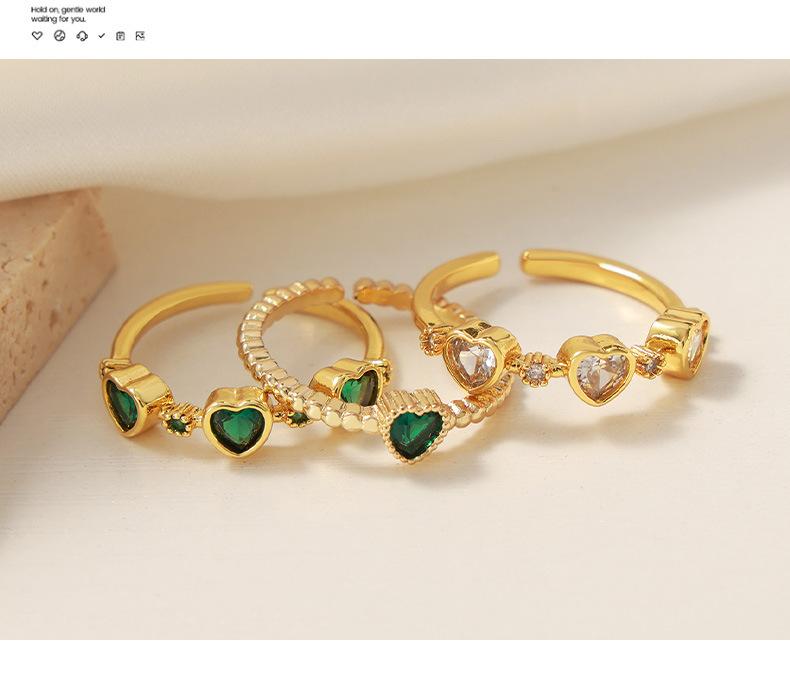 Nueva Moda Diseño Simple Nicho Personalizado Material de Cobre Anillo Abierto de Zirconia en Forma de Corazón Joyería Estilo Europeo y Americano Mujeres