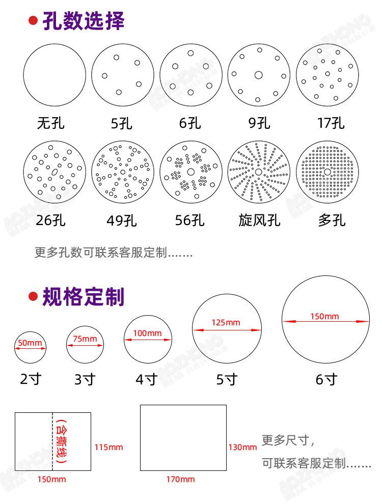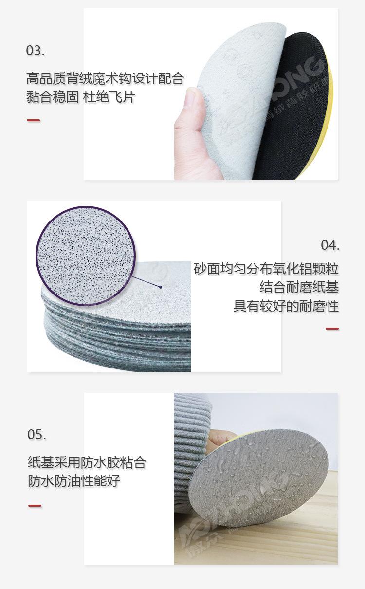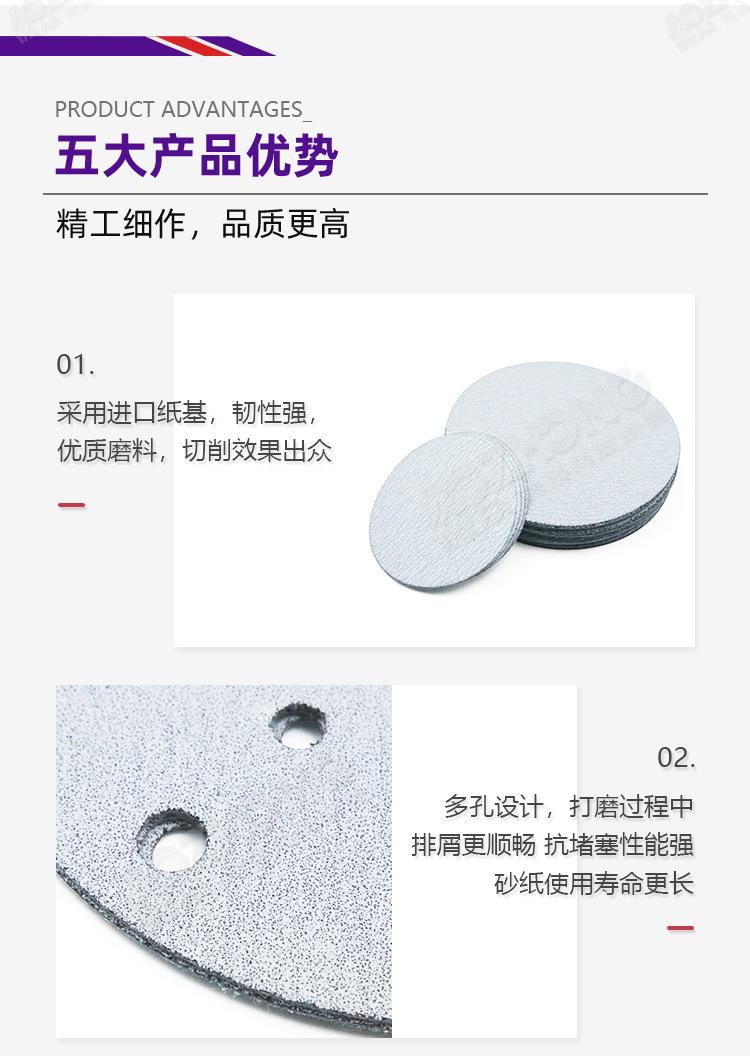 Fabricante Venta al por Mayor Lija Blanca Flocado 5 Pulgadas 6 Agujeros Multi-Agujeros Masilla para Pared Libre de Polvo Disco de Lija Neumático