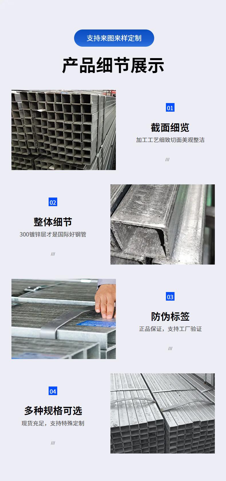 Estructura de suministro de fábrica Q235B Tubo rectangular cuadrado galvanizado por inmersión en caliente para áticos con paredes gruesas, tubo cuadrado hueco galvanizado de 100 x 100