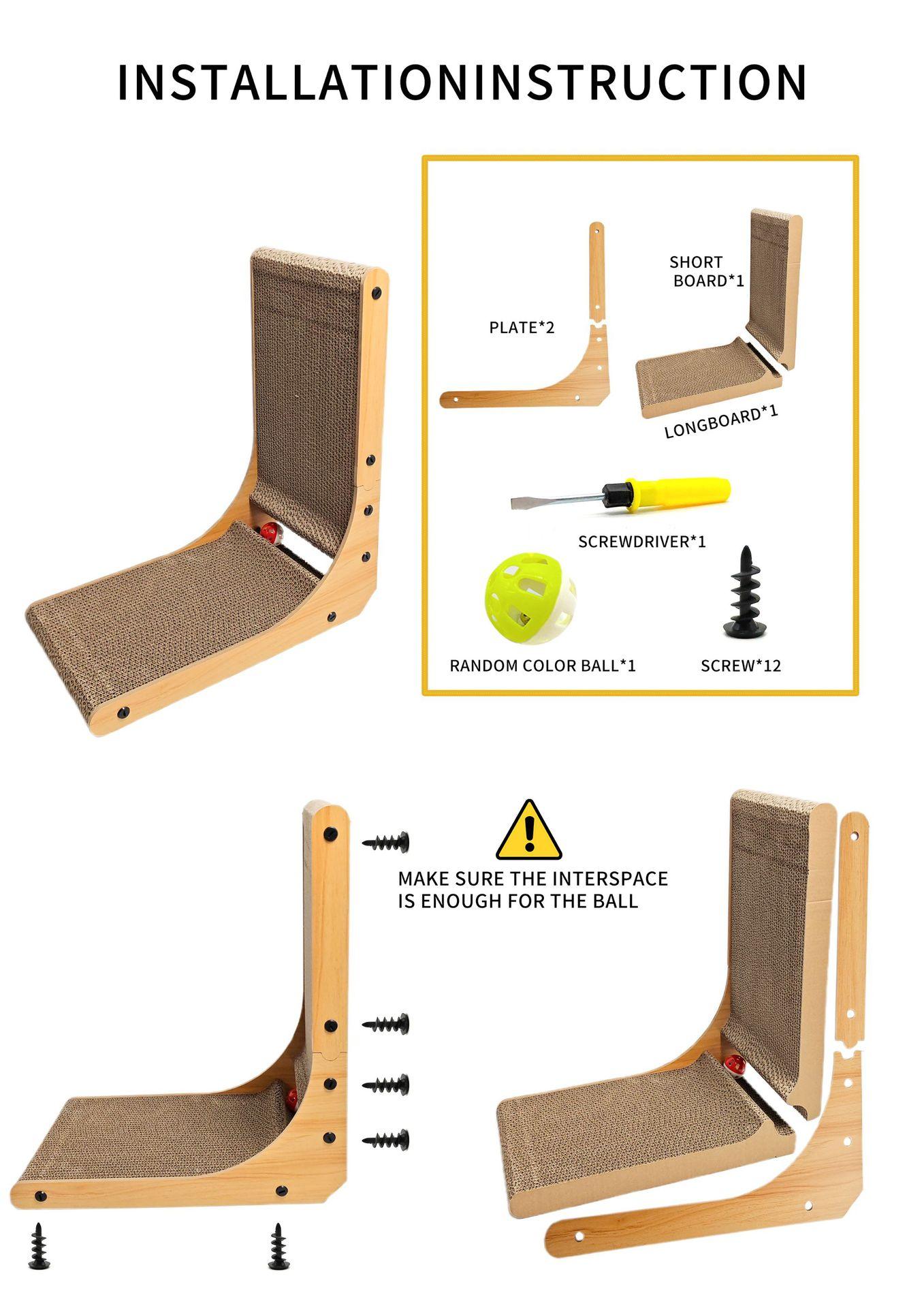 Tabla Rascadora para Gatos en Forma de L Protección Interior Muebles Rascador Cartón Almohadilla Anti-Arañazos para Gatos con Juguete de Pelota 16.9 pulgadas