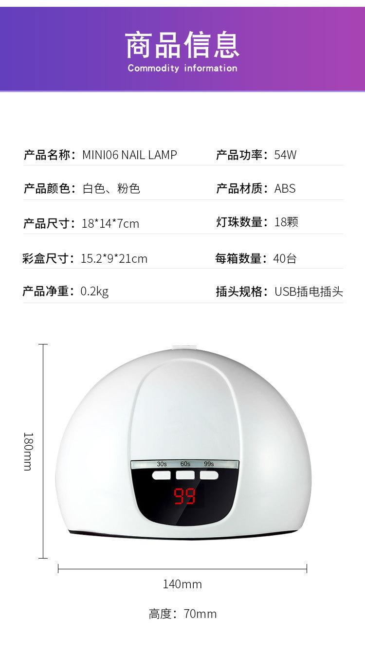 Lámpara de uñas transfronteriza mini lámpara para hornear pegamento de esmalte de uñas para principiantes 54W de mano portátil lámpara de curado UV máquina de fototerapia de secado rápido