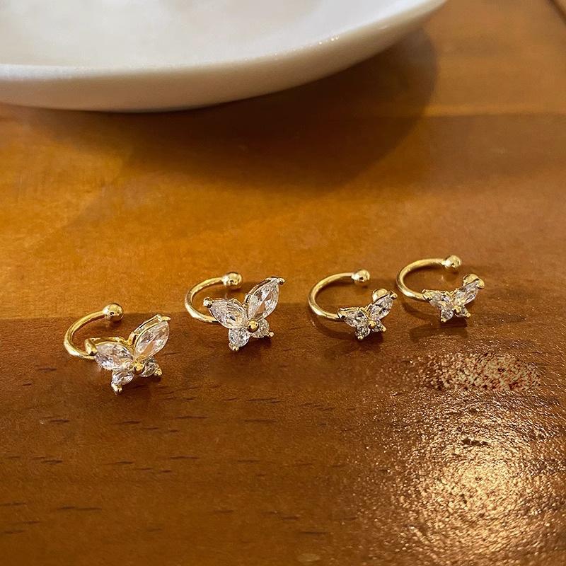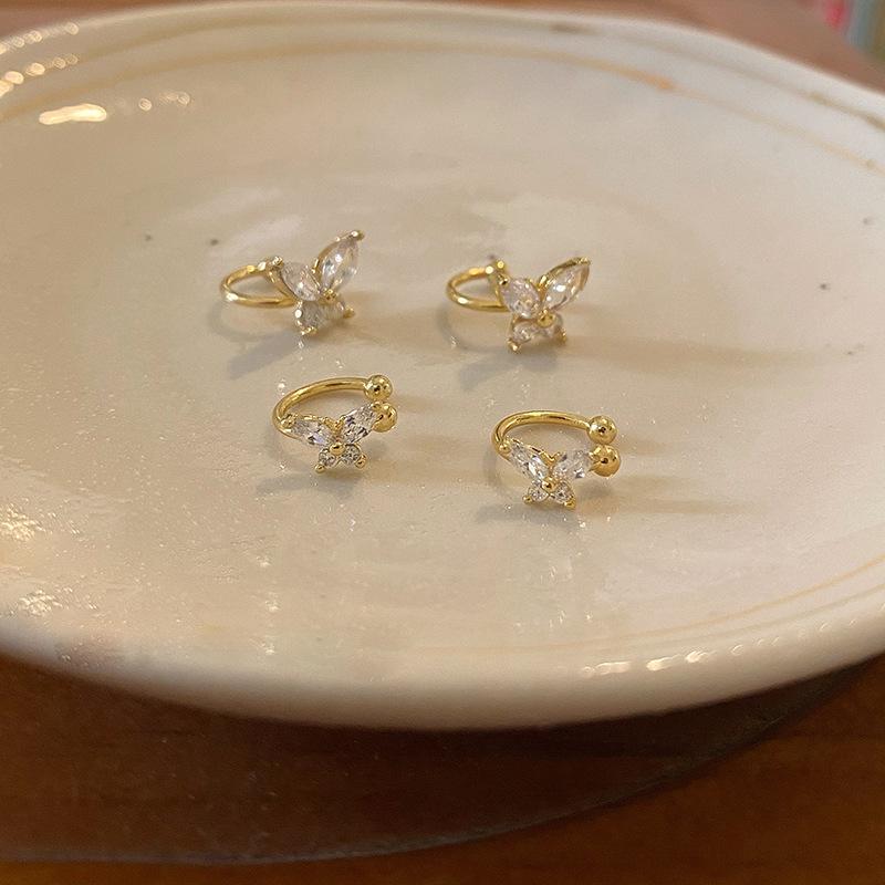 Clip para Oreja de Mariposa de Circonita para Mujer Nueva Entrada Lujo Ligero Diseño Nicho Aretes