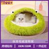Nido de peluche para mascotas, nido de algodón para otoño e invierno, nido de gato universal para cuatro estaciones, nido de perro de peluche redondo semicerrado, nido de gato