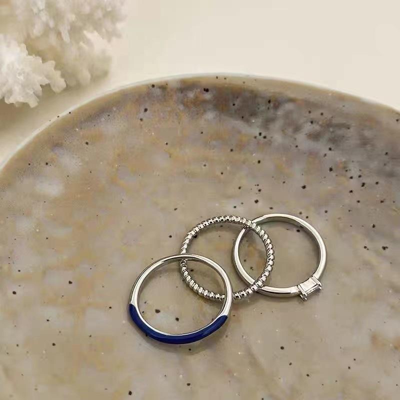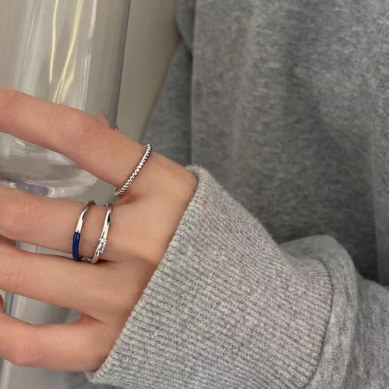 Anillo de Circonita con Esmalte Goteado para Mujer, Diseño Nicho con Sentido Simple de Personalidad Elegante