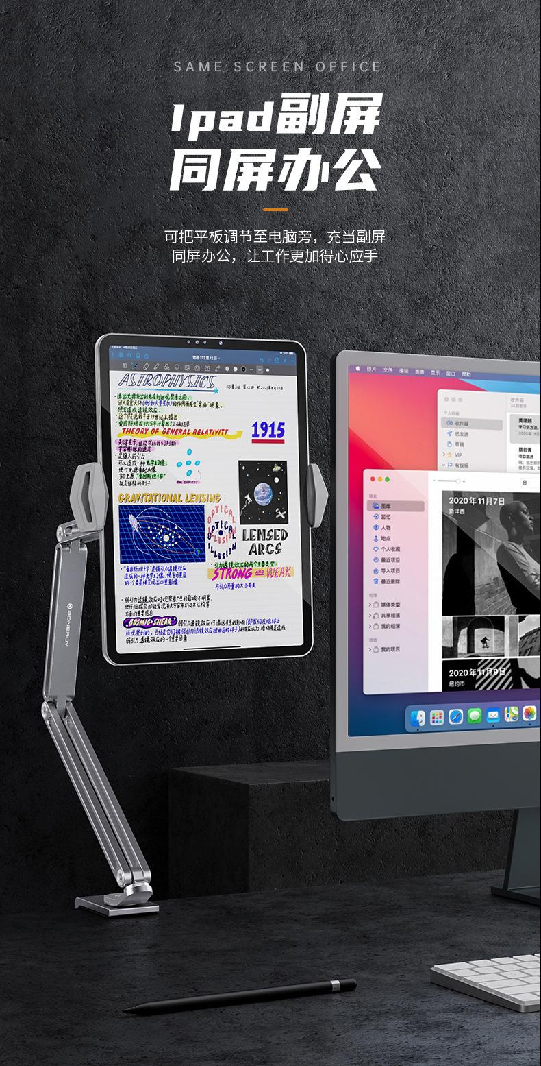 Soporte de escritorio para teléfono móvil, soporte de mesita de noche para iPad, soporte magnético para tableta, soporte de aleación de aluminio para tableta y PC.