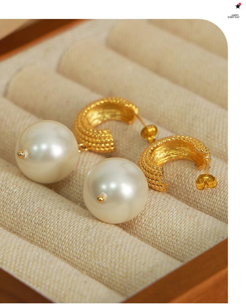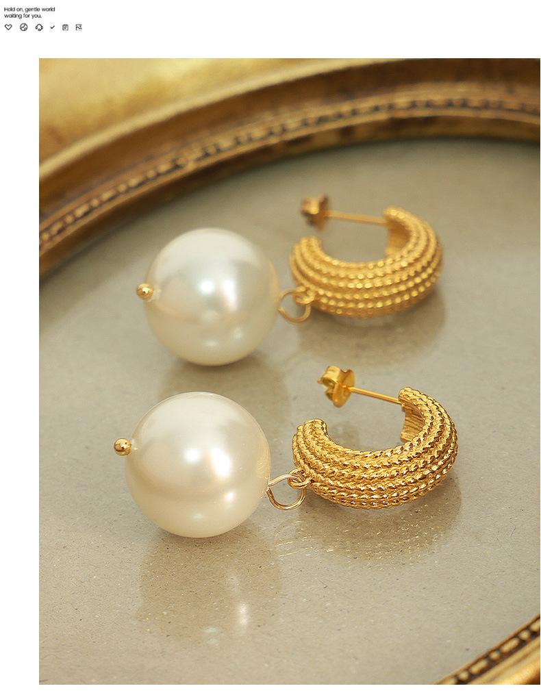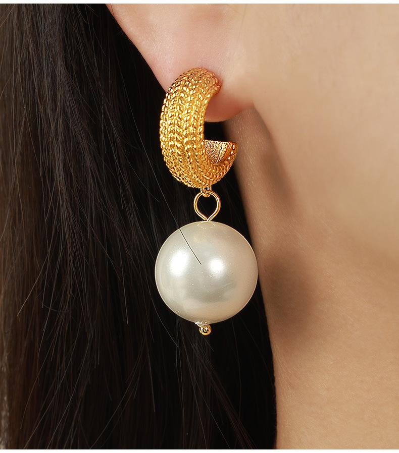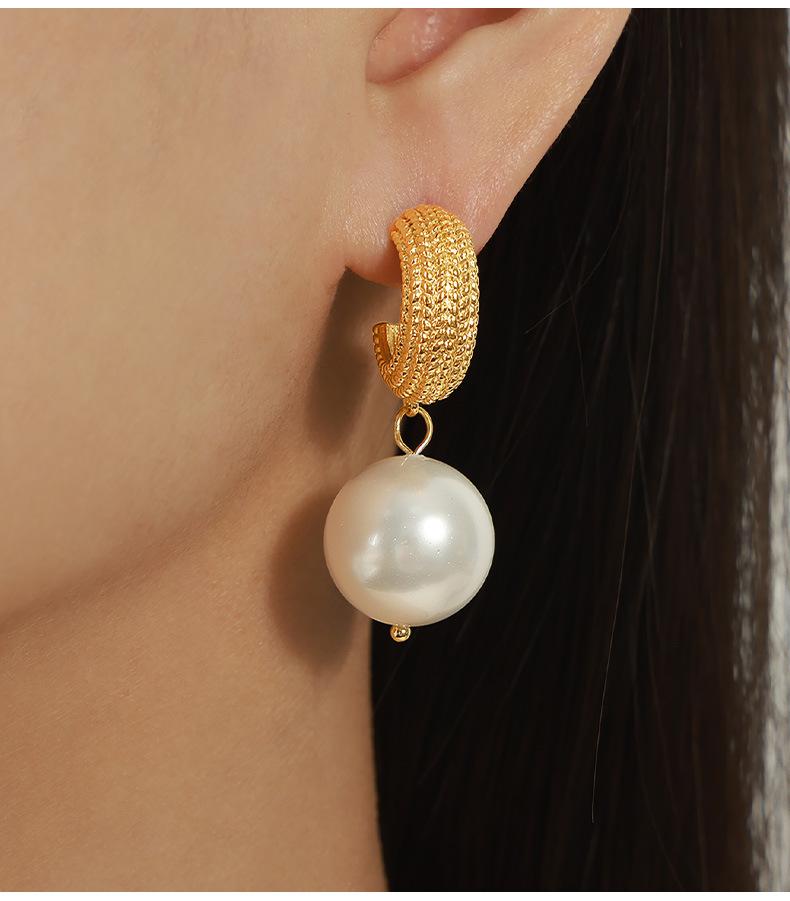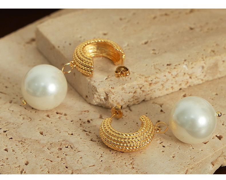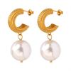 Pendientes coreanos con diseño de C con giro popular, nuevos pendientes vintage con colgante de perla de imitación, chapados en oro de 18 quilates y acero de titanio.