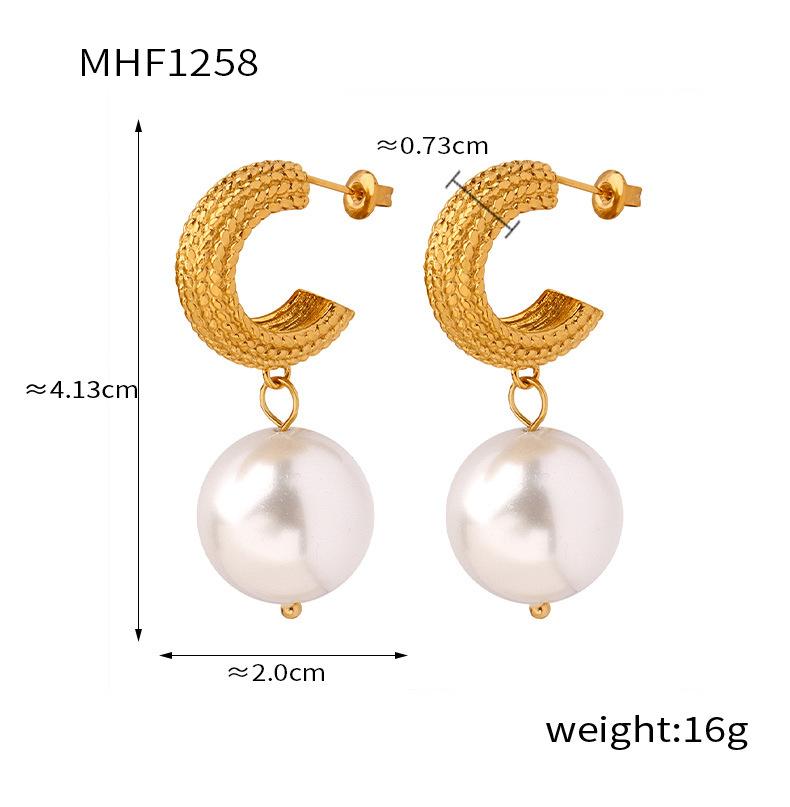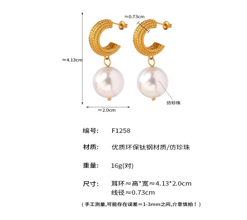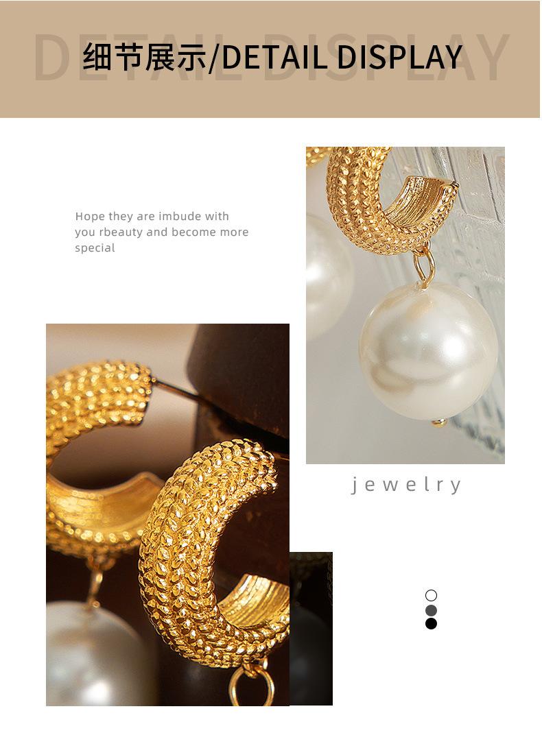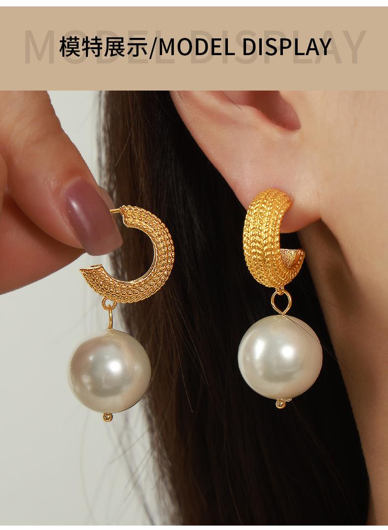 Pendientes coreanos con diseño de C con giro popular, nuevos pendientes vintage con colgante de perla de imitación, chapados en oro de 18 quilates y acero de titanio.