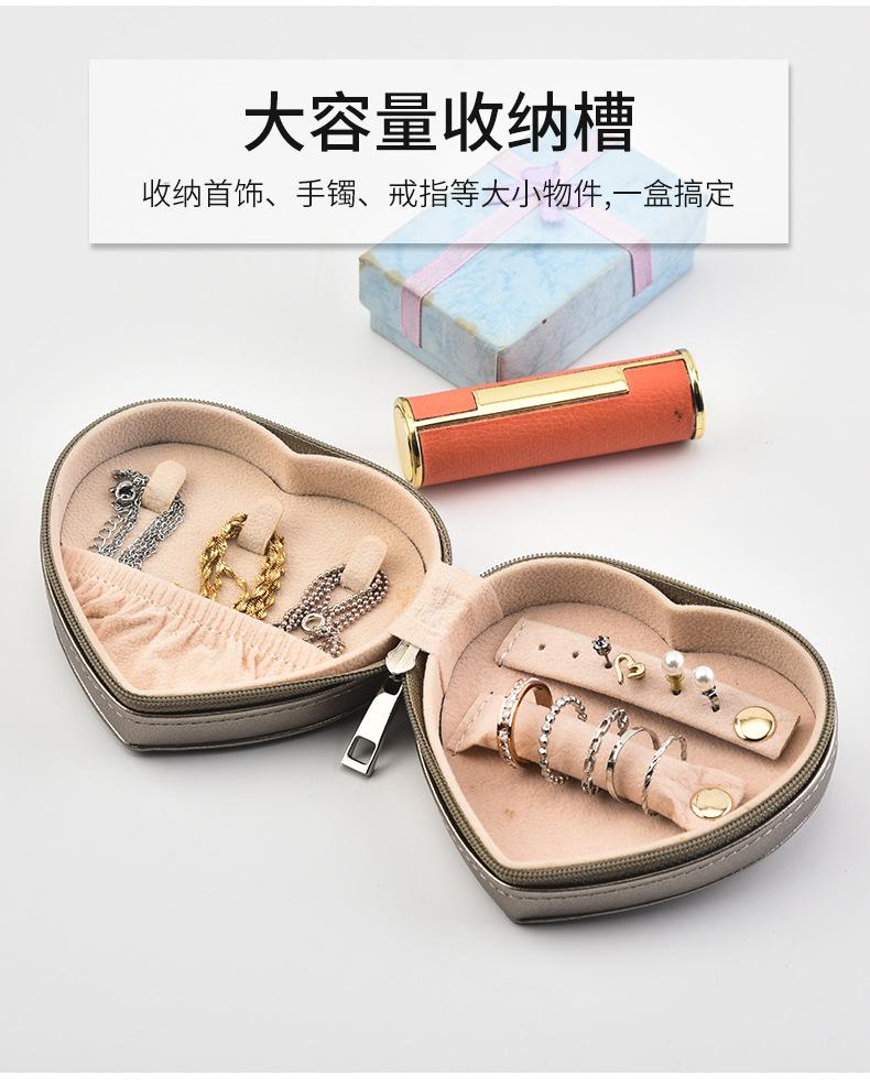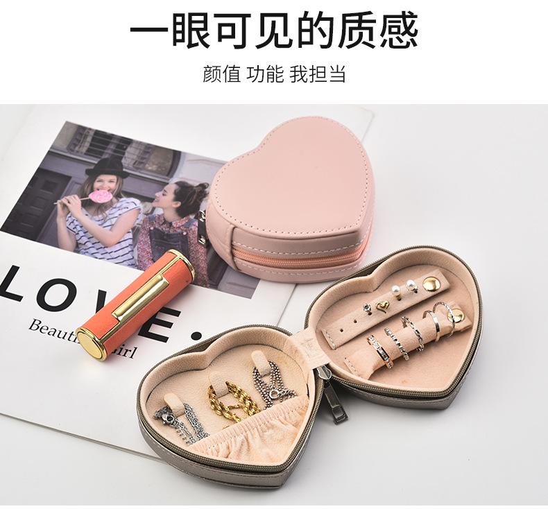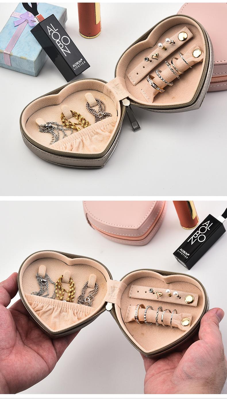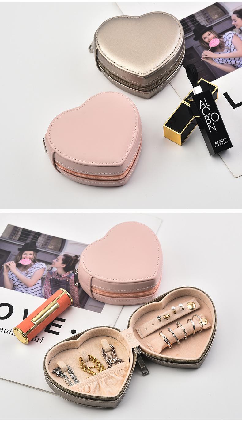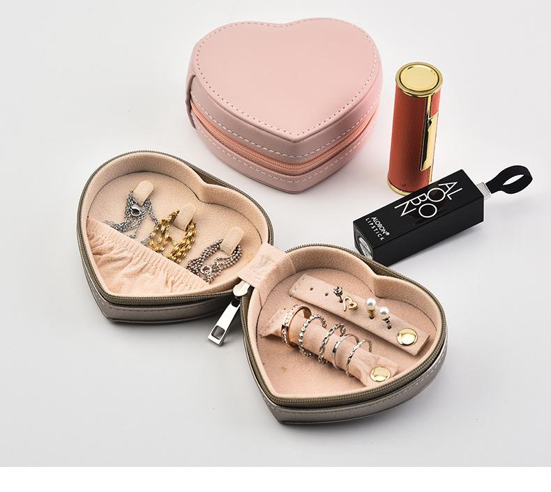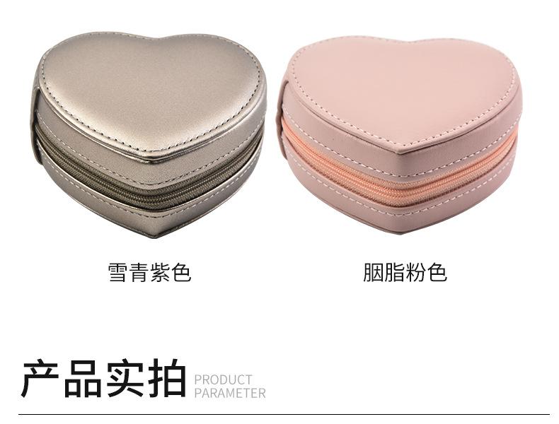 Caja de almacenamiento de joyas de viaje portátil para anillos y aretes, joyero europeo y americano, ins, cremallera, forma de corazón, PU, caja de almacenamiento de joyas