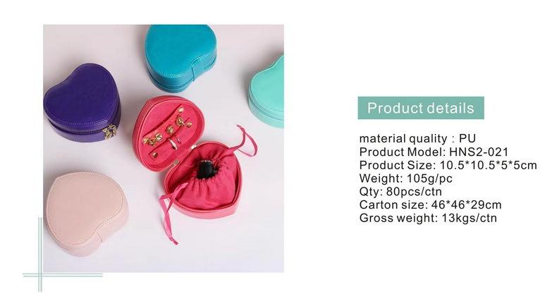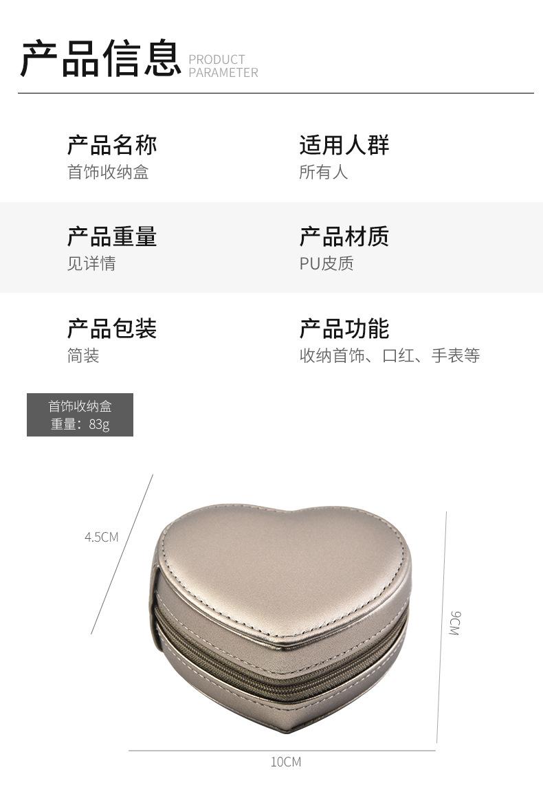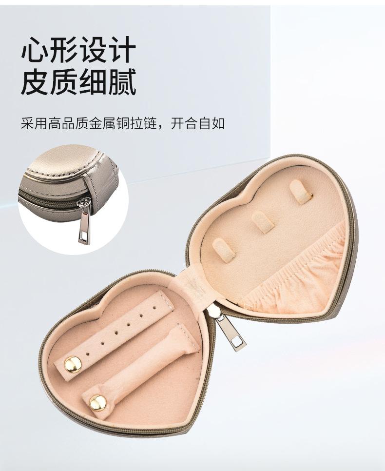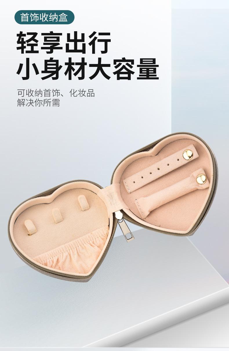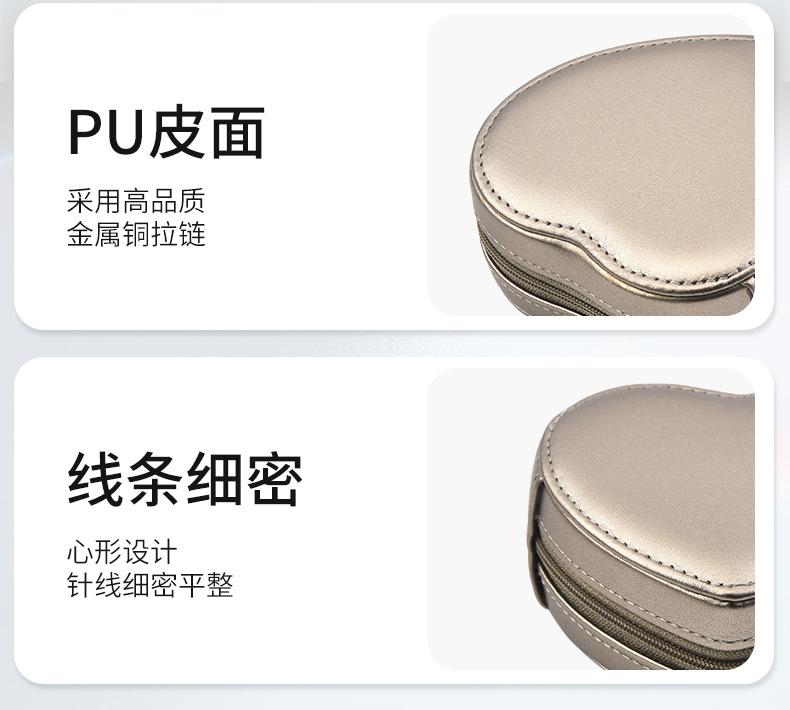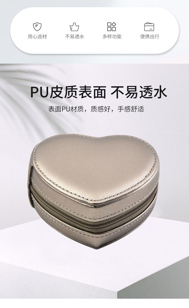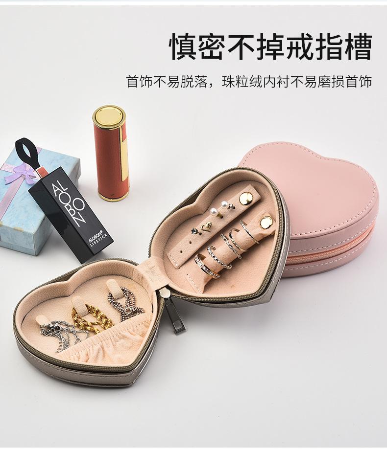 Caja de almacenamiento de joyas de viaje portátil para anillos y aretes, joyero europeo y americano, ins, cremallera, forma de corazón, PU, caja de almacenamiento de joyas
