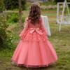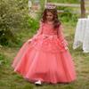 Vestido de Princesa para Niñas Transfronterizo Europeo y Americano de Amazon con Lazo Flor Tridimensional Vestido de Noche de Manga Larga para Niños Mayores
