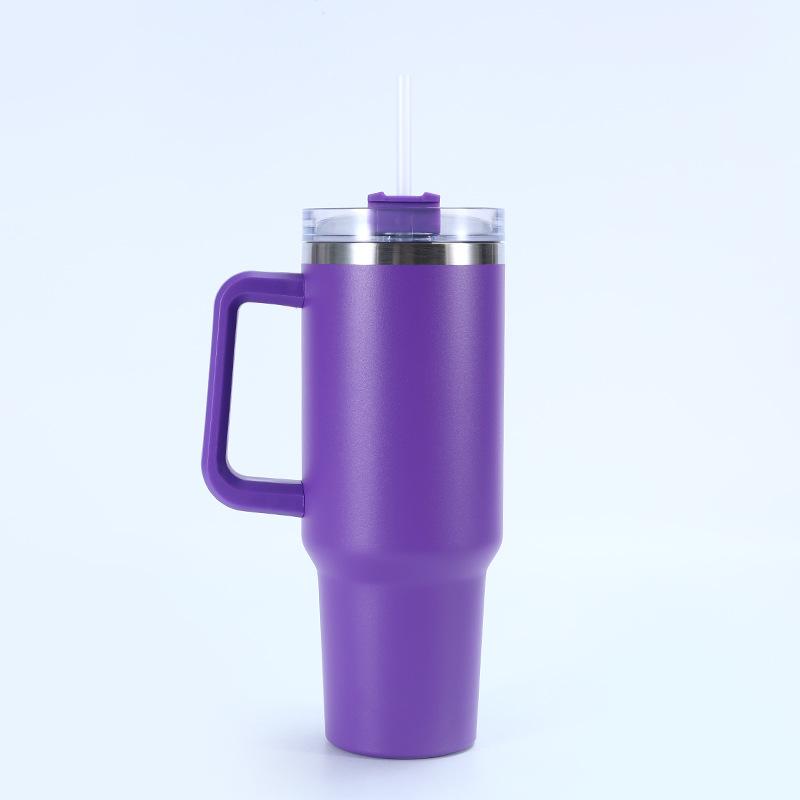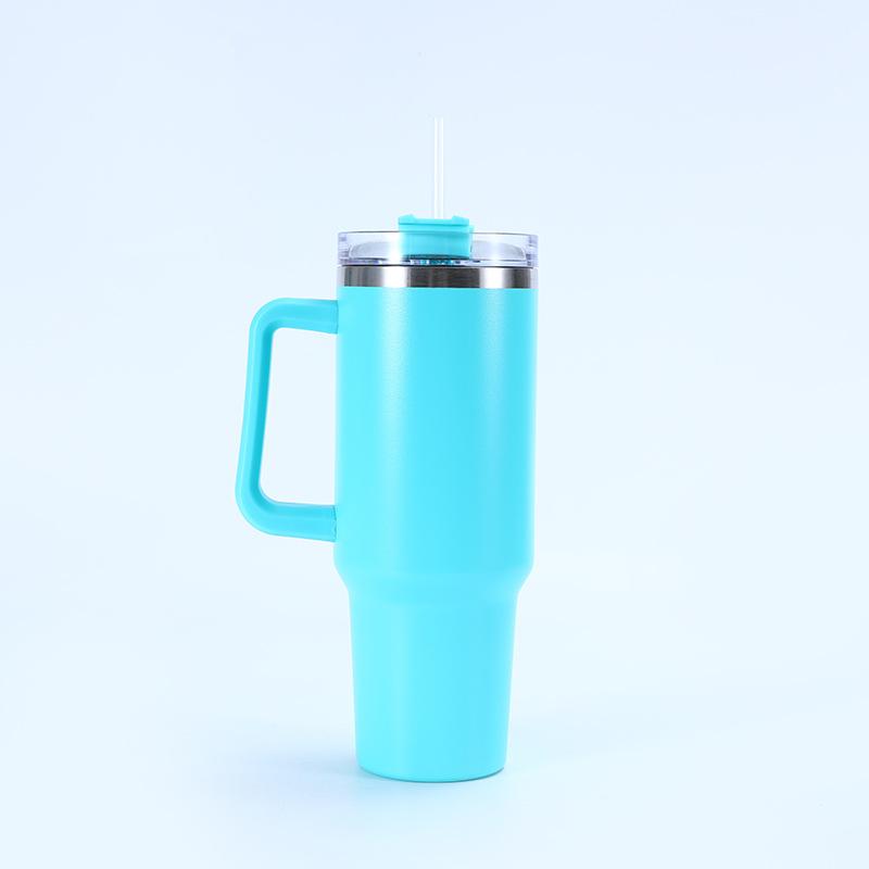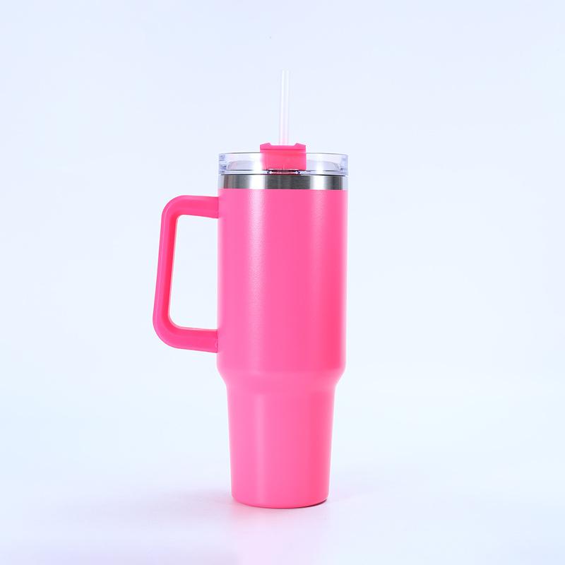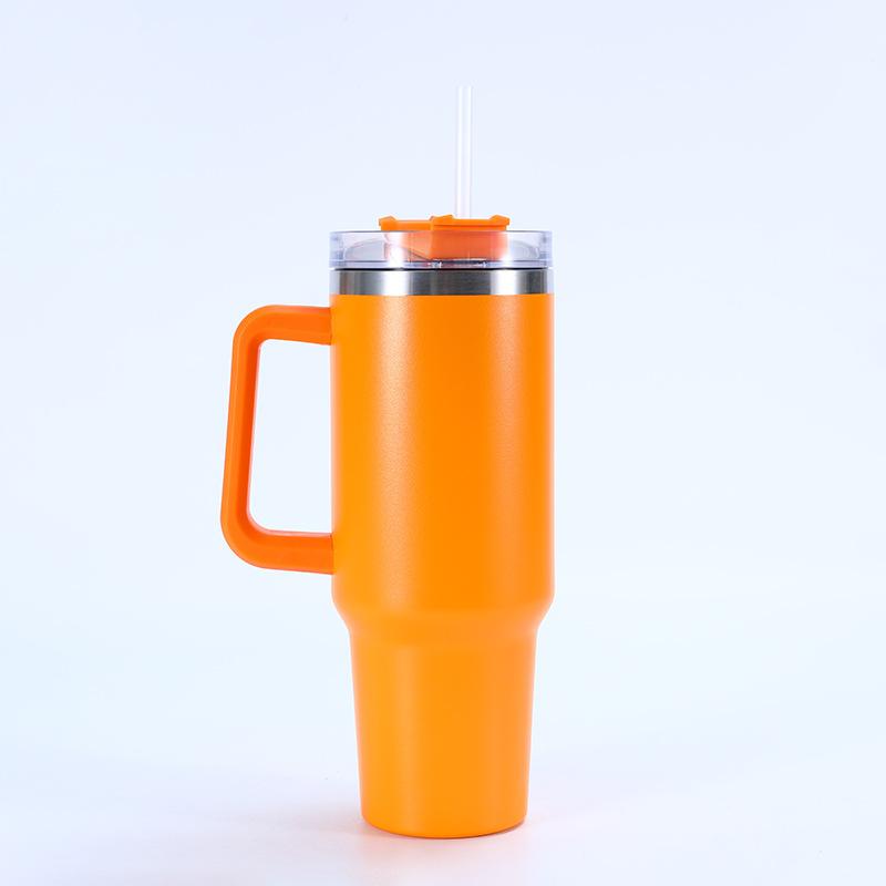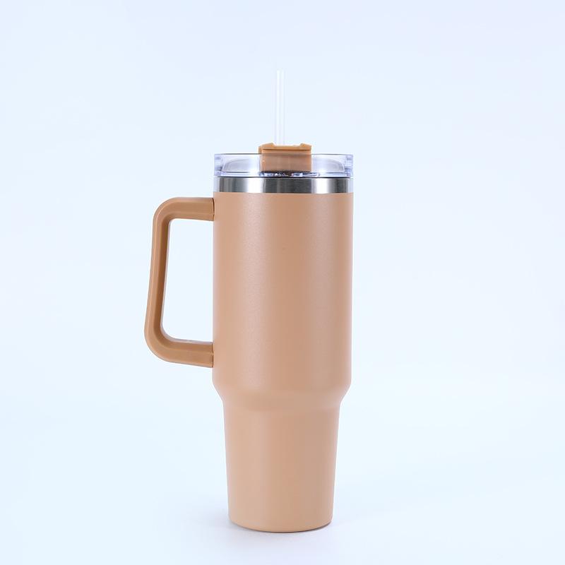 Vaso de helado para automóvil de 40 oz con asa para cerveza de acero inoxidable, pajita para automóvil, vaso de agua de gran capacidad, disponible en stock.