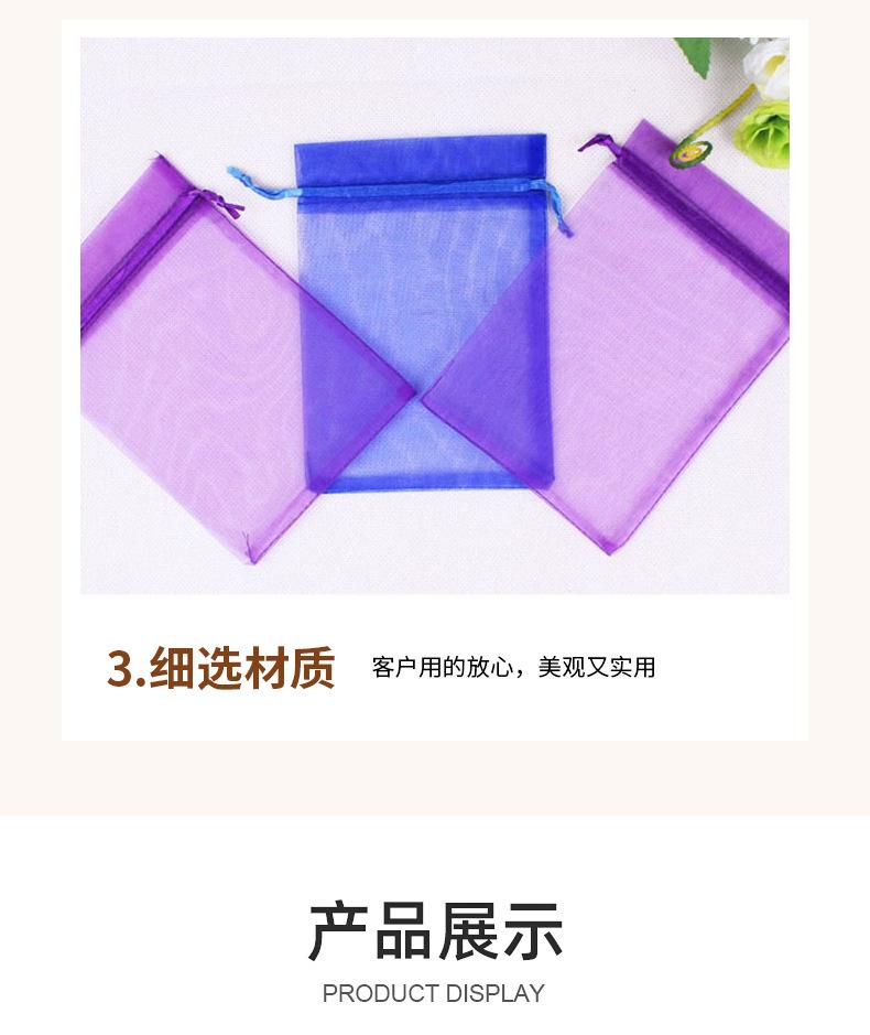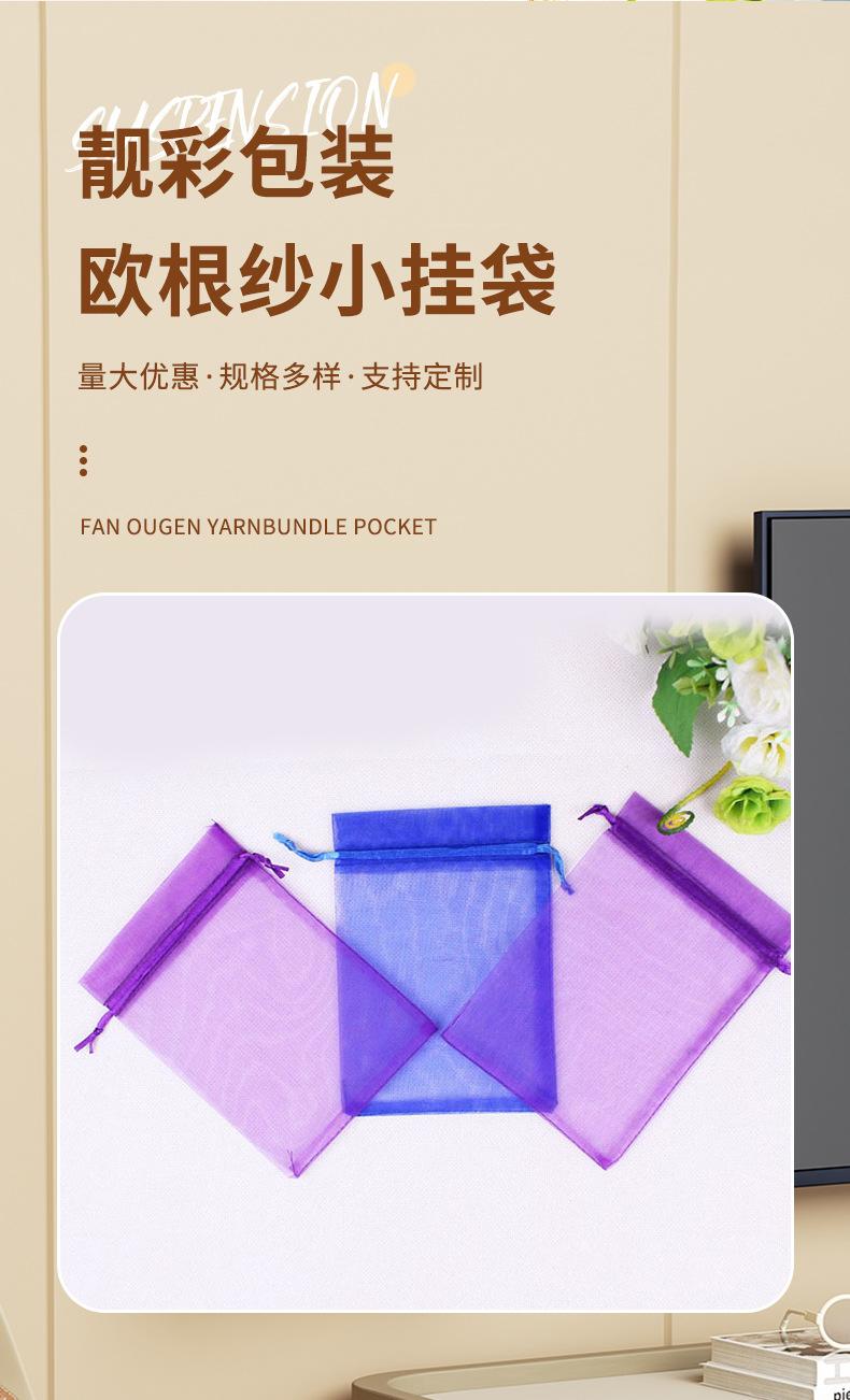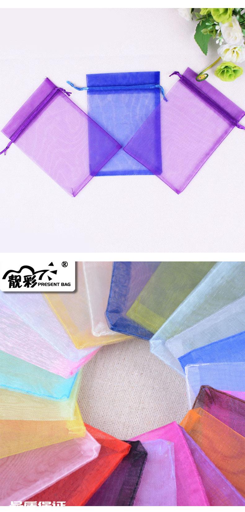 Bolsa de regalo de organza de color al por mayor de fábrica, pequeña bolsa de embalaje con colgante, bolsa de hilo con cordón, tamaño 9*12