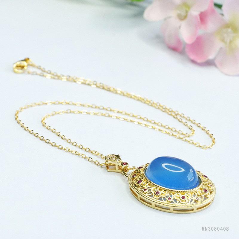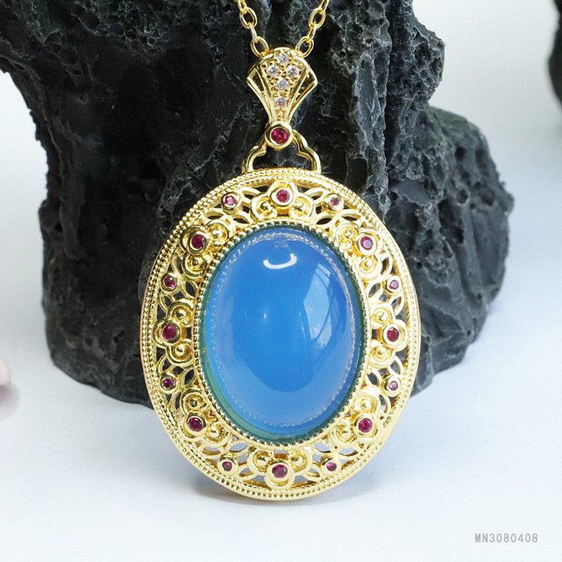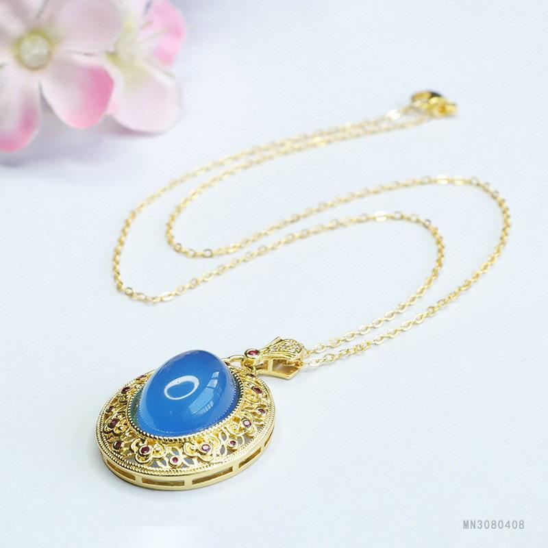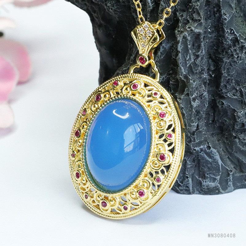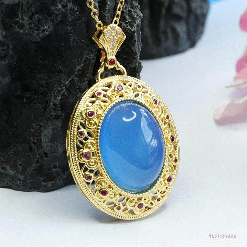 Colgante de calcedonia azul Yuyu, collar de ágata azul, hueco, retro, para mujer, fábrica, venta al por mayor, generación MN3080408