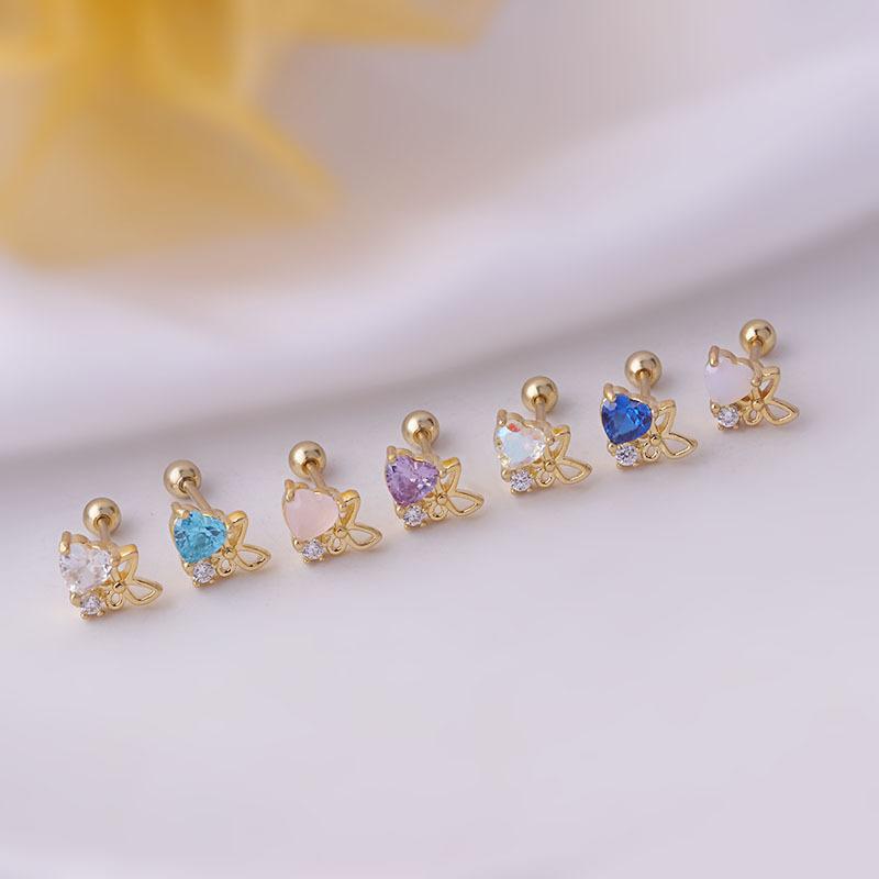 nombre del producto | Pendientes de acero de titanio con forma de hueso de oreja de 0,8 mm de grosor, con forma de mariposa y circonitas de amor, de moda coreana, con bola de rosca y un solo pendiente. |