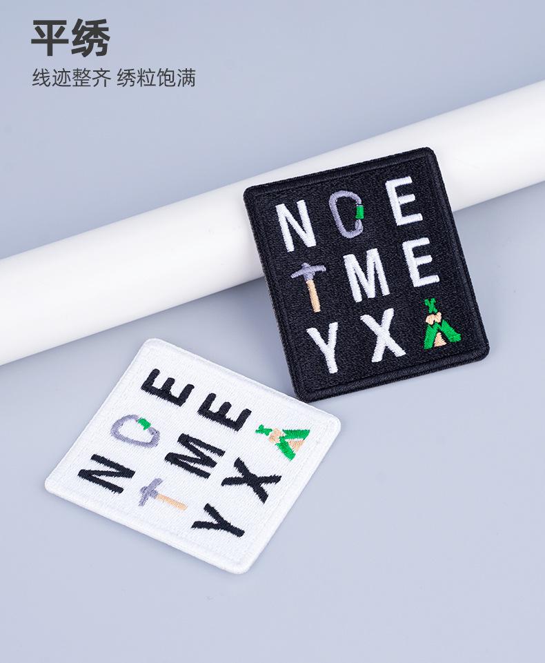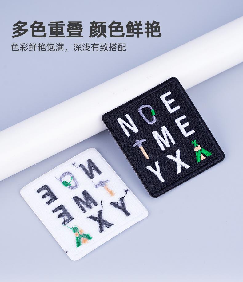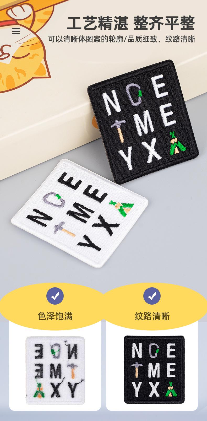 En stock, novedosas letras inglesas cuadradas, accesorios de ropa, parches bordados de tela, pegatinas para equipaje, insignia bordada a juego