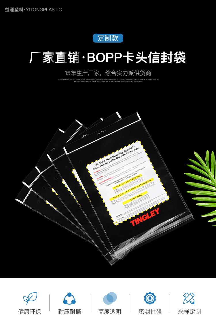 Bolsa autosellable OPP de fábrica de múltiples espesores y tamaños, bolsa de embalaje con cabezal de tarjeta impreso, bolsa de plástico transparente personalizada