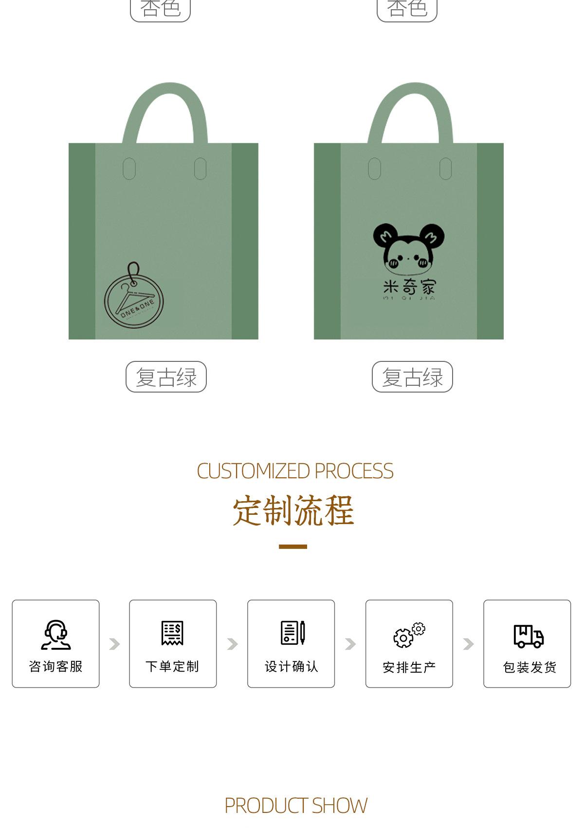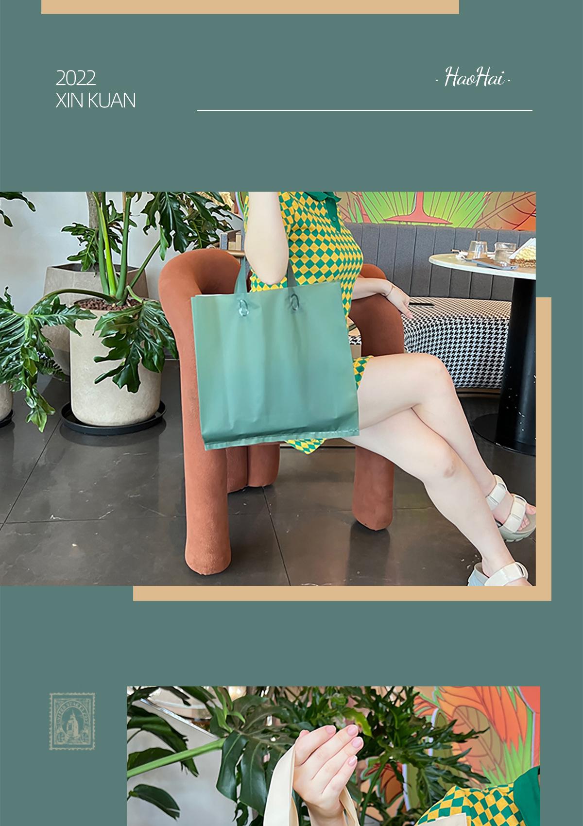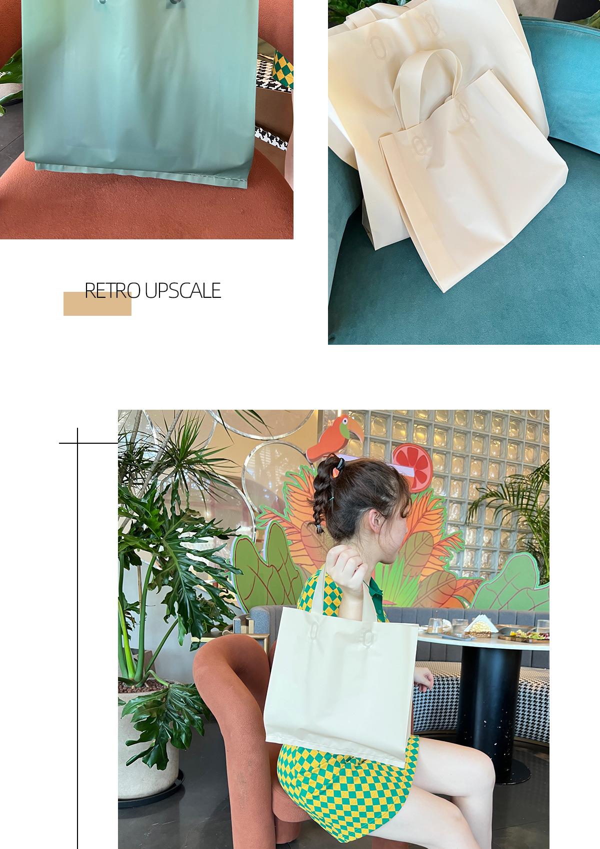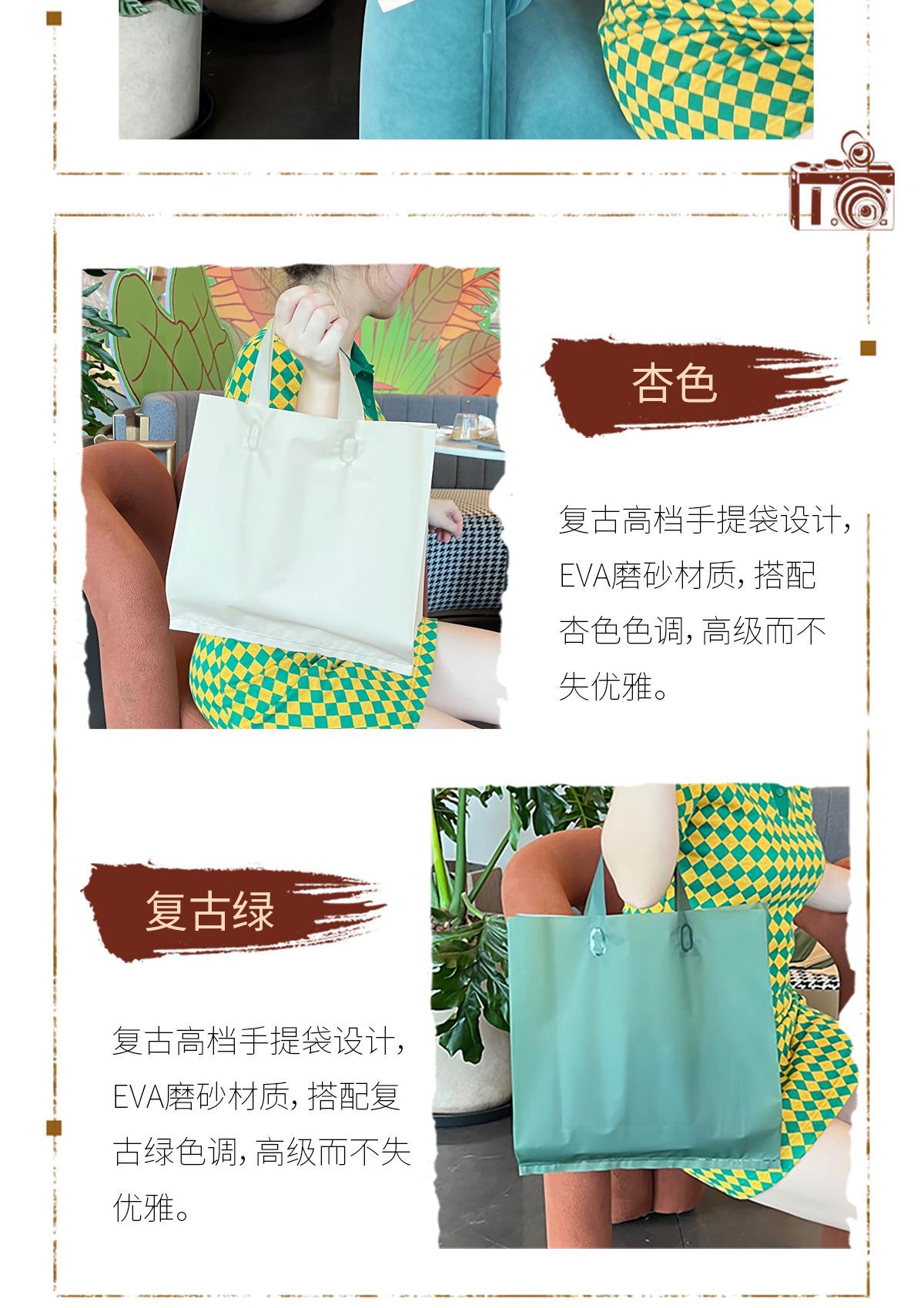 Bolsa de mano de ropa verde retro eva esmerilada albaricoque embalaje bolsa de regalo para vender ropa plástico portátil al por mayor