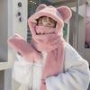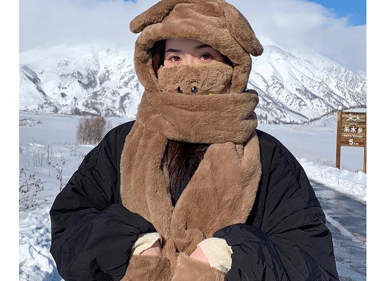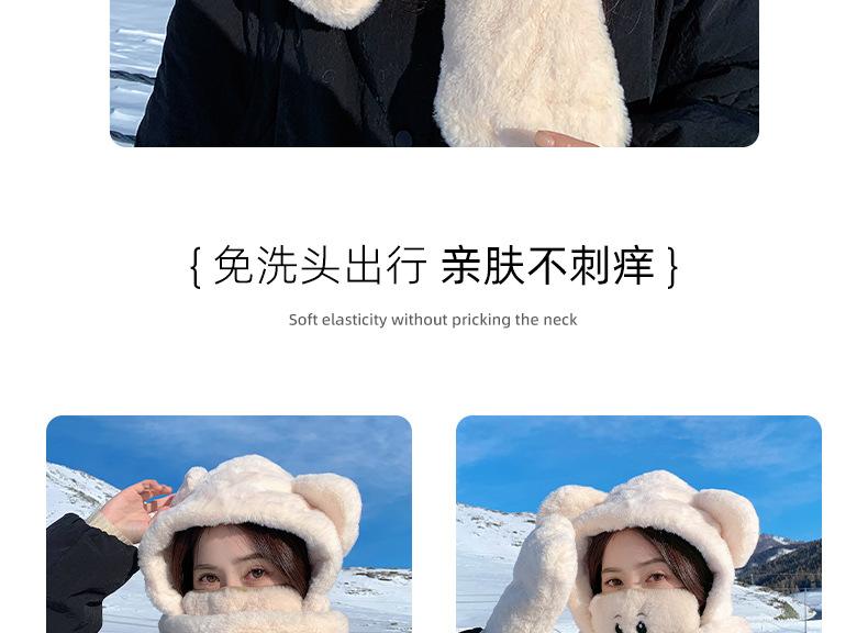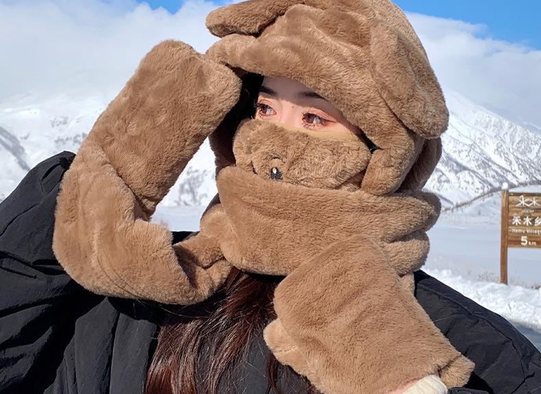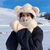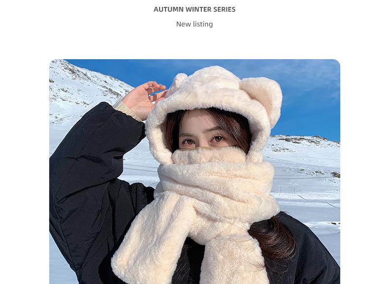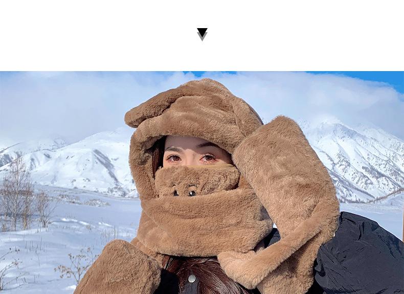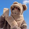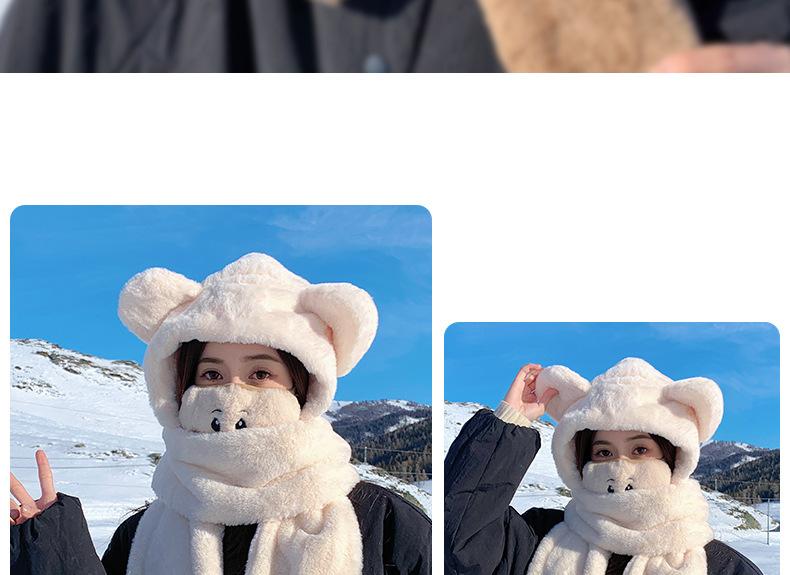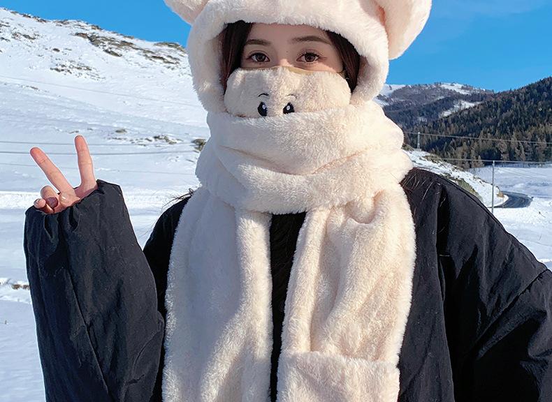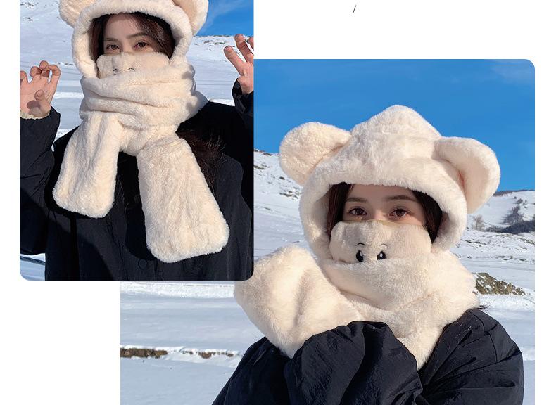 Lindo Gorro de Oso Bufanda Máscara Guantes de Una Pieza Terciopelo Grueso Invierno Cortavientos Color Puro Blanqueador Cálido Gorro
