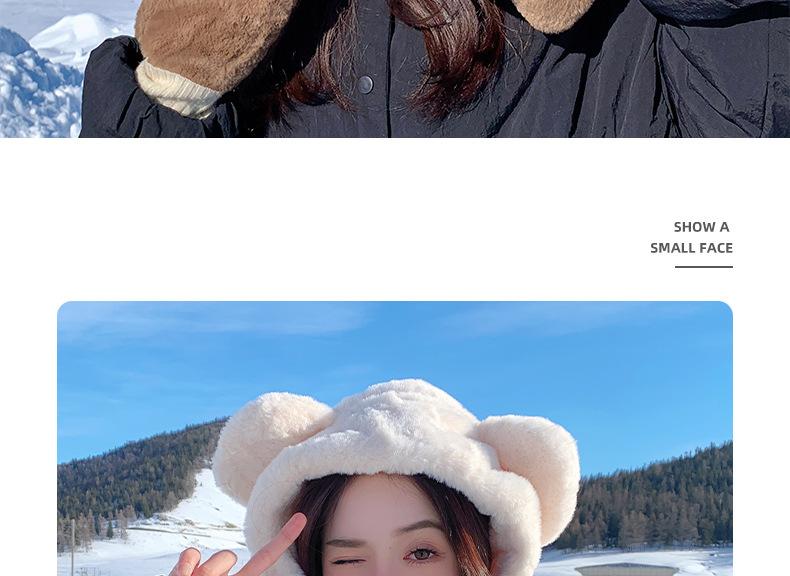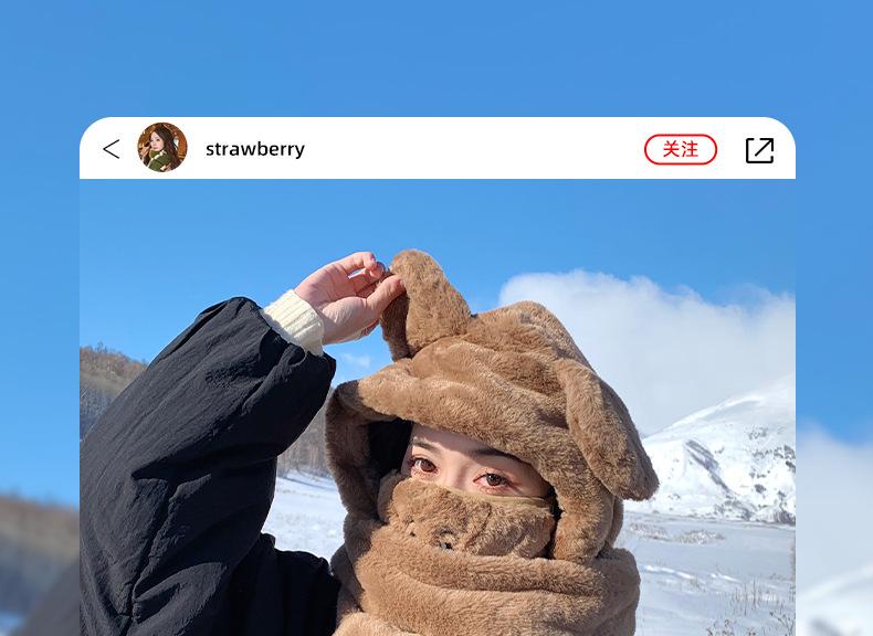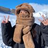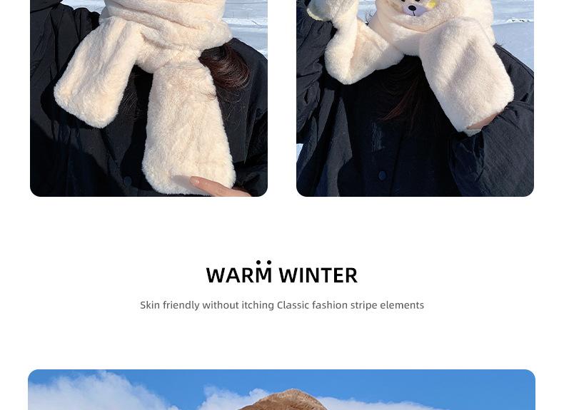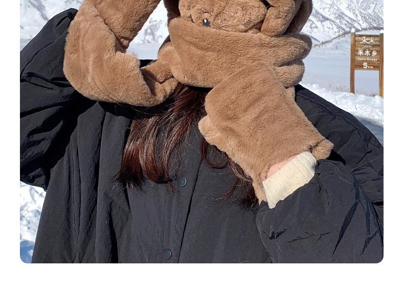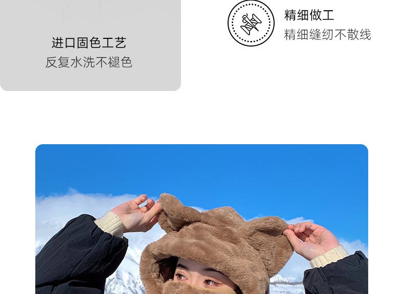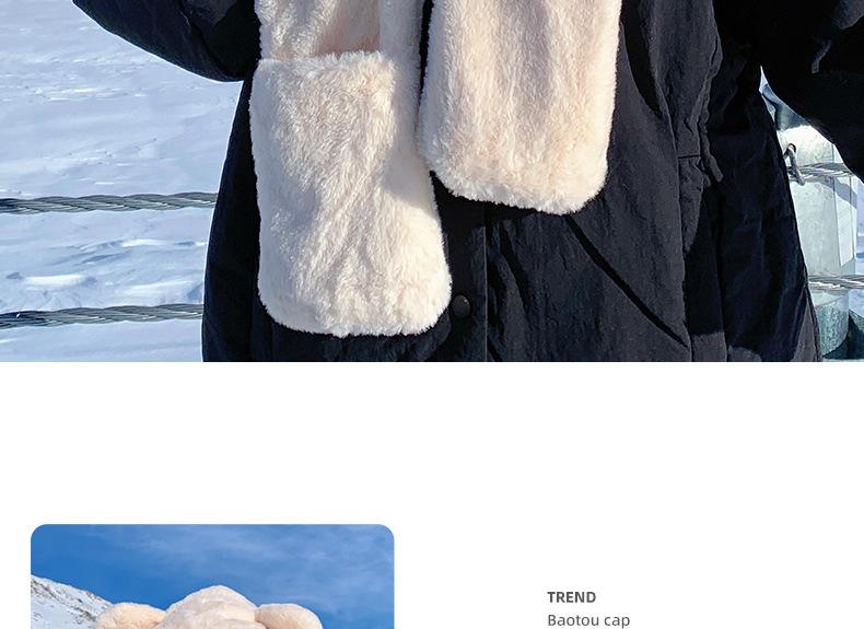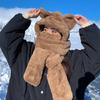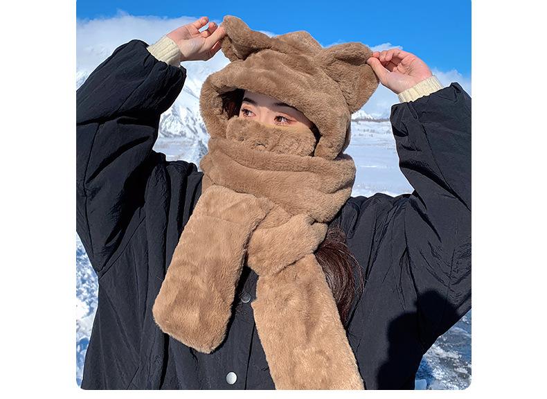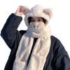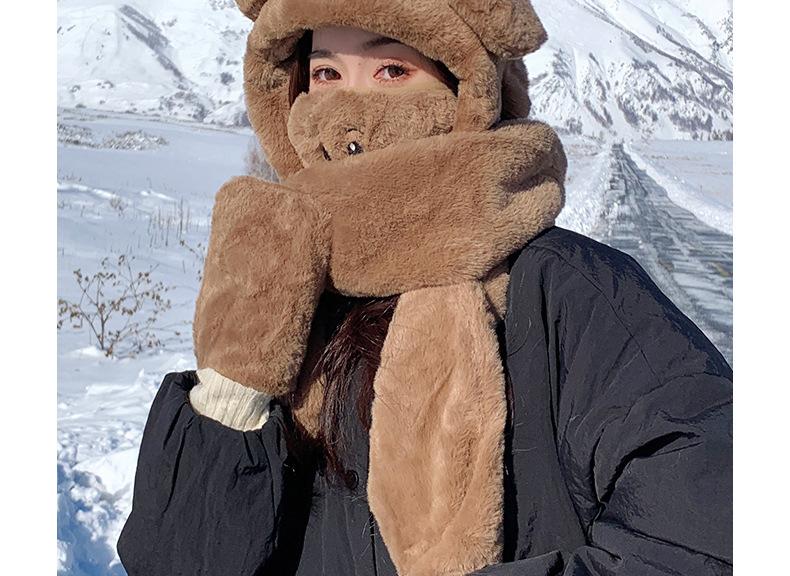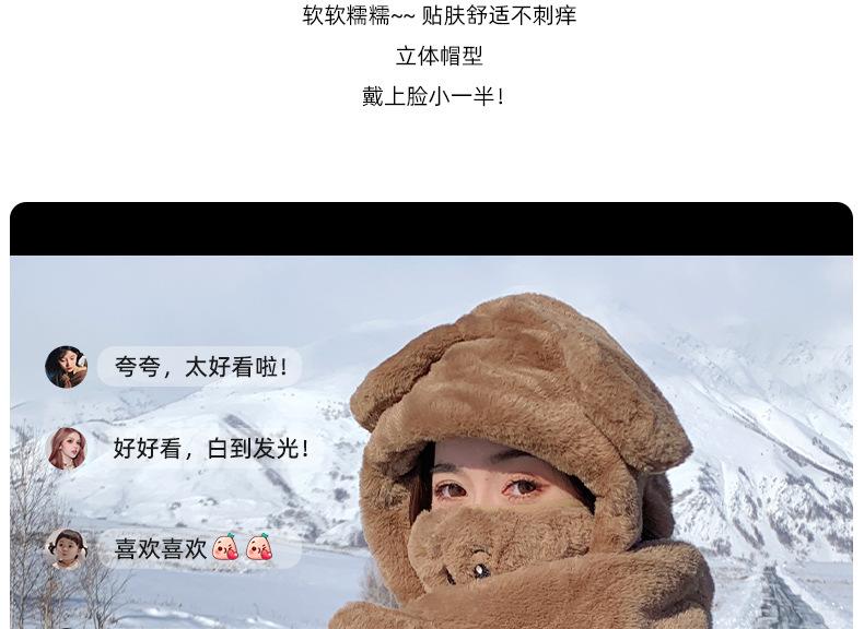 Lindo Gorro de Oso Bufanda Máscara Guantes de Una Pieza Terciopelo Grueso Invierno Cortavientos Color Puro Blanqueador Cálido Gorro