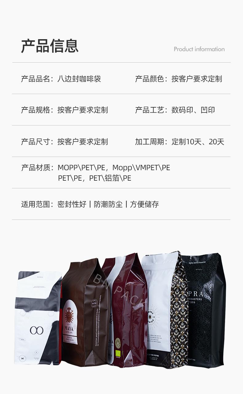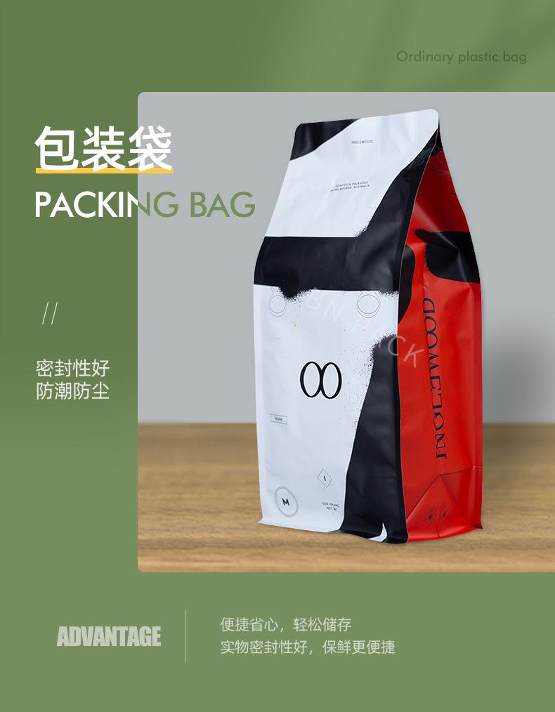 Bolsa de café con sellado de ocho bordes, bolsa de comida para gatos y perros, impresión autoportante, bolsa de aluminio autosellada para envasado de té y comida.