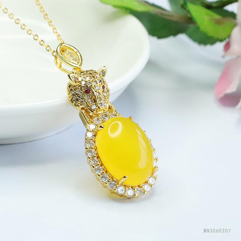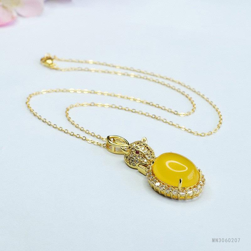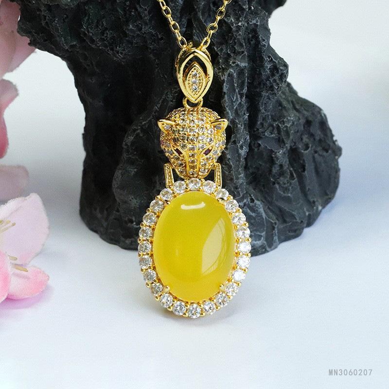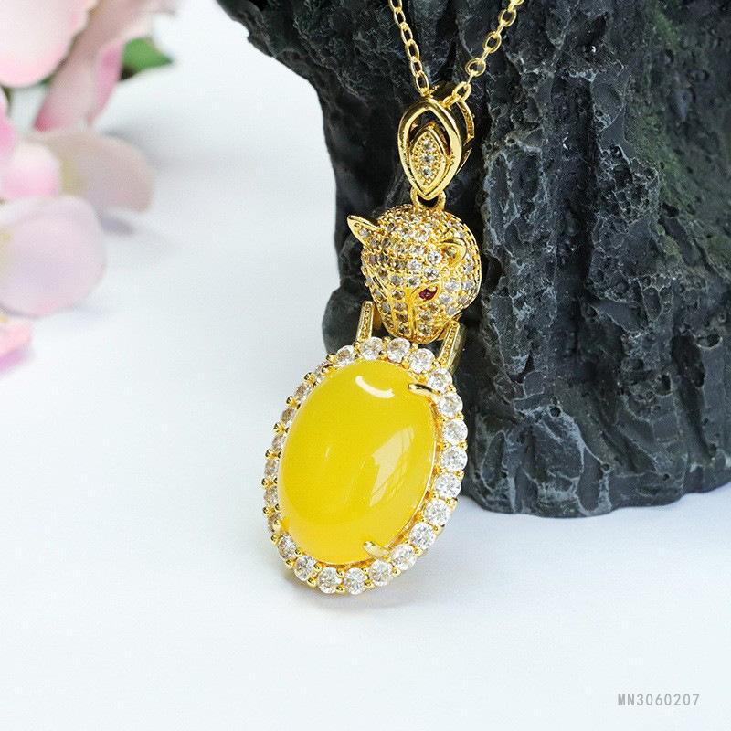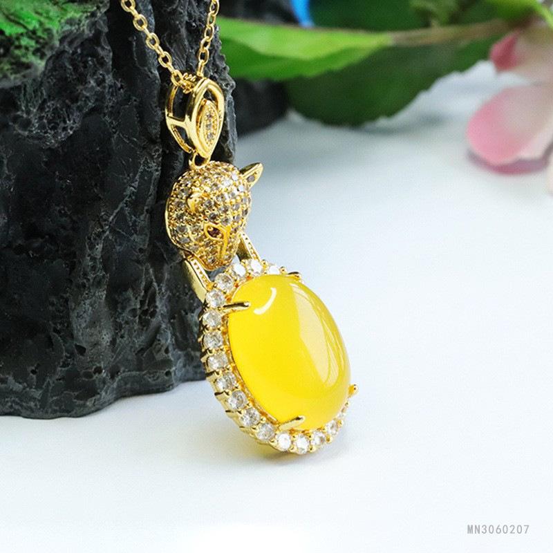 Yellow chalcedony leopard head pendant (excluding chain) mn 3060207