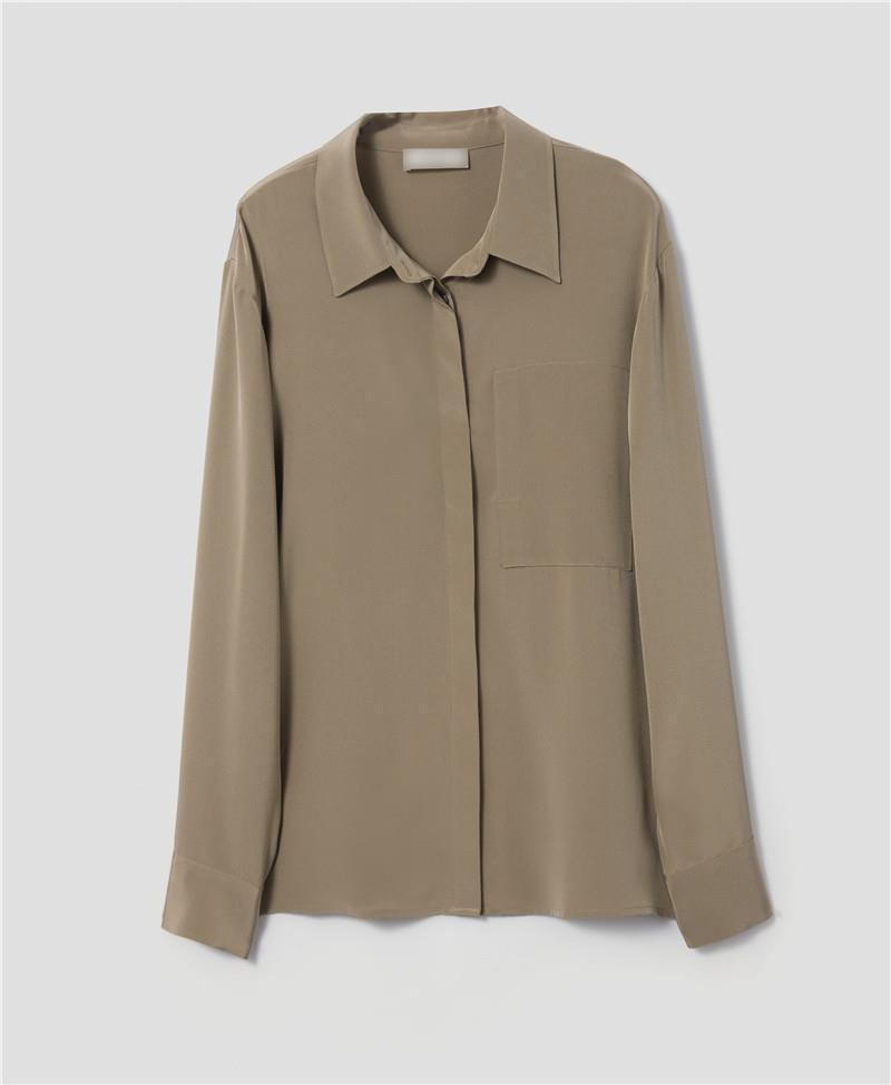 El cuello es de tamaño mediano y puede ser casual o formal. No es rígido en su forma y tiene un diseño medio abierto y una tapeta con botones oculta. El estilo minimalista es más limpio y refrescante, y más individual que el diseño totalmente abierto.