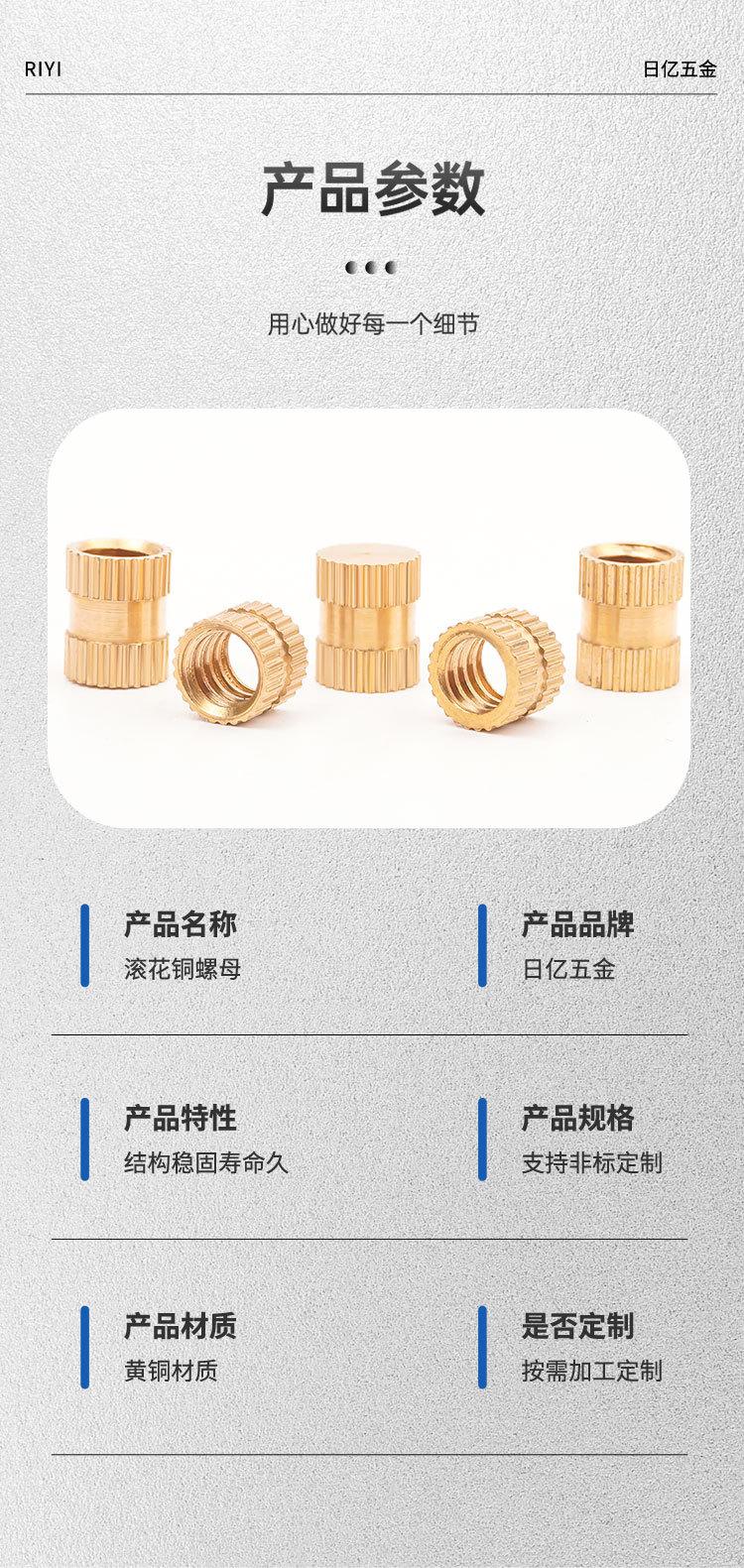 Tuerca de Cobre Cilíndrica de Latón Tuerca Incrustada Americana Tuerca de Moldeo por Inyección de Fusión en Caliente Rosca Británica Tuerca Moleteada 1/4-20