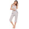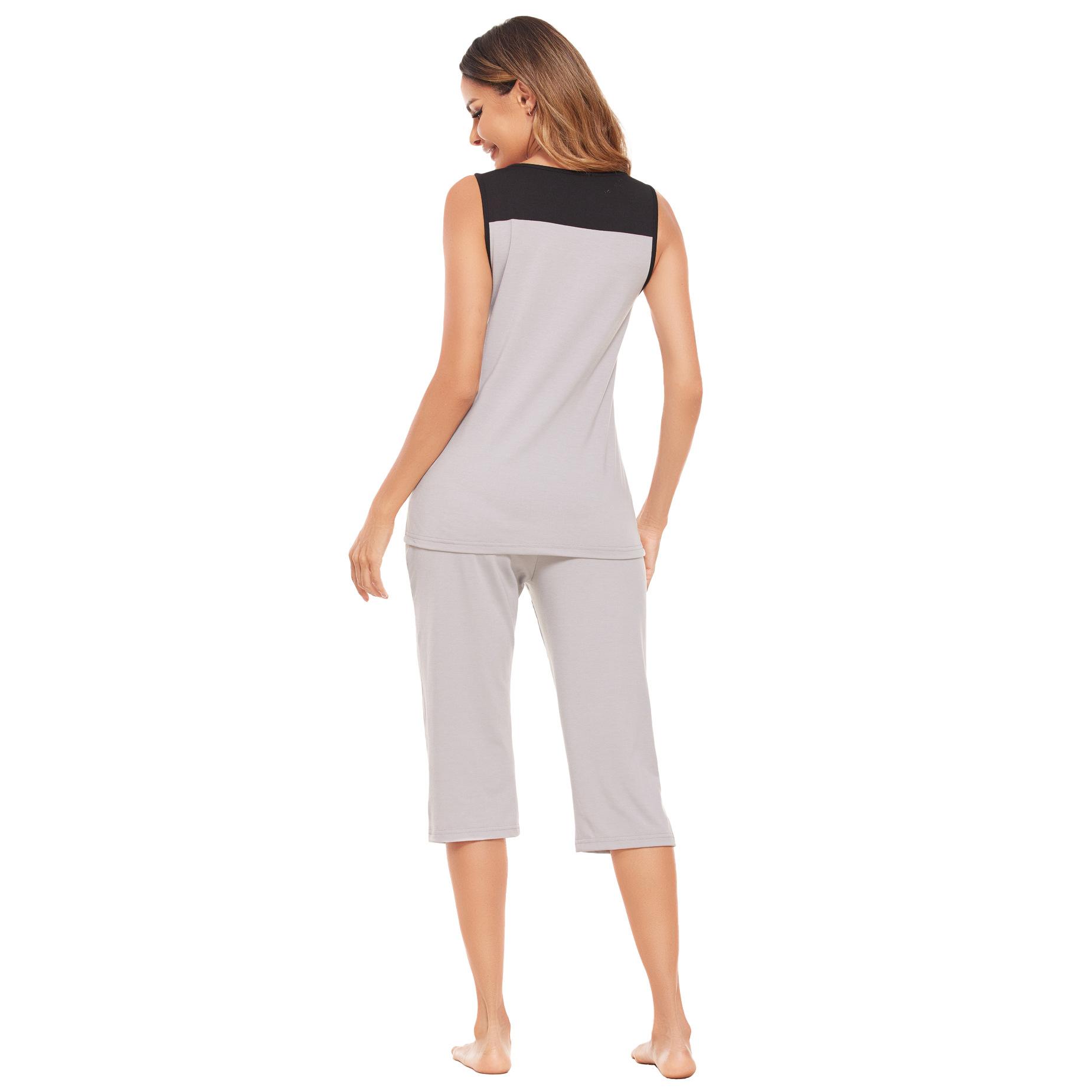 Verano Amazon Comercio Exterior Europeo y Americano Conjunto de Ropa para el Hogar para Mujer Tops Chaleco sin Mangas a Contraste Pantalones Cinco Cuartos Pijamas para Mujer