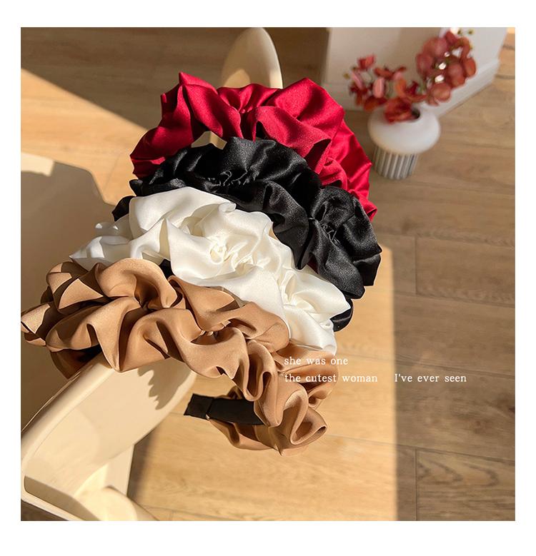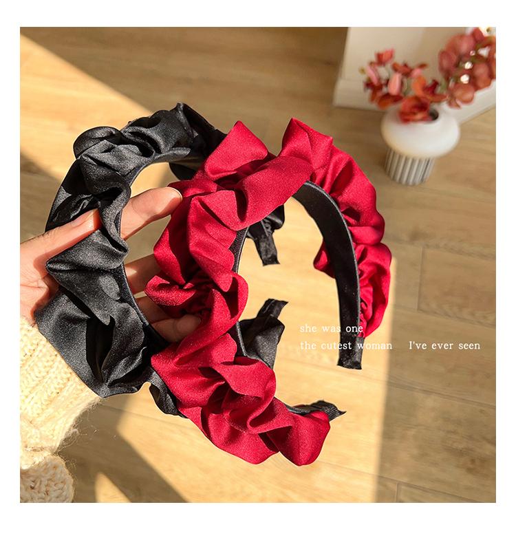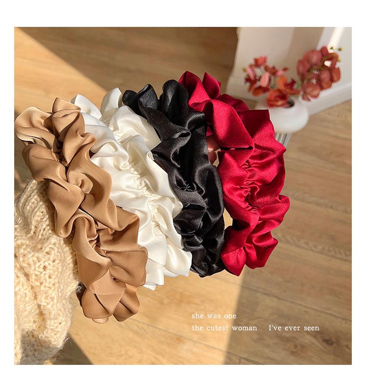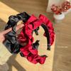 Zhao Lusi mismo estilo scrunchie de cuadros rojo oscuro coreano retro de alta gama sobrehilado de cuatro capas coletero tocado mujer