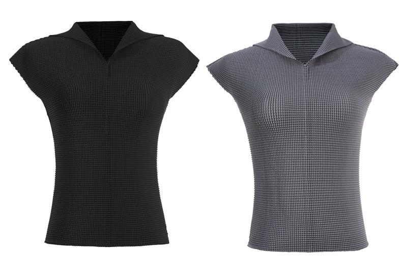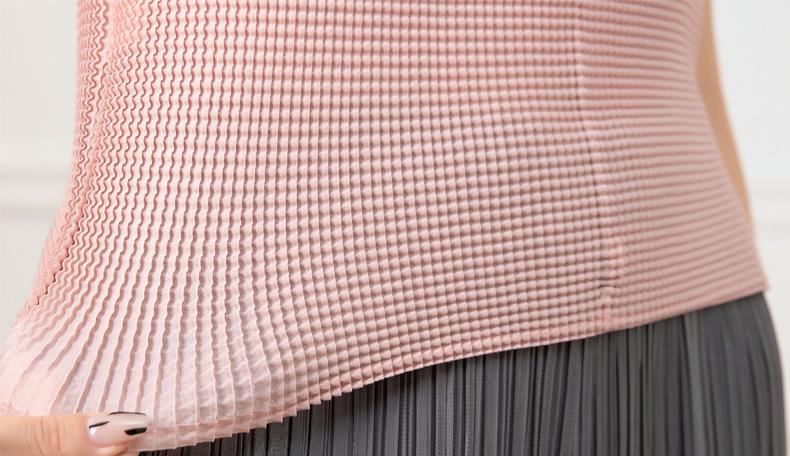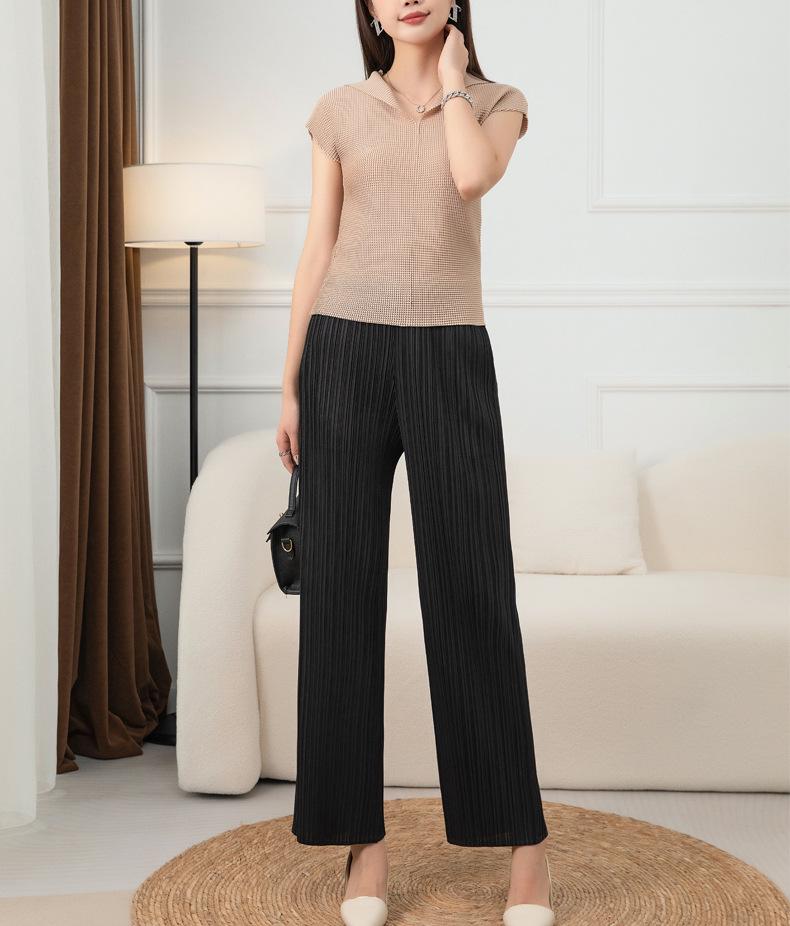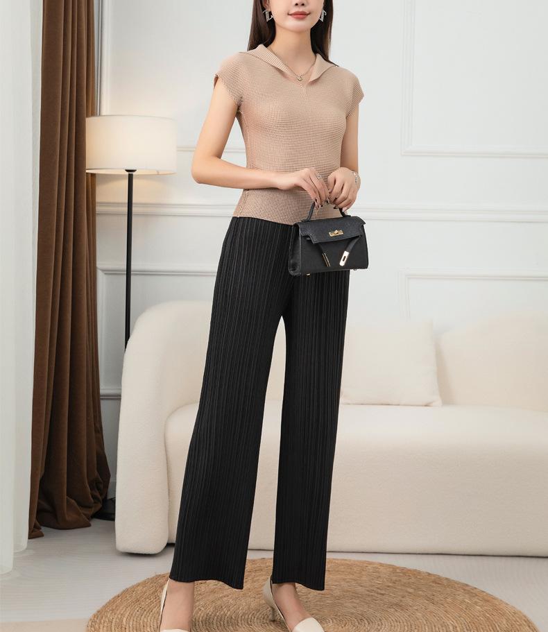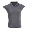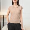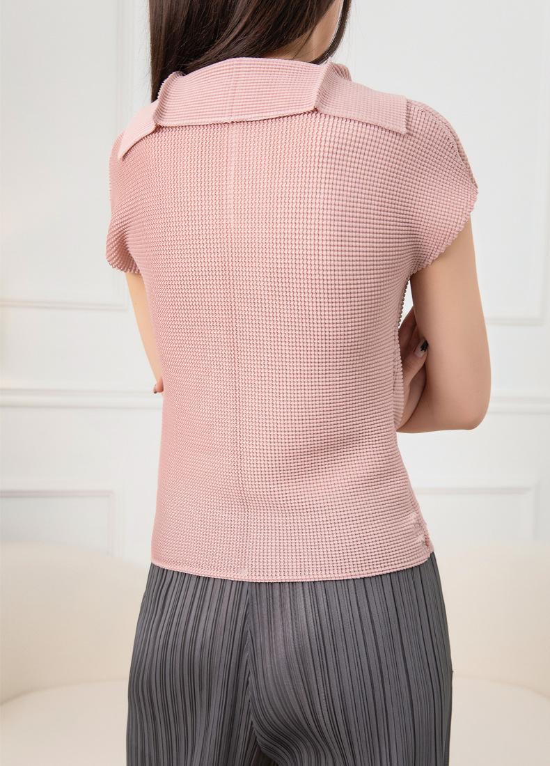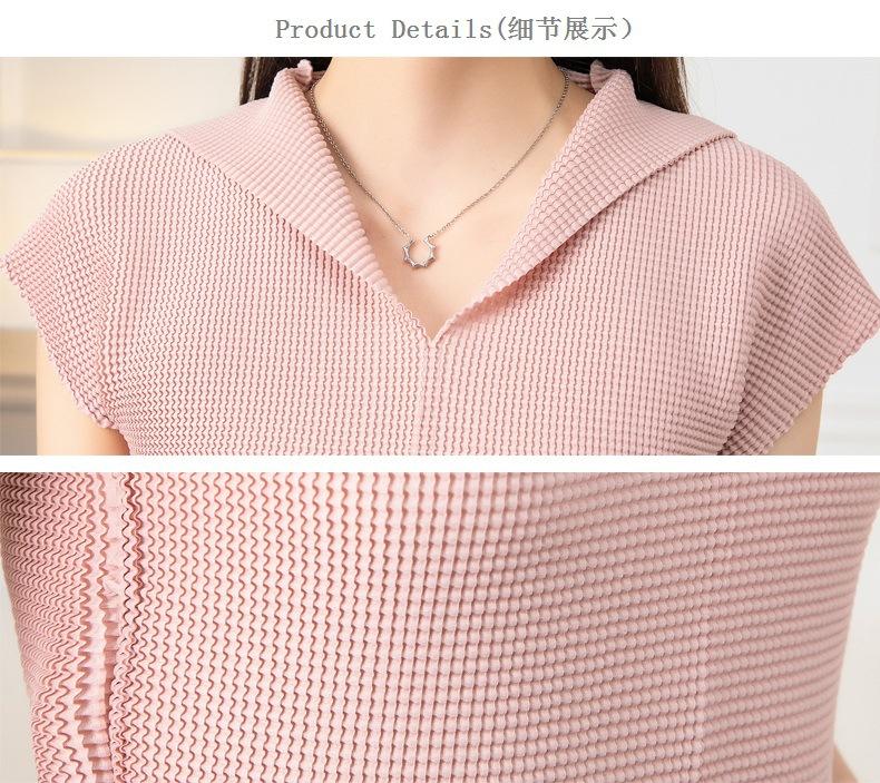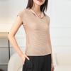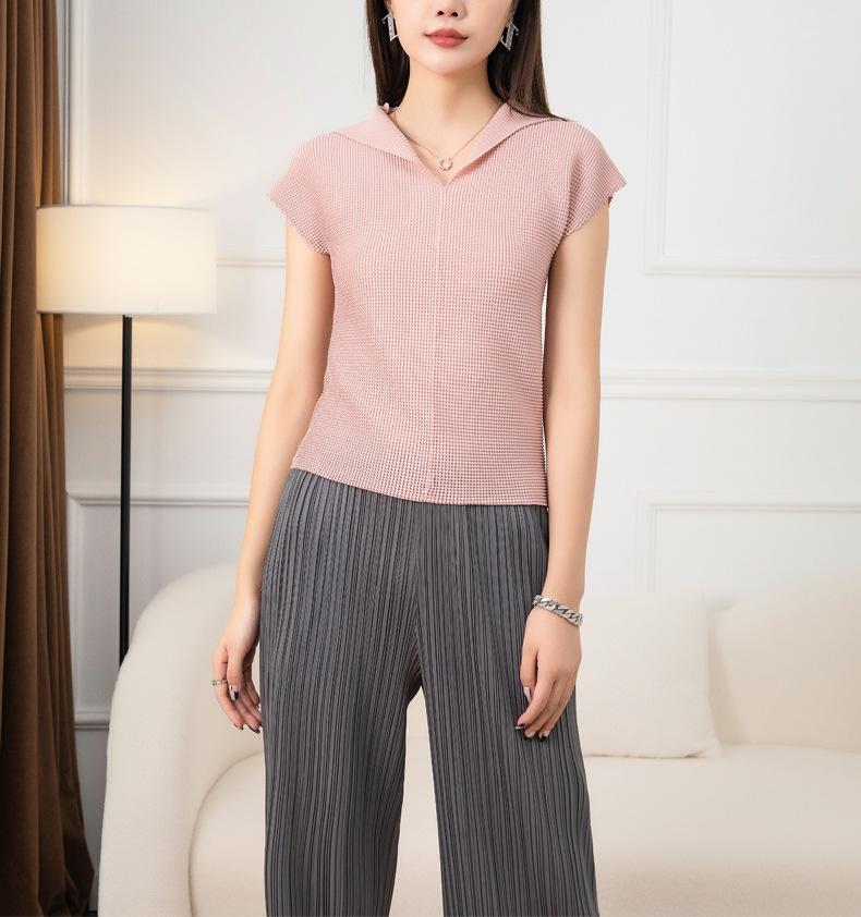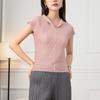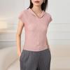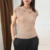 Camiseta Elegante de Solapa de Manga Corta Plisada a la Moda para Mujer Nuevo Look Adelgazante Elástico Top Base Plisado de Maíz en Stock