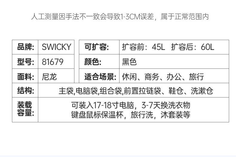Black 60 liters, Black 80 liters, Gray 80 liters, Blue 60 liters, Gray 60 liters