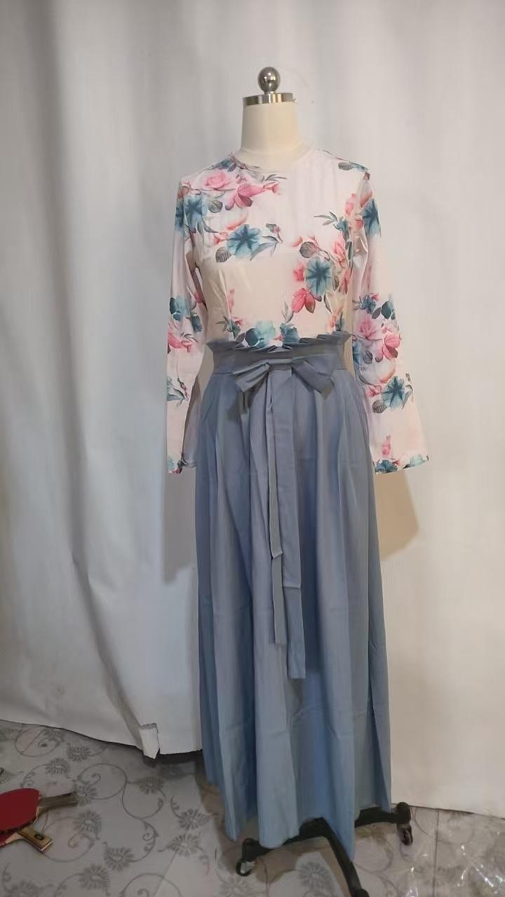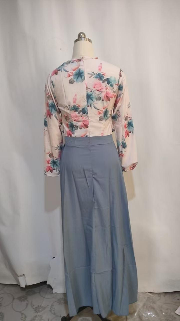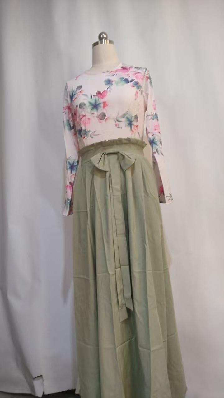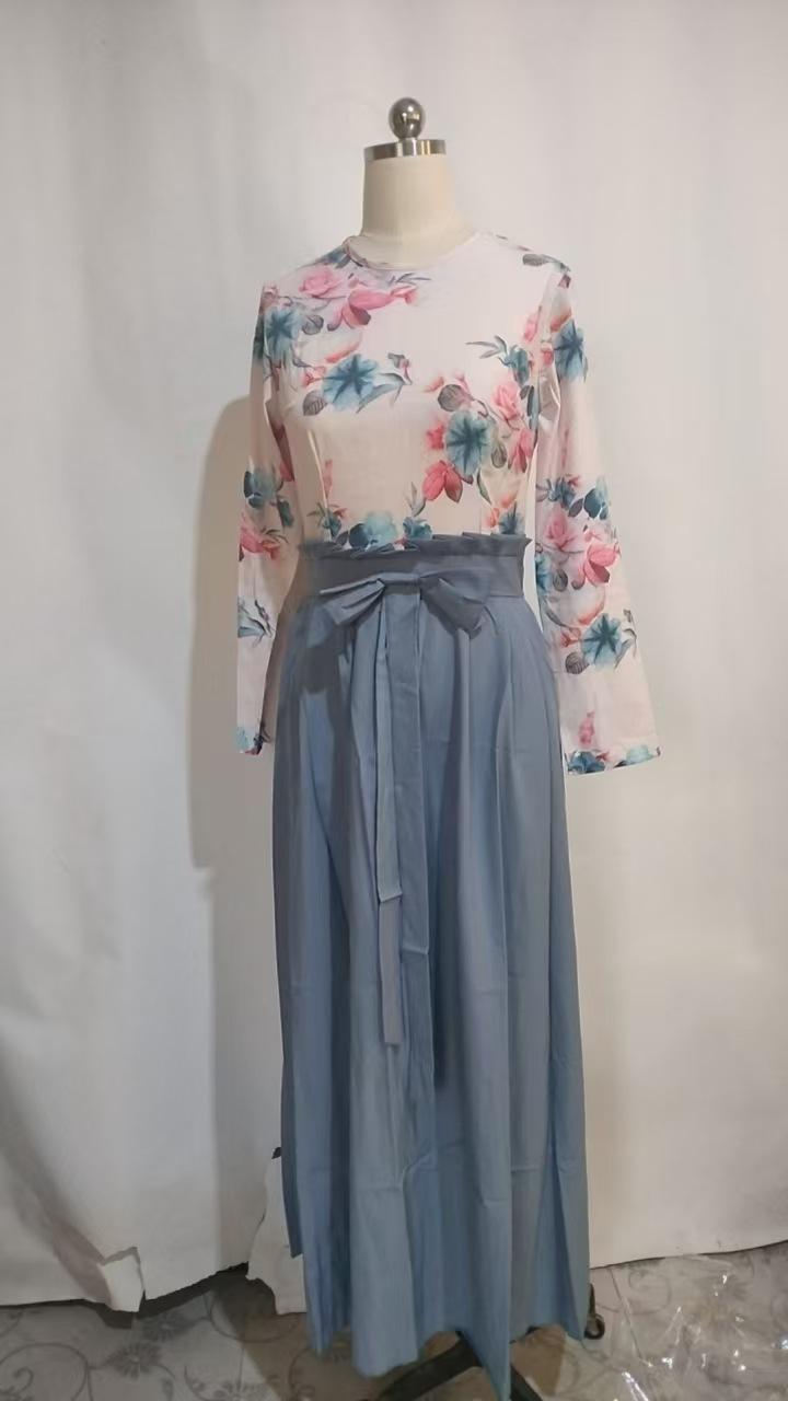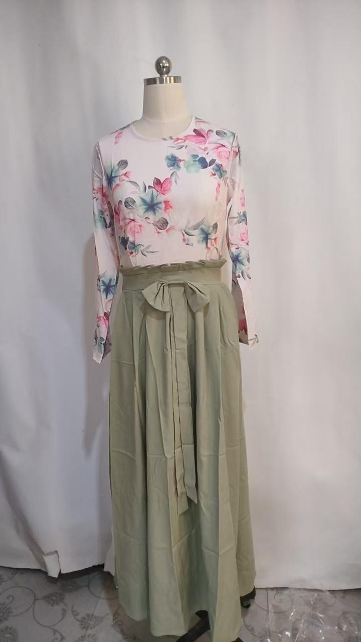 Vestido nuevo estampado transfronterizo falda jersey de cintura holgada vestido de dos piezas falsas de Amazon una generación de cabello