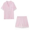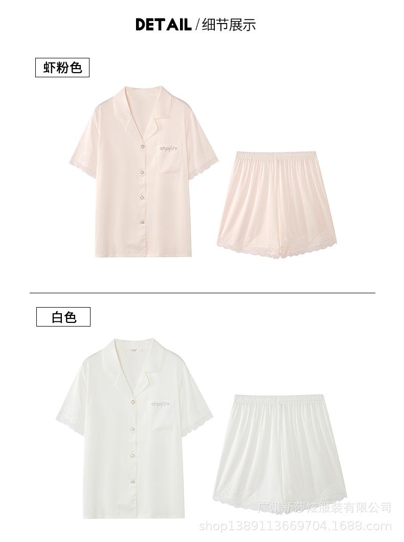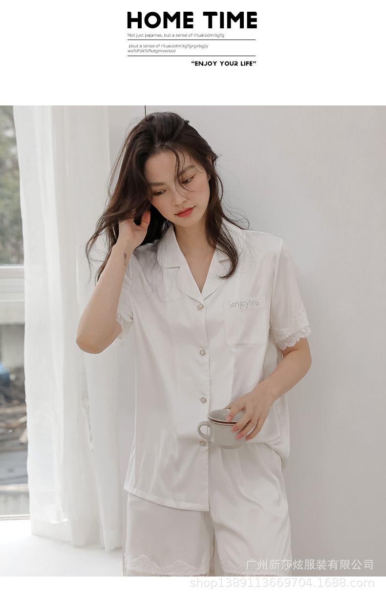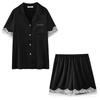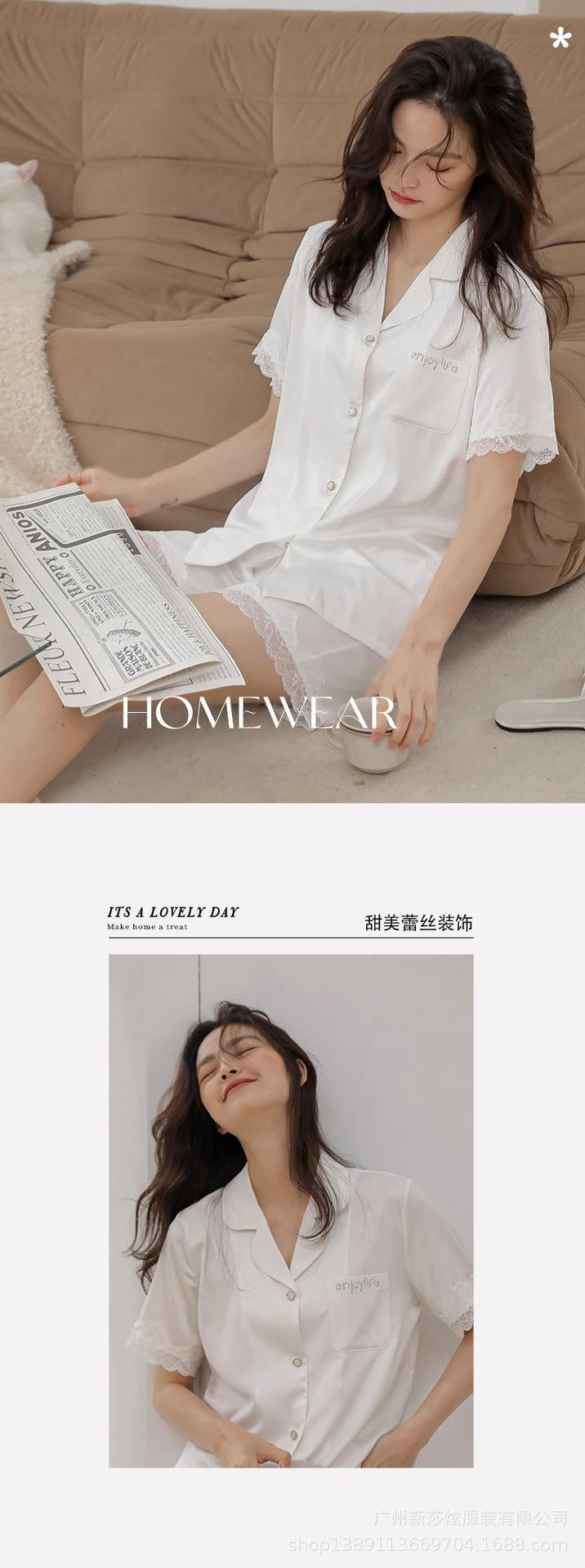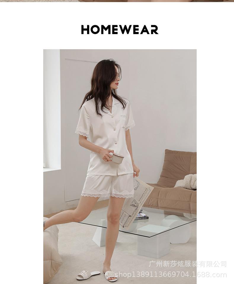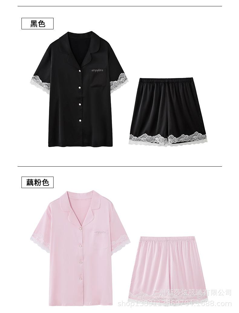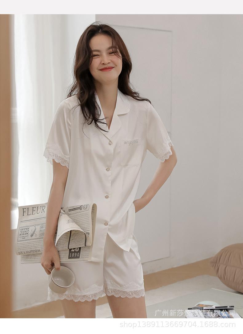 Pijamas de Verano Personalizadas para Mujer, Conjunto de Dos Piezas Delgado de Seda de Hielo Fresco de Manga Corta, Dulce Encaje de Alta Gama para Estar en Casa